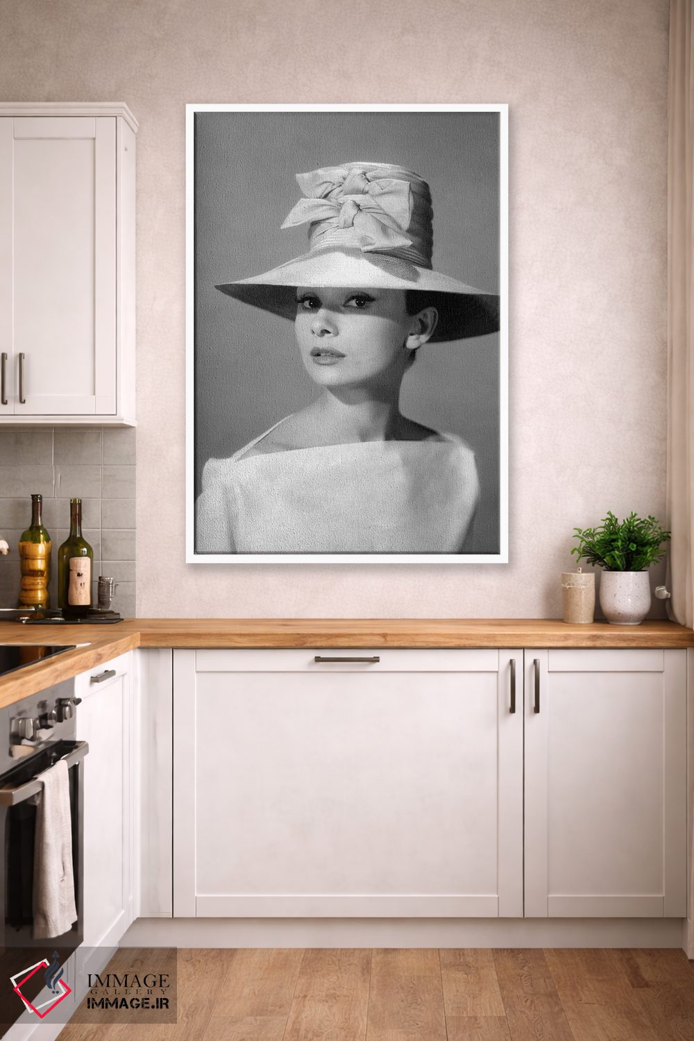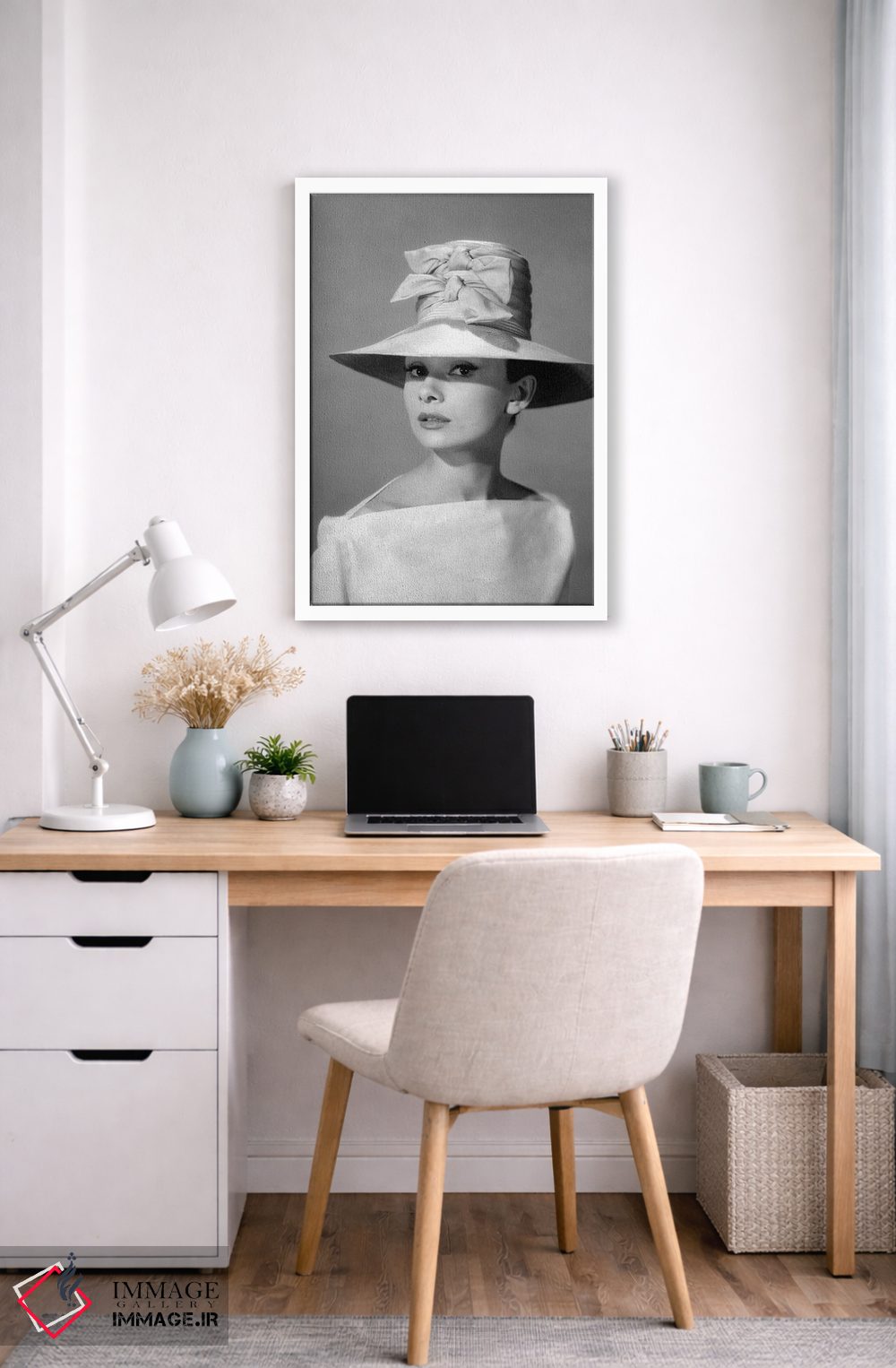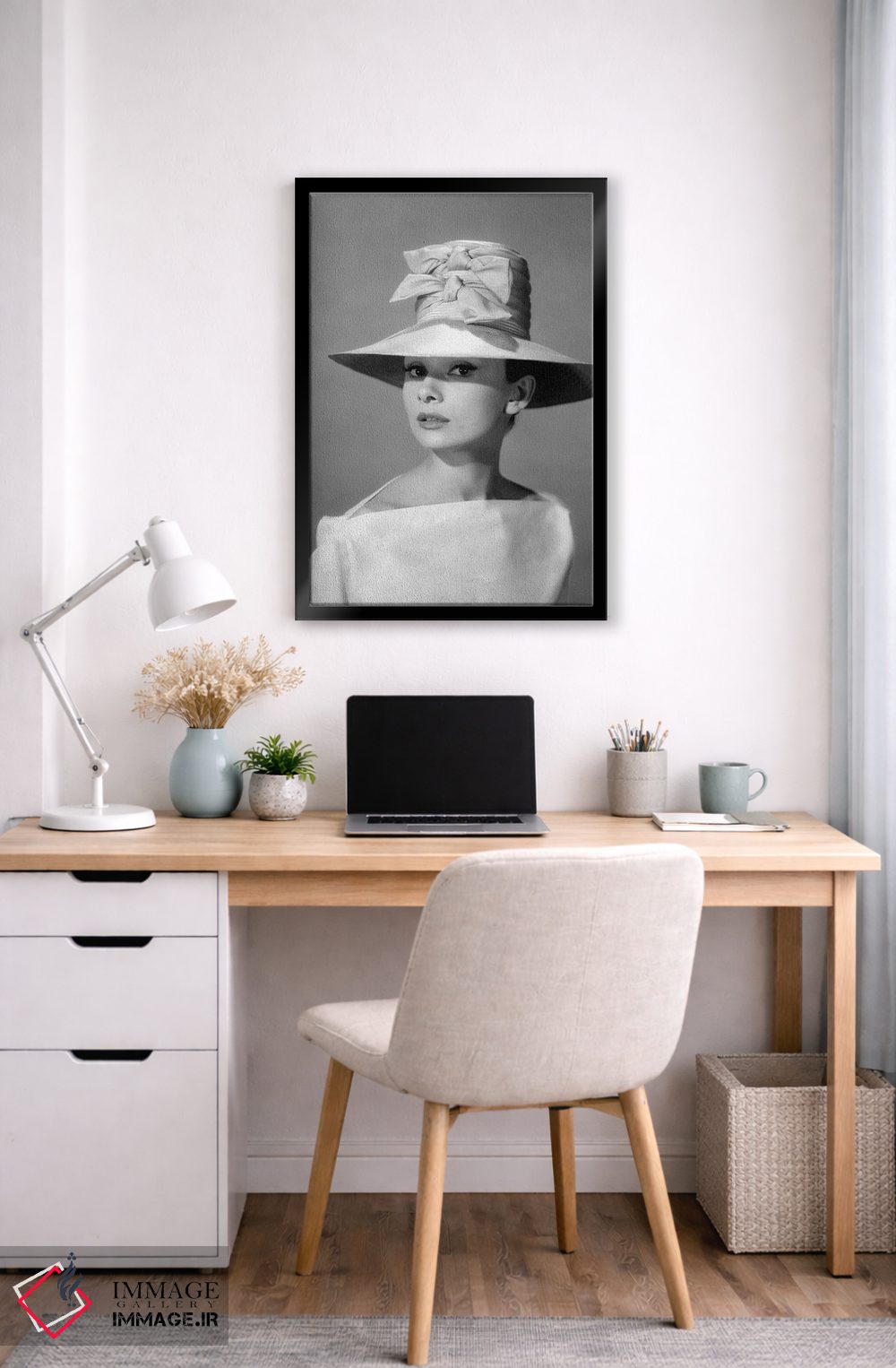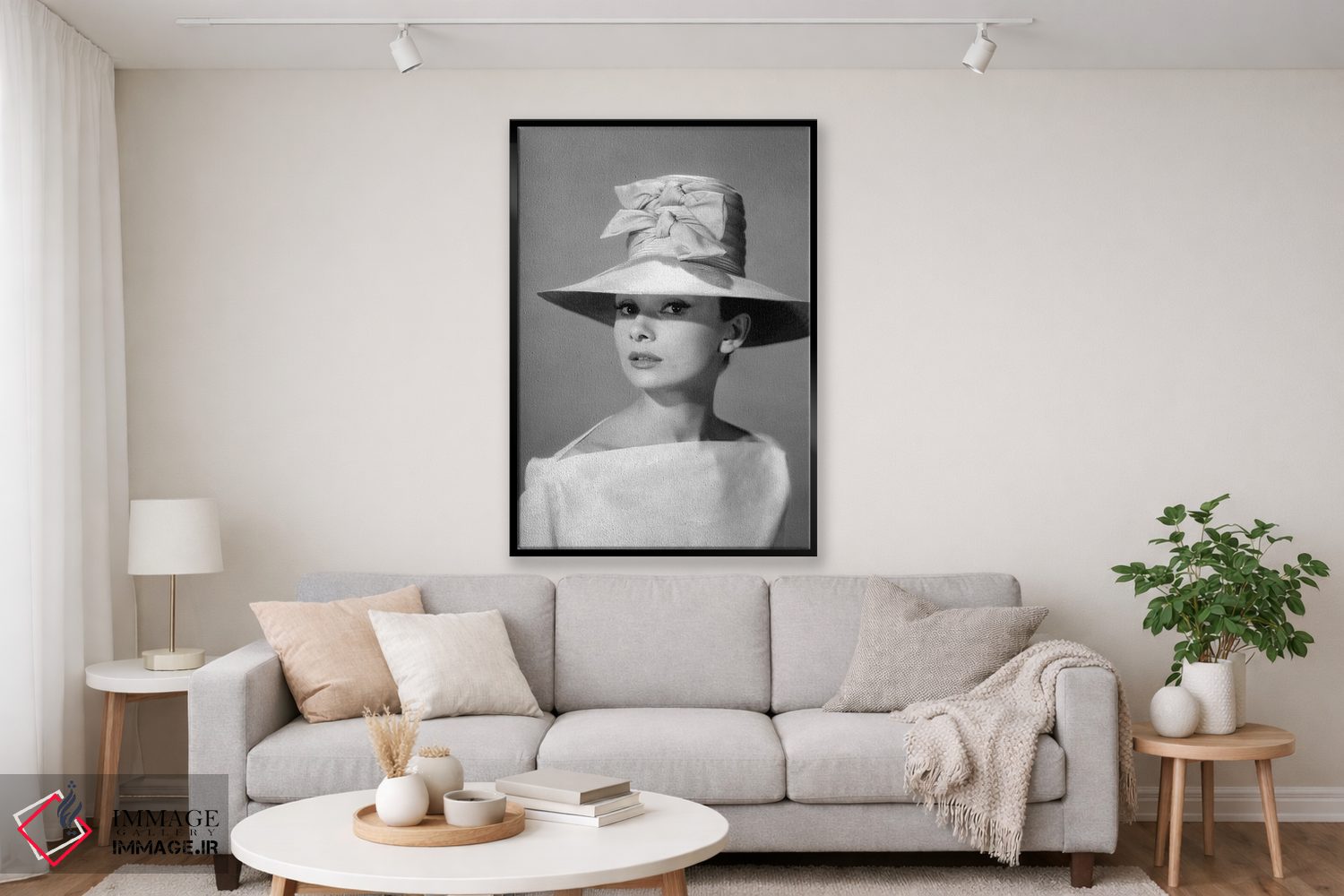 اگر دنبال یک قاب رسمی و تمیز هستی، «آدری هپبورن با کلاهی بلند و دو پاپیون» اثرِ «رادیو دیز (نام هنری/پروژه هنری نوستالژیک)» با موضوعِ این اثر در عکاسی سیاهوسفید انتخابی مطمئن است.