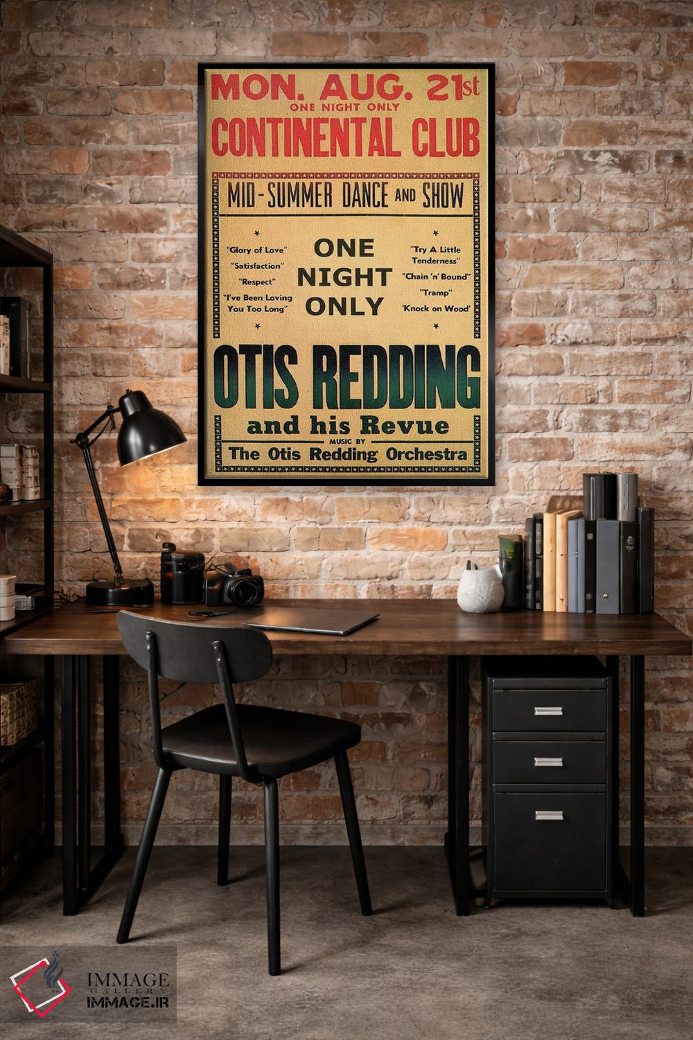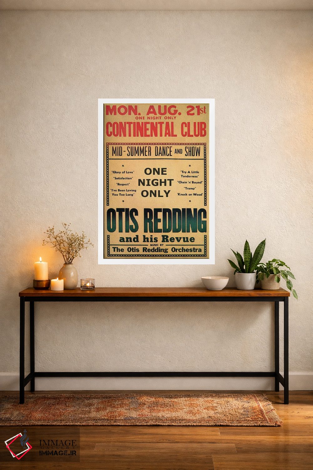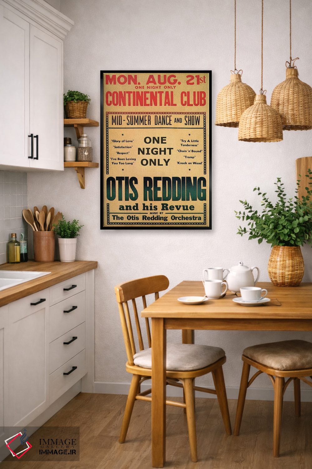 این اثر با حس این اثر و پرداختِ هنری، برای دکورهای روشن و مینیمال عالی جواب میدهد: «August 1967، اوتیس رباورگ در بروشور رقص و نمایش باشگاه کونتیننتال، اوت ۱۹۶۷» اثرِ «رادیو دیز (نام هنری/پروژه هنری نوستالژیک)».
