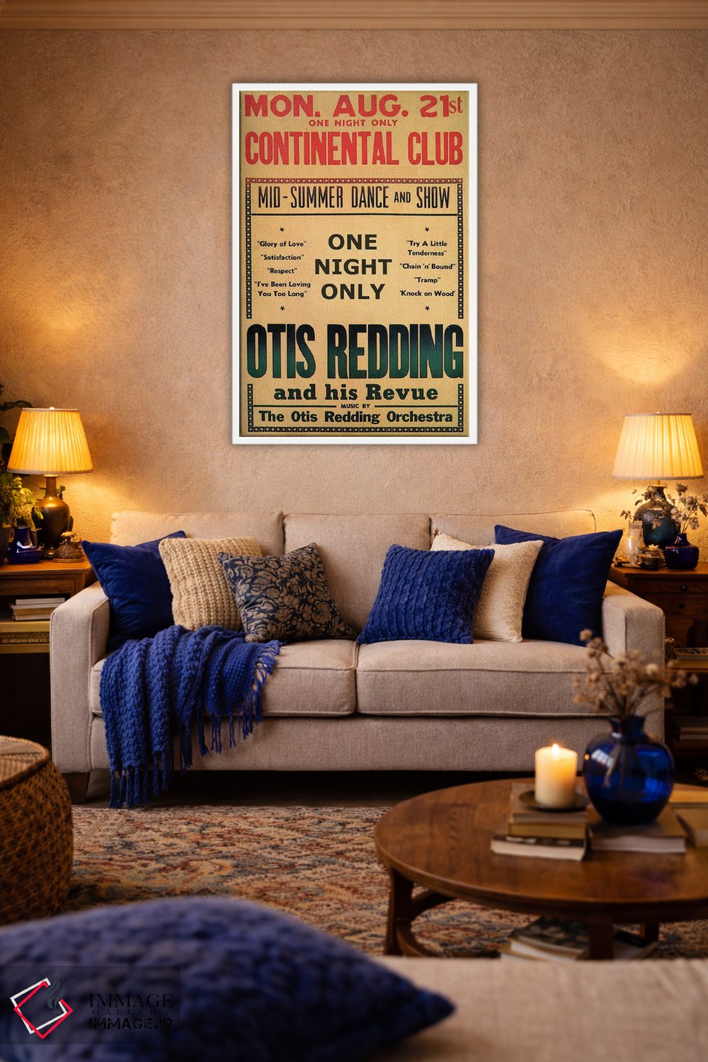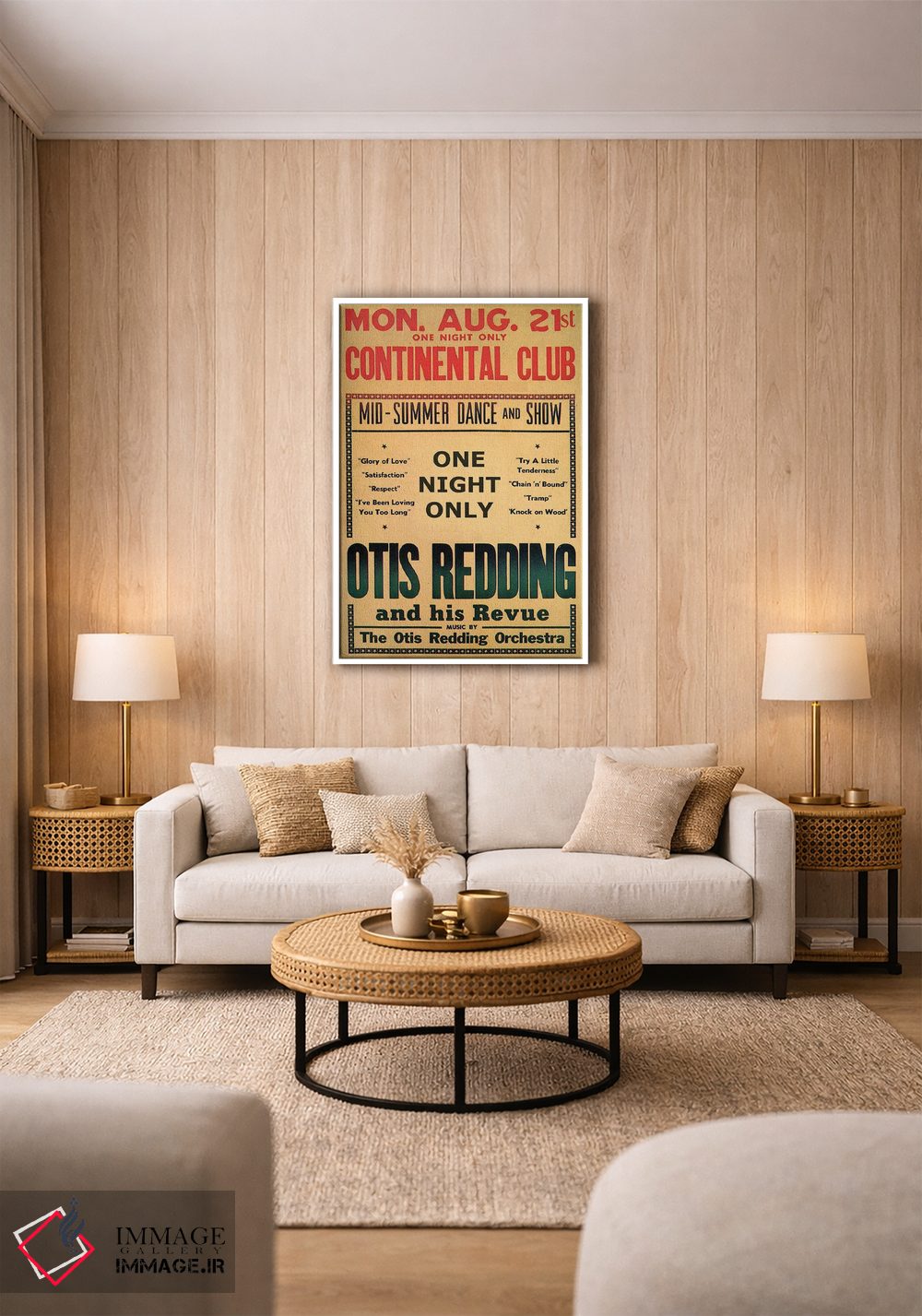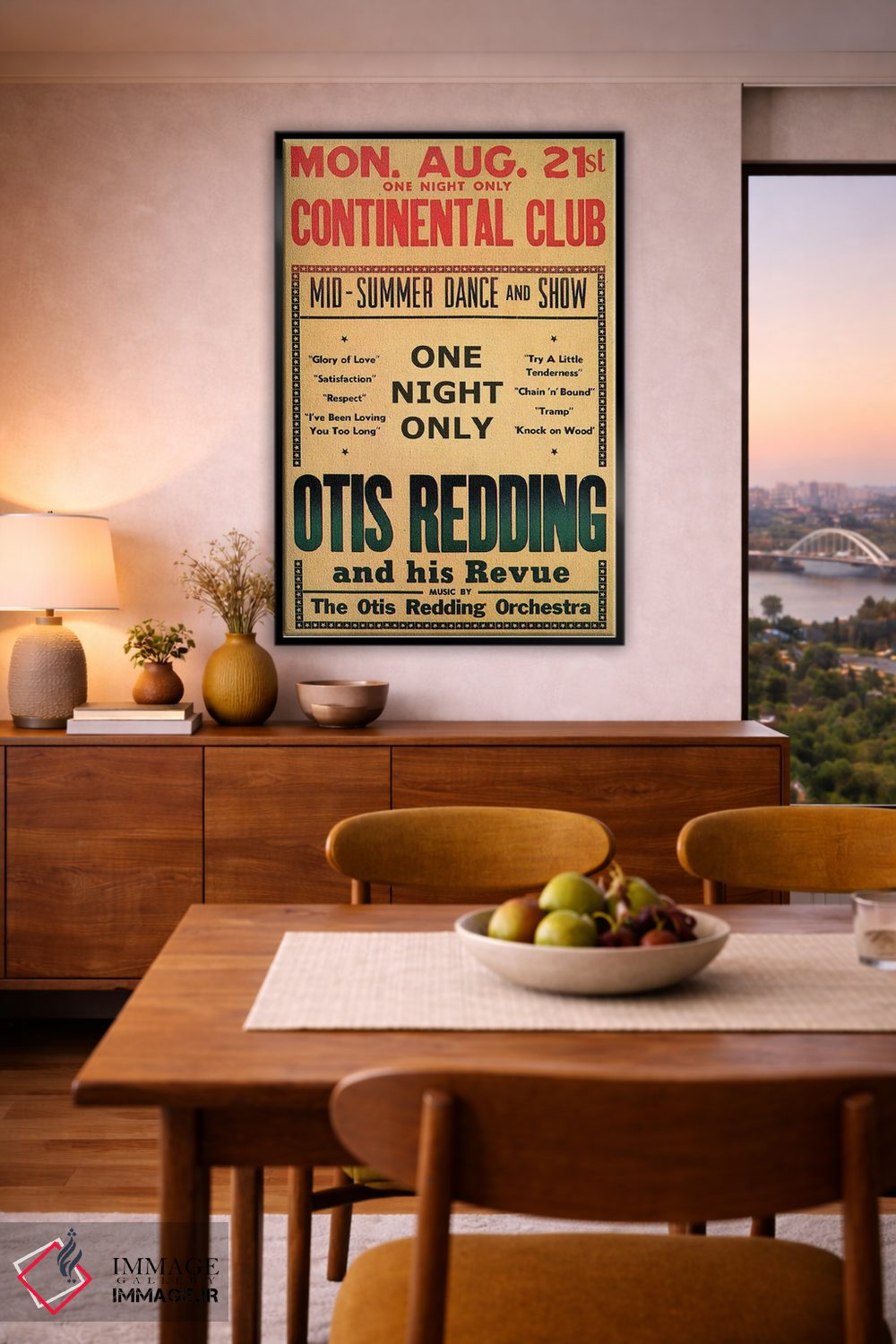 این اثر با حس این اثر و پرداختِ هنری، برای دکورهای روشن و مینیمال عالی جواب میدهد: «August 1967، اوتیس رباورگ در بروشور رقص و نمایش باشگاه کونتیننتال، اوت ۱۹۶۷» اثرِ «رادیو دیز (نام هنری/پروژه هنری نوستالژیک)».