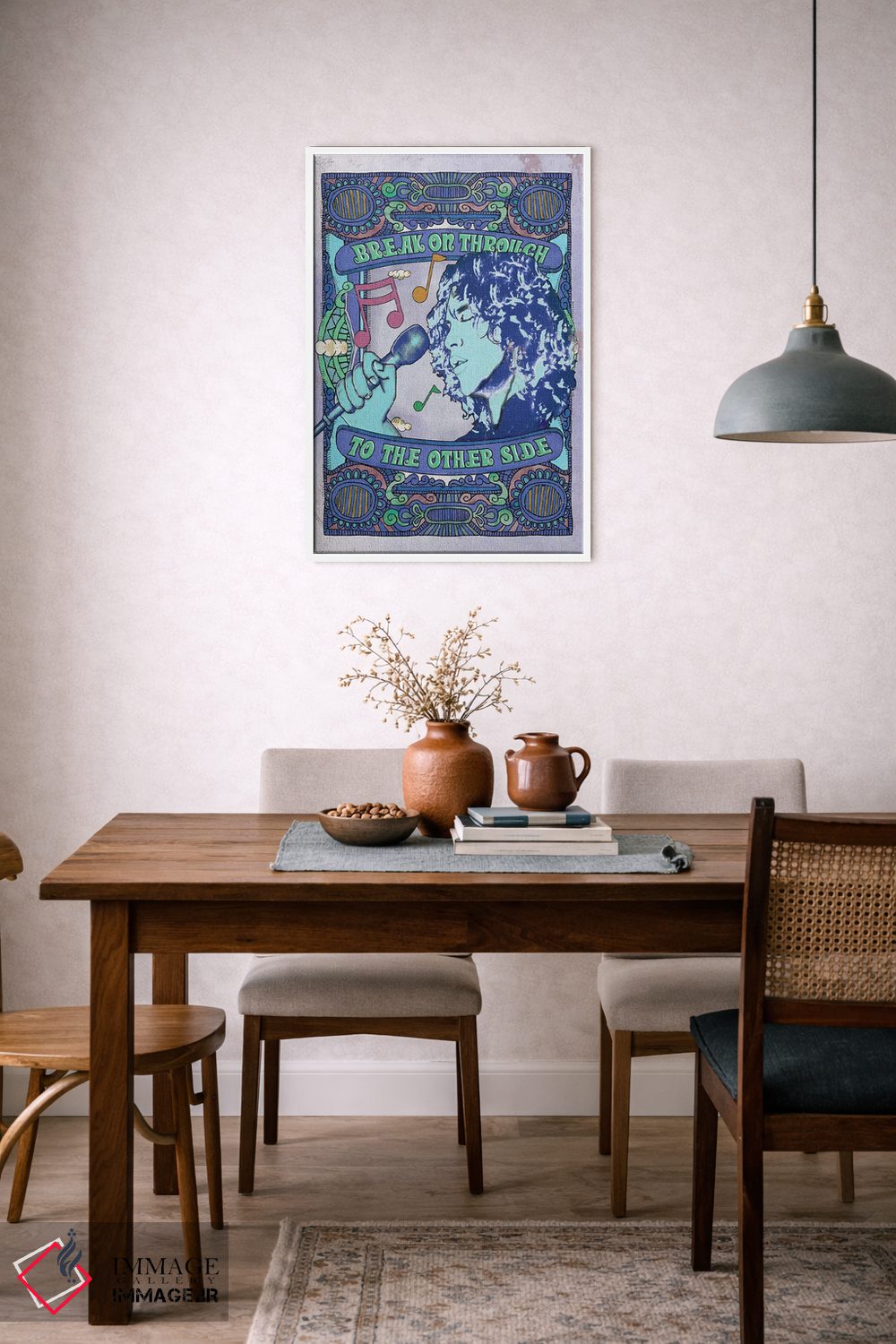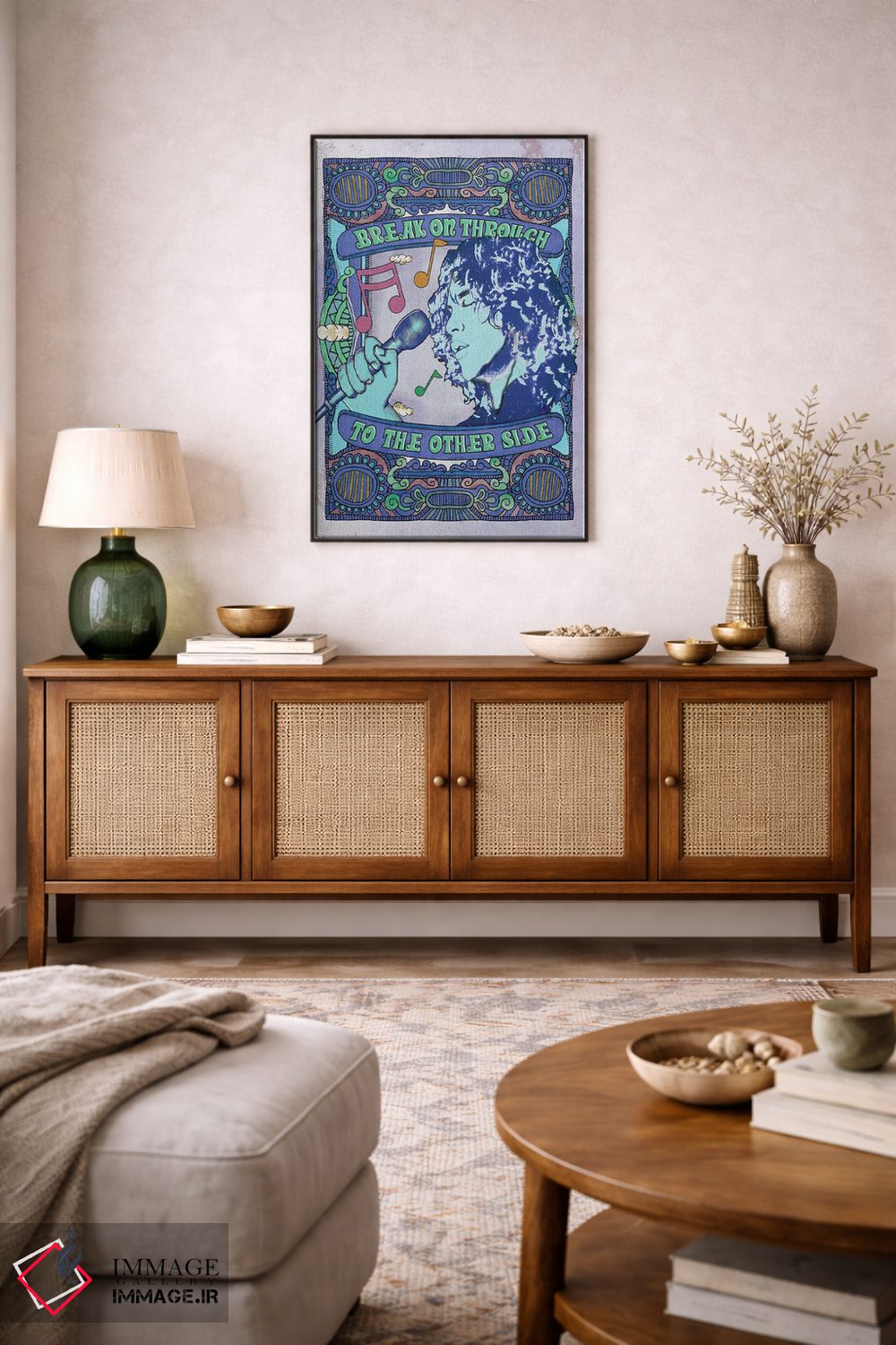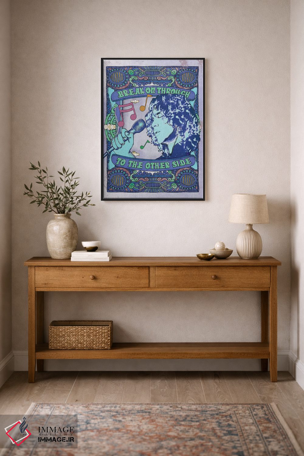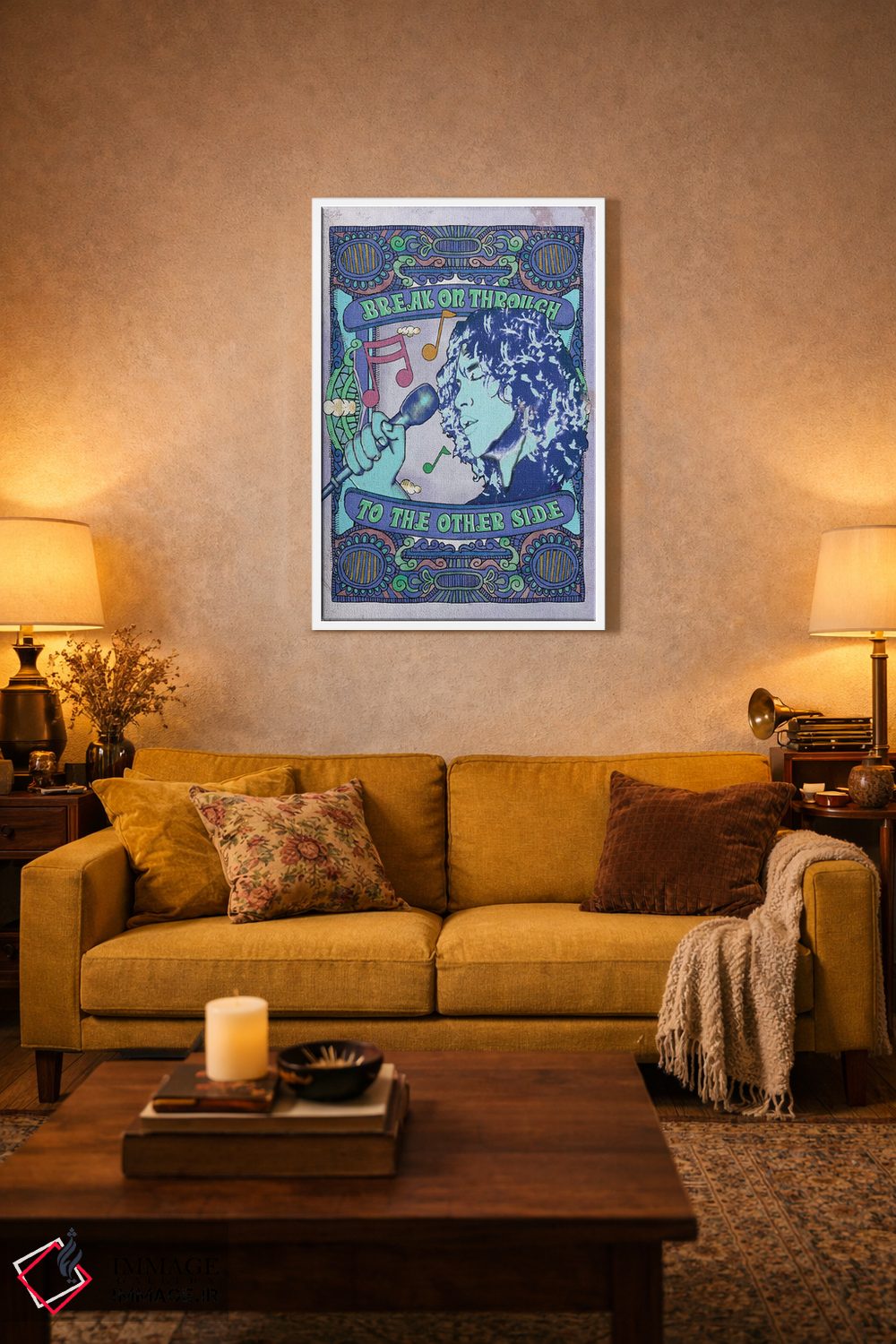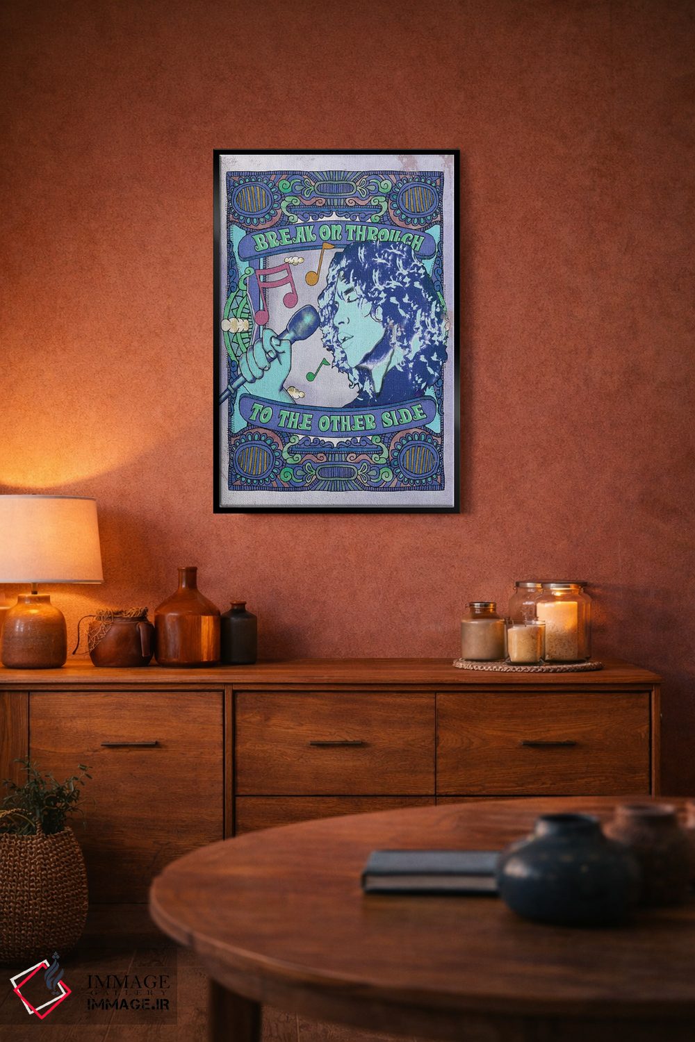 اگر دکور شما متفاوت و تجربهگراست، «جیم موریسون؛ نفوذ به آنسوی آبی» اثرِ «رادیو دیز (نام هنری/پروژه هنری نوستالژیک)» با موضوعِ این اثر در لحن جایگزین انتخاب خوبی است.