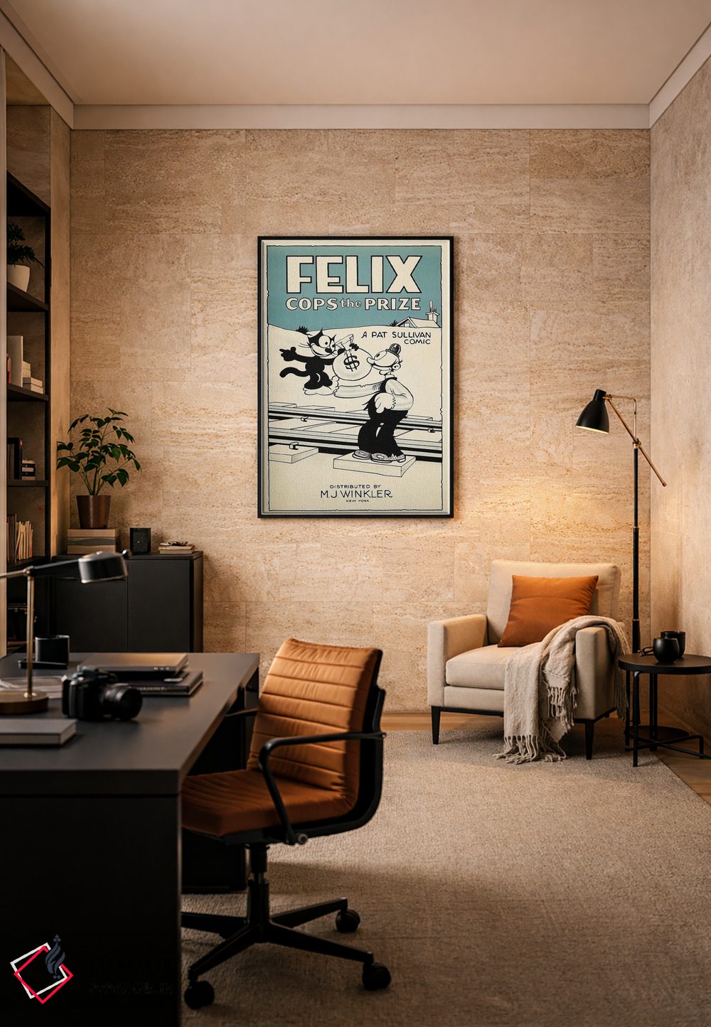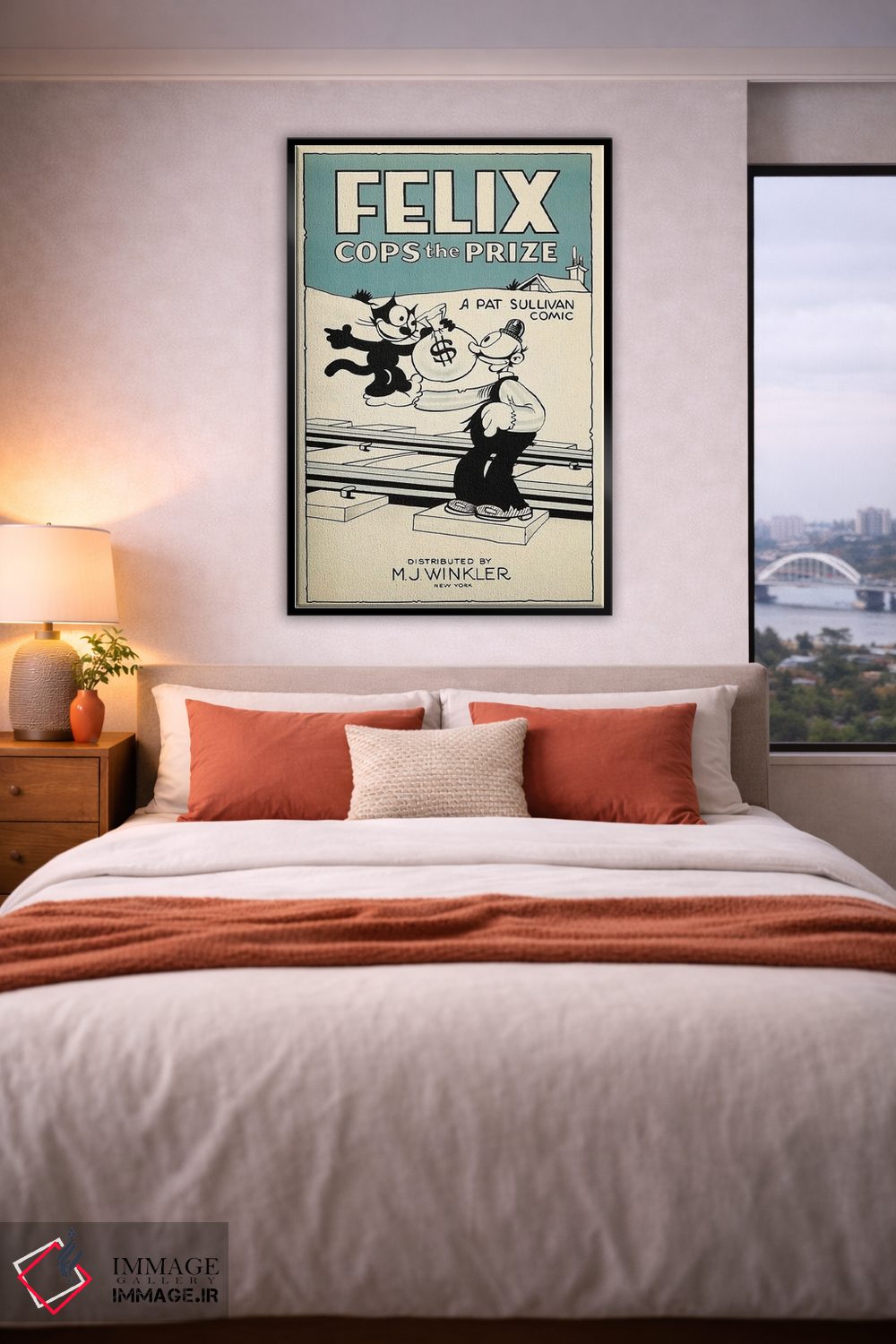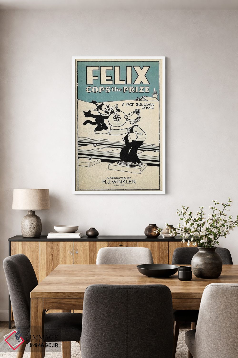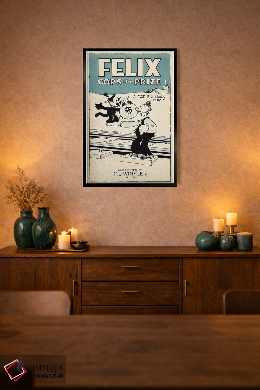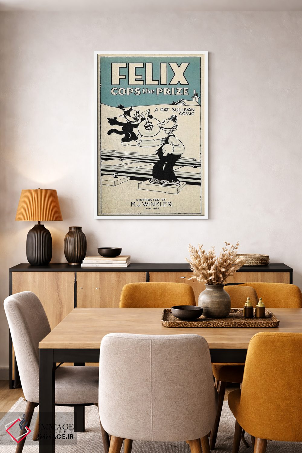 در «فلیکس؛ برنده جایزه» اثرِ «رادیو دیز (نام هنری/پروژه هنری نوستالژیک)»، رنگها و فرمها یادآور پوسترهای قدیمیاند؛ انتخابی جذاب برای کافهاستایل و دکورهای شهری.