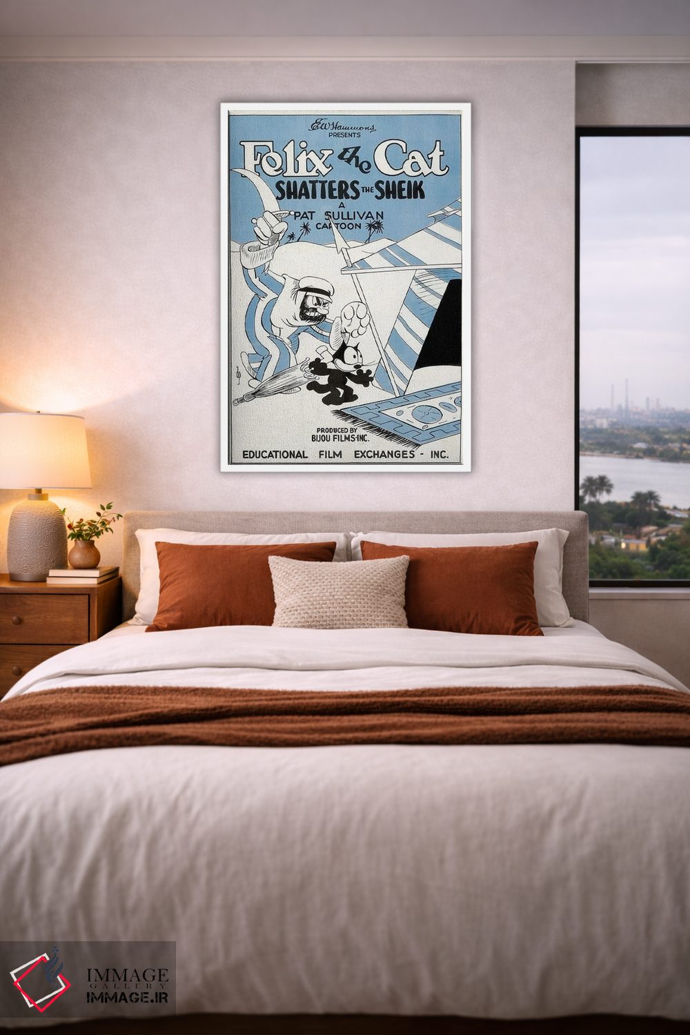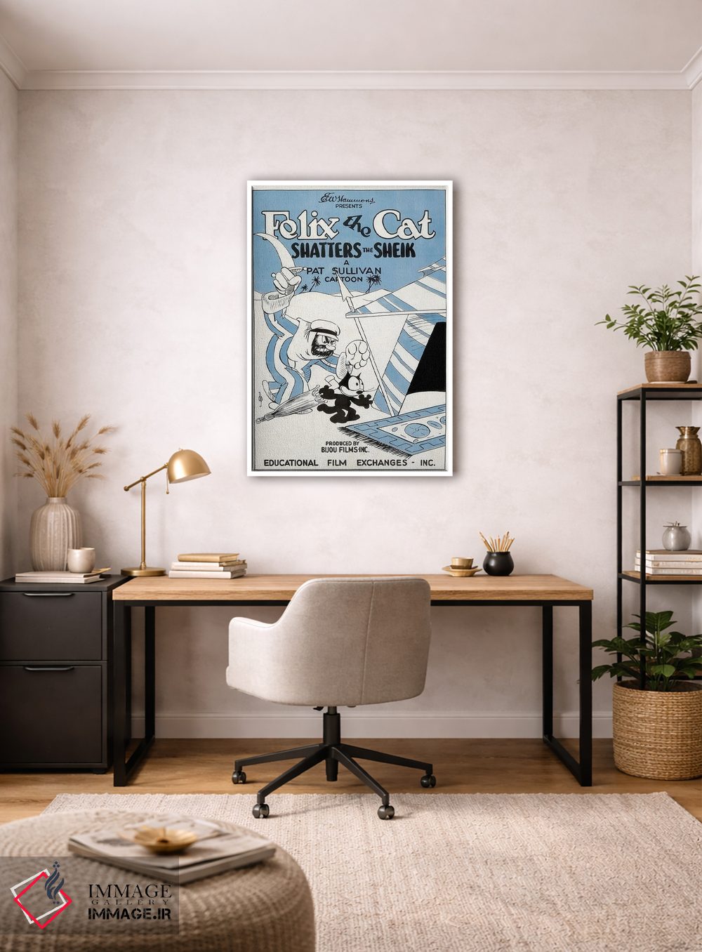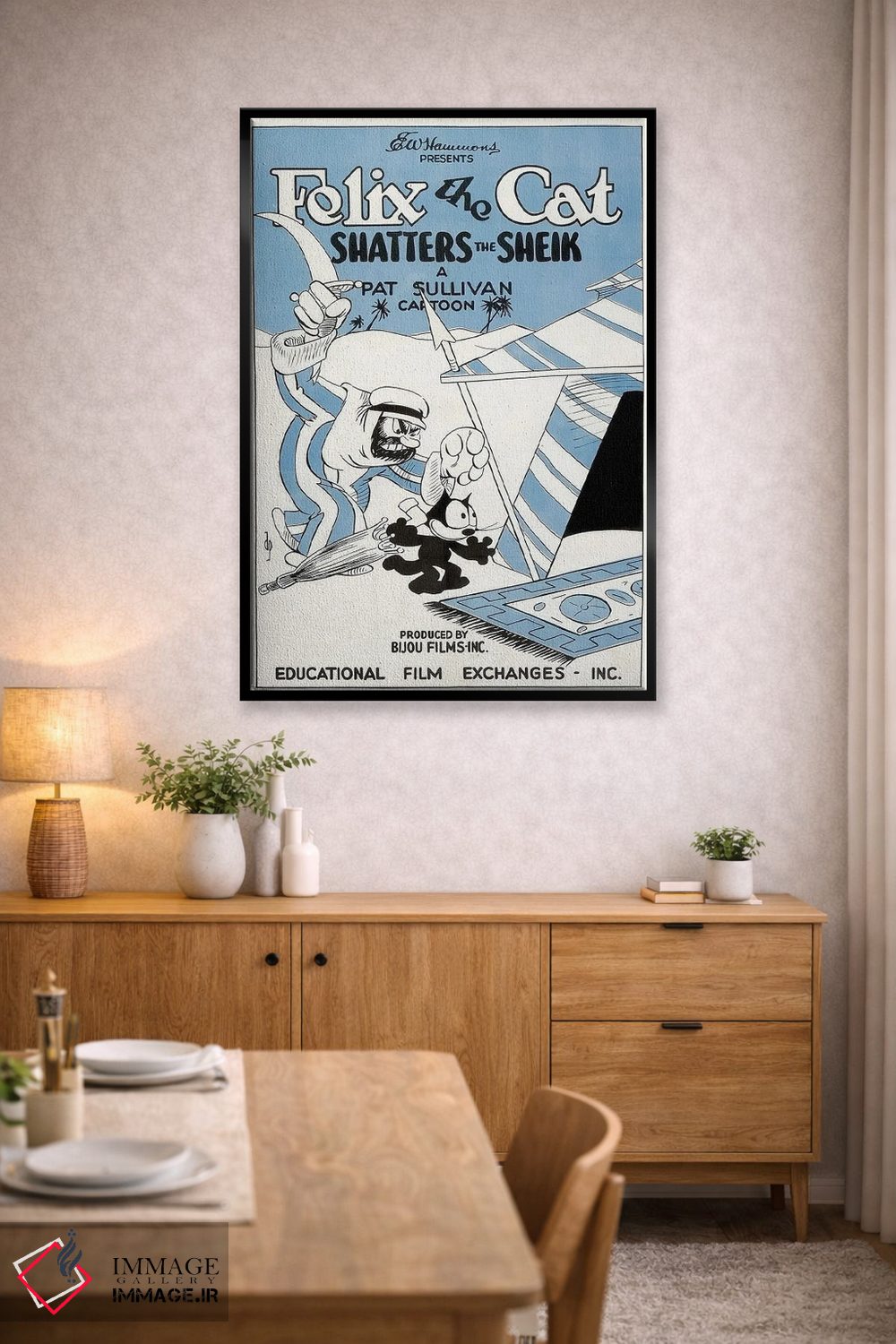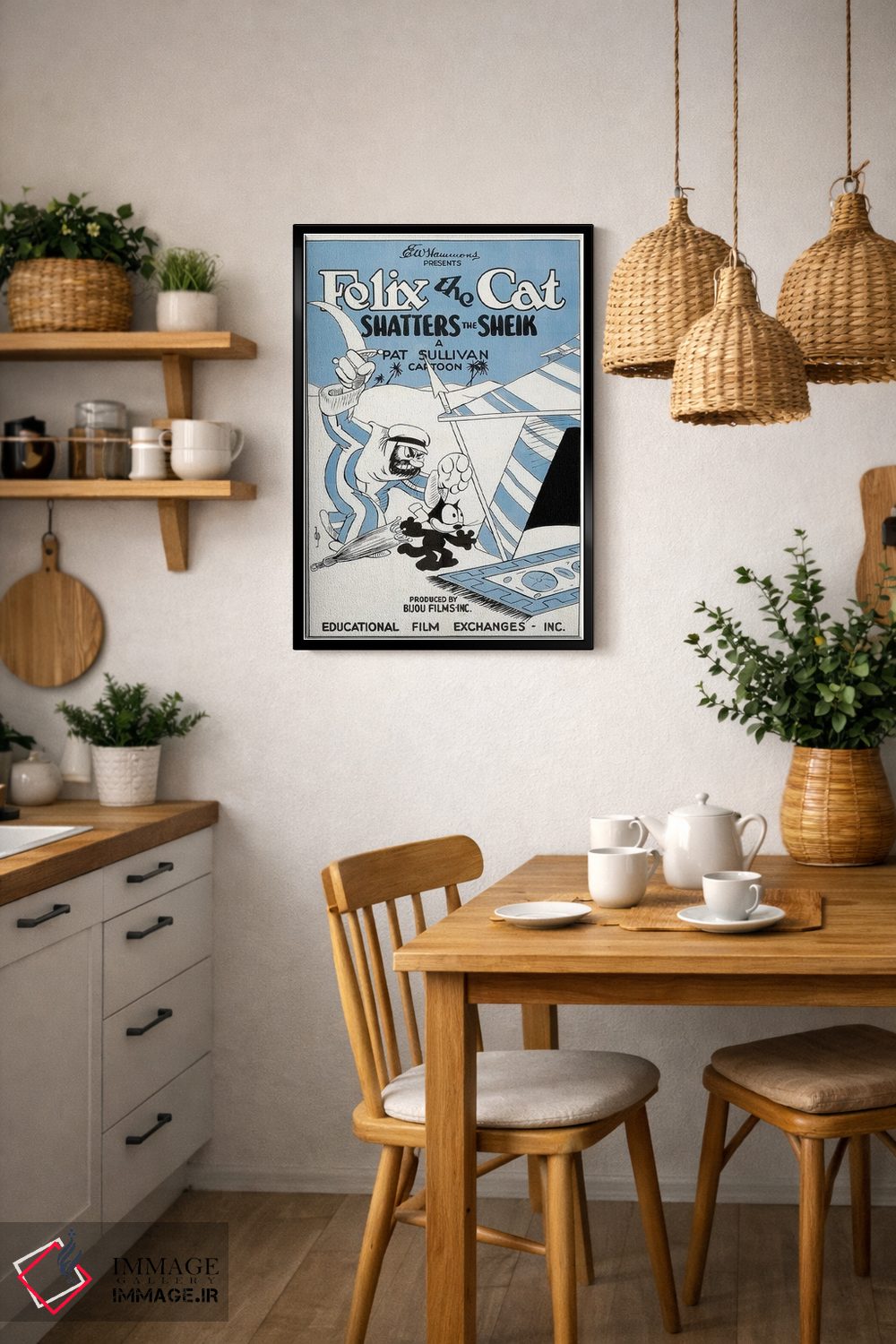 در «فلیکس؛ نابودکنندهٔ شیخ» اثرِ «رادیو دیز (نام هنری/پروژه هنری نوستالژیک)»، رنگها و فرمها یادآور پوسترهای قدیمیاند؛ انتخابی جذاب برای کافهاستایل و دکورهای شهری.