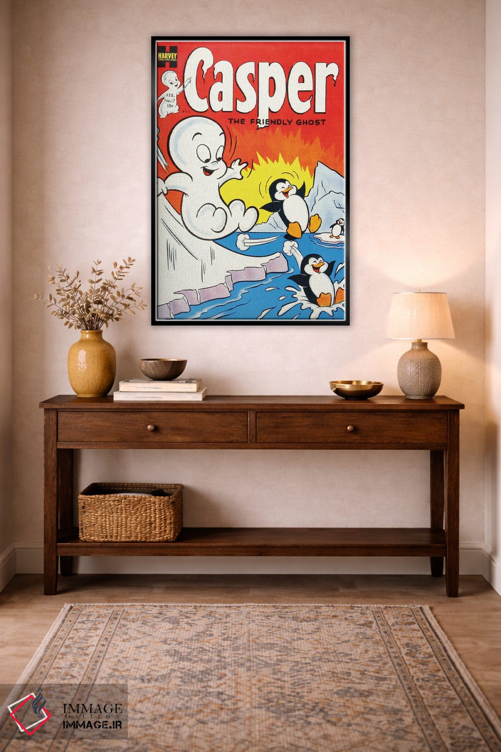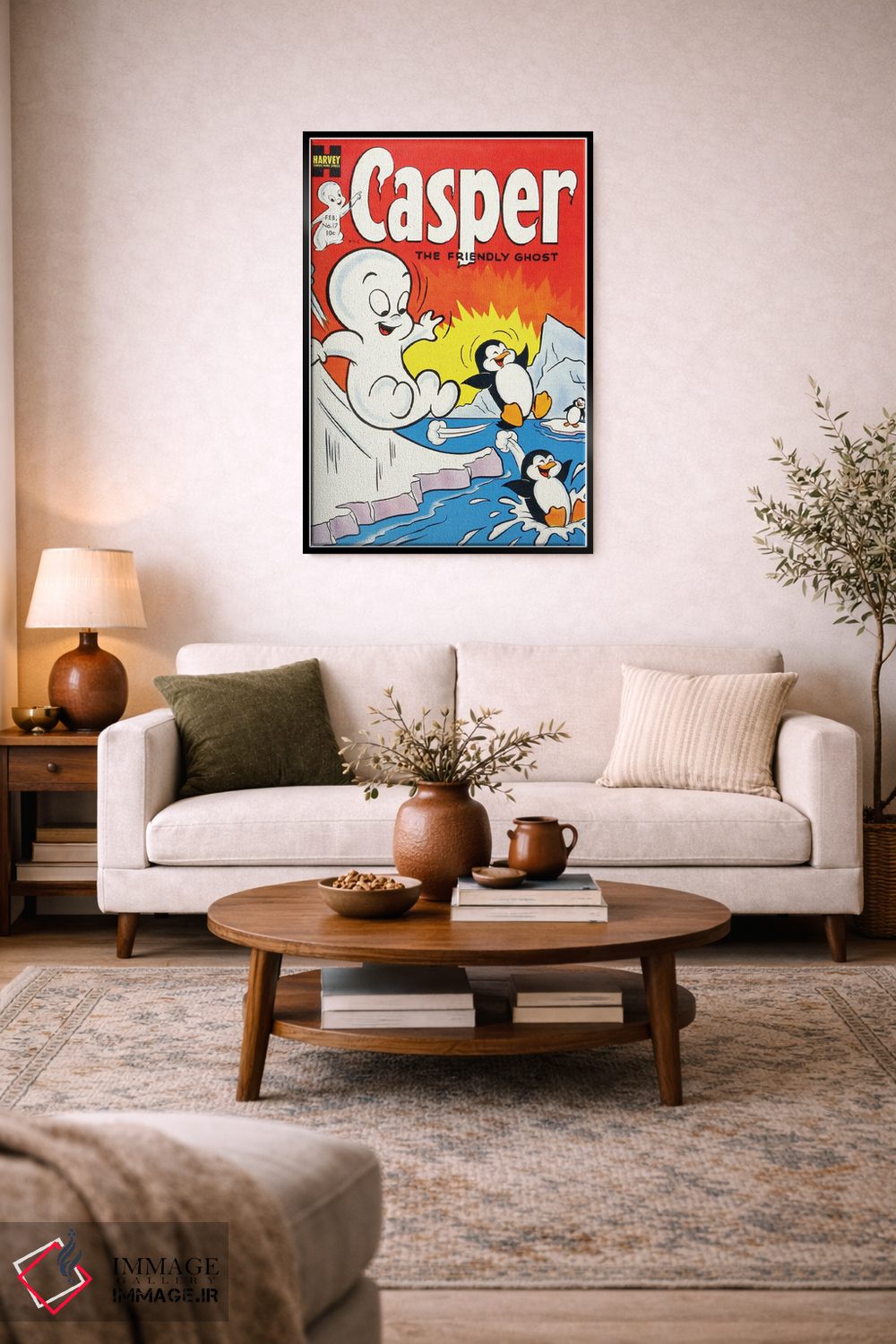 «روح روی سرسره یخی» اثرِ «رادیو دیز (نام هنری/پروژه هنری نوستالژیک)» کنار پوسترها و قابهای ساده، یک ترکیب دلنشین و متعادل میسازد.