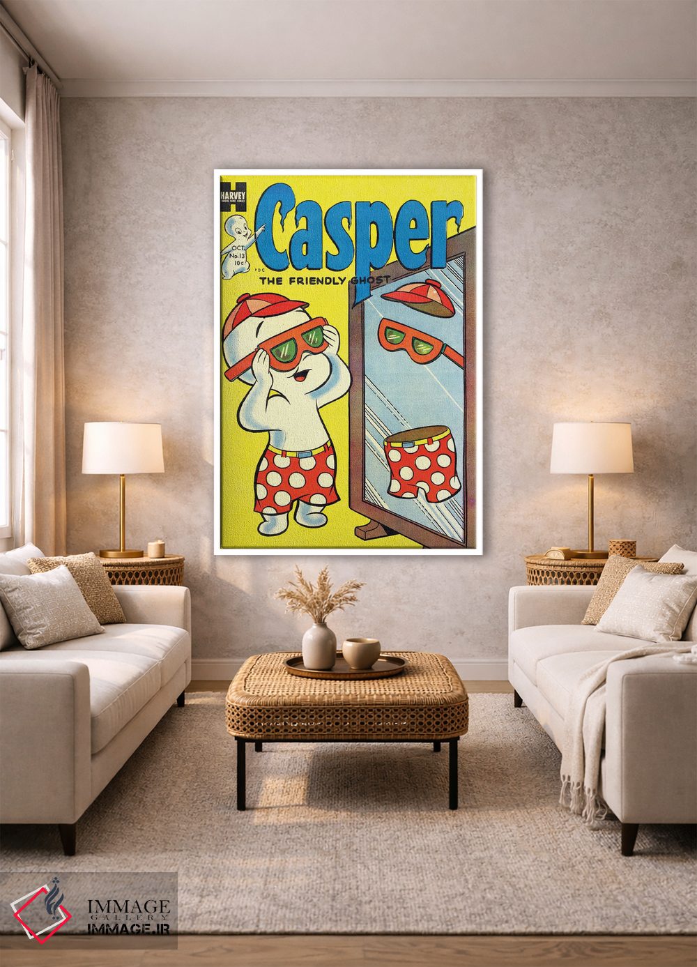 بوم گالری ایماژ نسخهی چیدماناتیوِ گالریپسند از یک اثر هنری است؛ روی کنواس سفیدِ یکدست و بدون اسید با چاپ هنریِ استاندارد جیکلی برای بازآفرینی حرفهای با رنگدانههای آرشیوی و سیستم رنگ دقیق؛ حس نهایی نزدیکتر به ارائهی گالریوار است؛ نه صرفاً یک تصویر. کلافکشی مرتب و یراق نصب استاندارد، تجربهی نصب را ساده میکند.