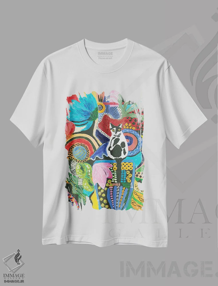 تی شرت «هم نشینی گربهٔ موو»؛ هنر انتزاعی برای علاقه مندان طبیعت و رنگ