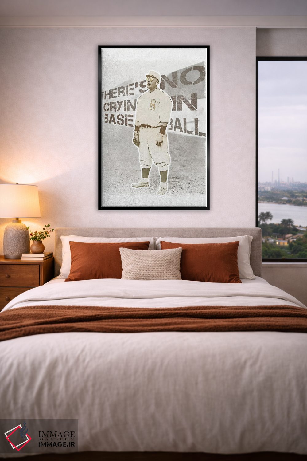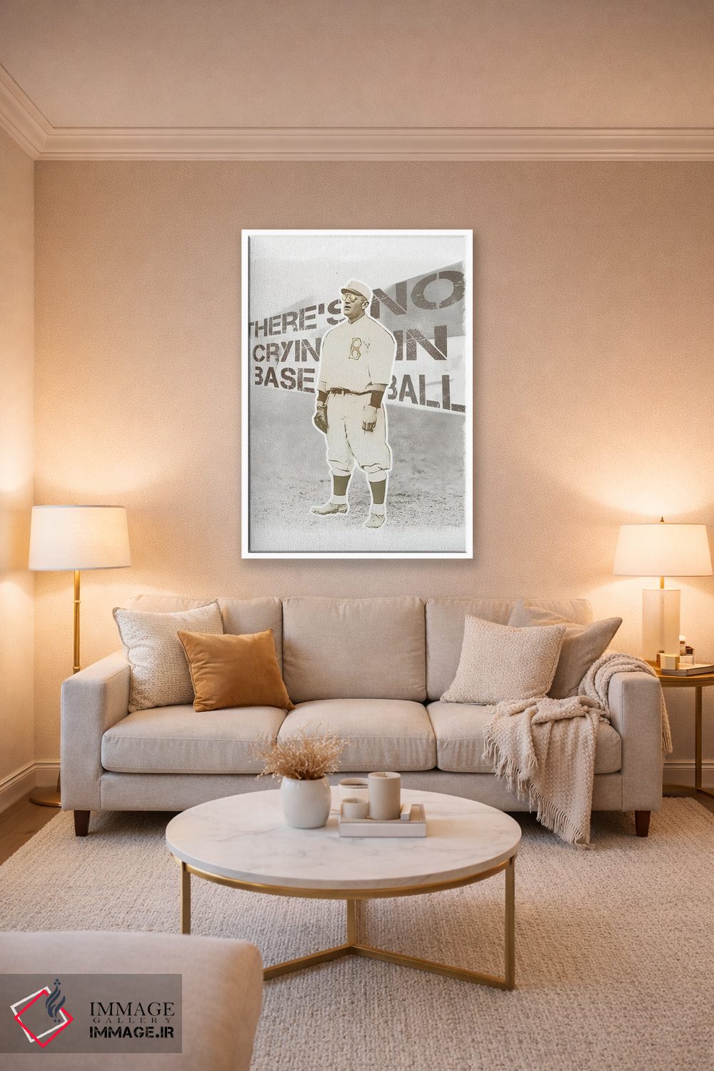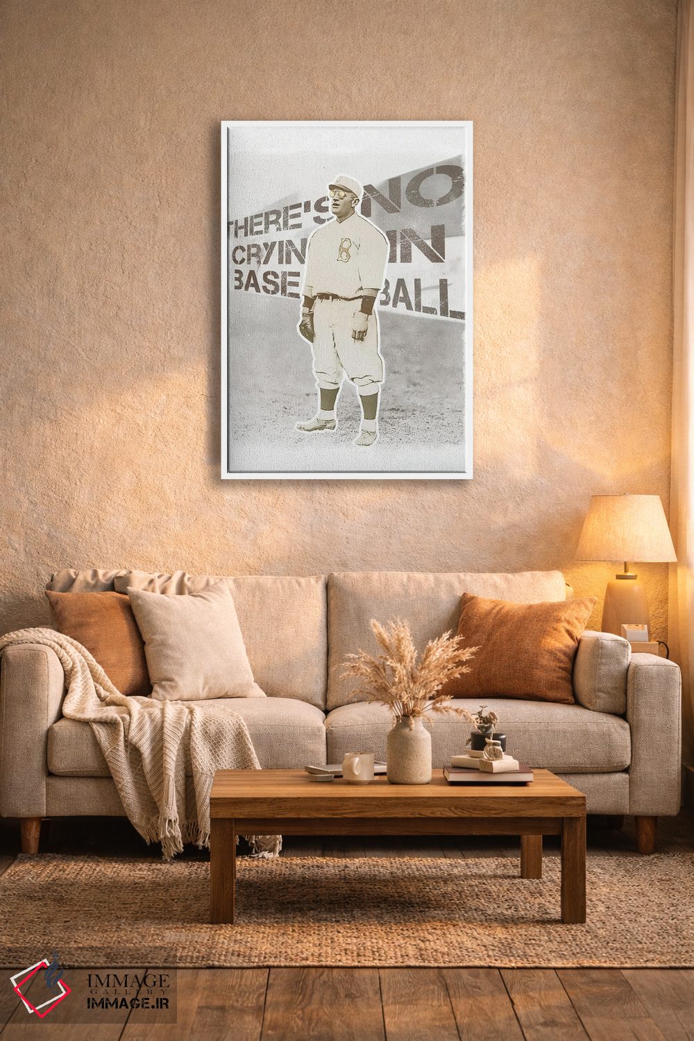 براساس پالت گرم اثر، قاب بلوط روشن (چوبی) پیشنهاد اول است و استخوانی ملایم مکمل. برای سفارشهای پروژهای با ابعاد و قابهای اختصاصی با ایماژ در تماس باشید.