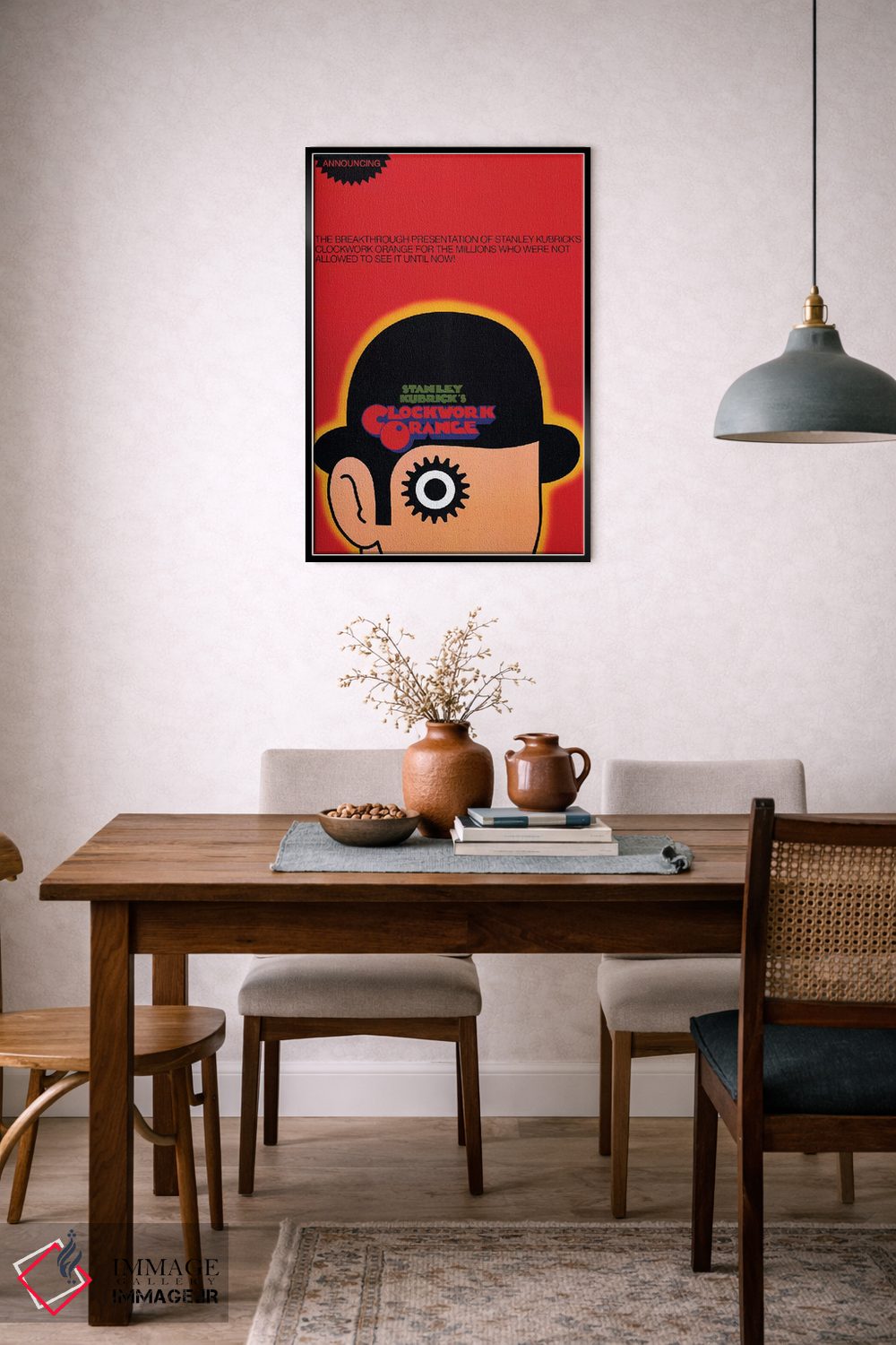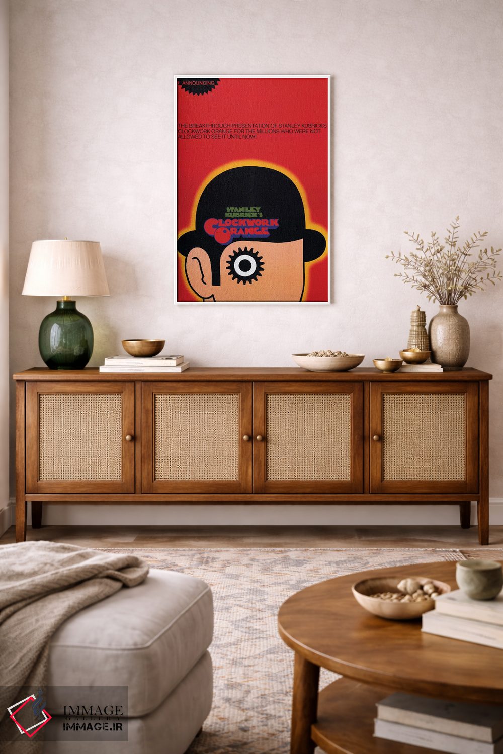 «پوستر فیلم پرتقال کوکی» اثرِ «رادیو دیز (نام هنری/پروژه هنری نوستالژیک)» ترکیب خوبی برای کنار قابهای ساده و خطوط تمیزِ دکوراسیون است.