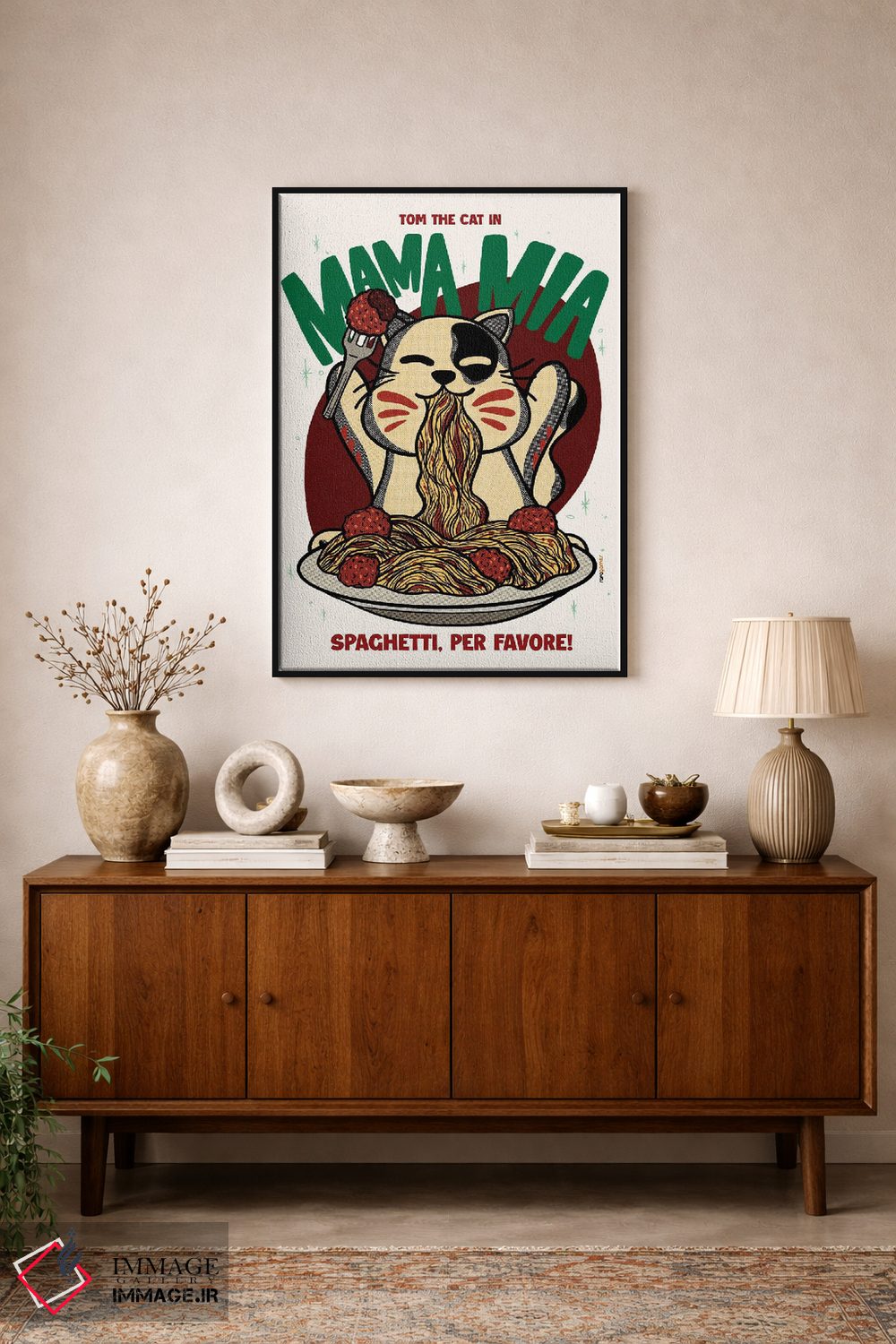 براساس پالت ترکیبی اثر، قاب تیک گرم (چوبی) پیشنهاد اول است و مشکی مات (فریم متوسط) مکمل. برای سفارشهای پروژهای با ابعاد و قابهای اختصاصی با ایماژ در تماس باشید.