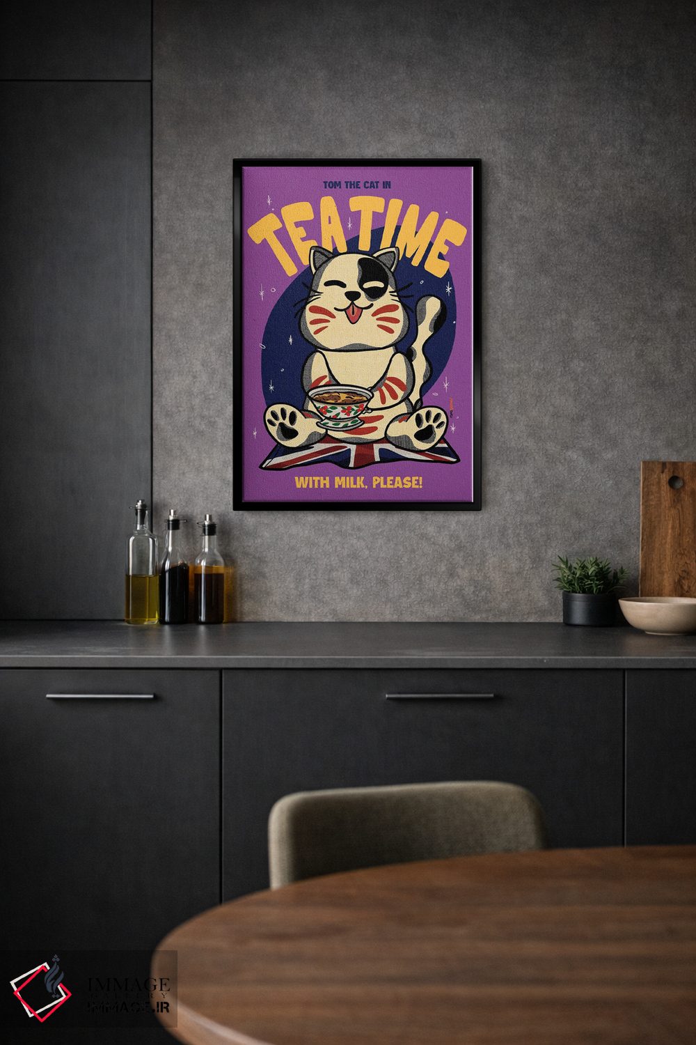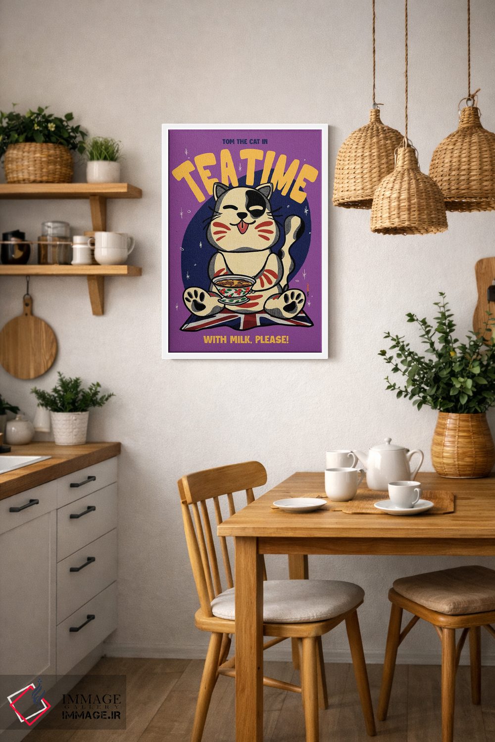 براساس پالت ترکیبی اثر، قاب تیک گرم (چوبی) پیشنهاد اول است و مشکی مات (فریم متوسط) مکمل.
