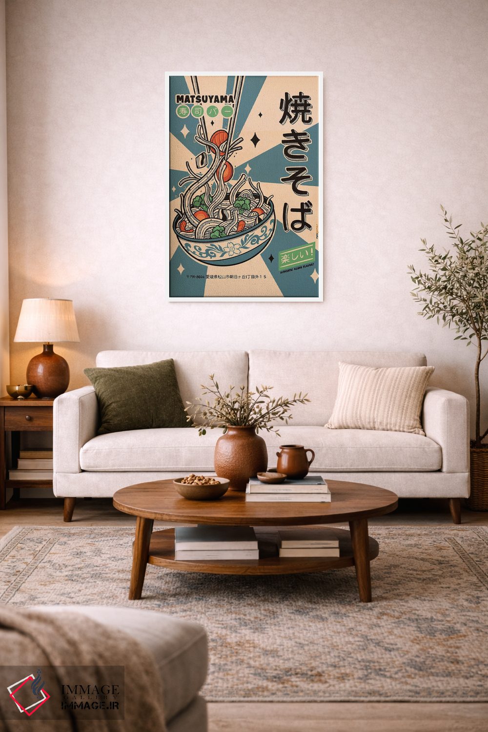 براساس پالت ترکیبی اثر، قاب بلوط روشن (چوبی) پیشنهاد اول است و استخوانی ملایم مکمل. برای سفارشهای پروژهای با ابعاد و قابهای اختصاصی با ایماژ در تماس باشید.