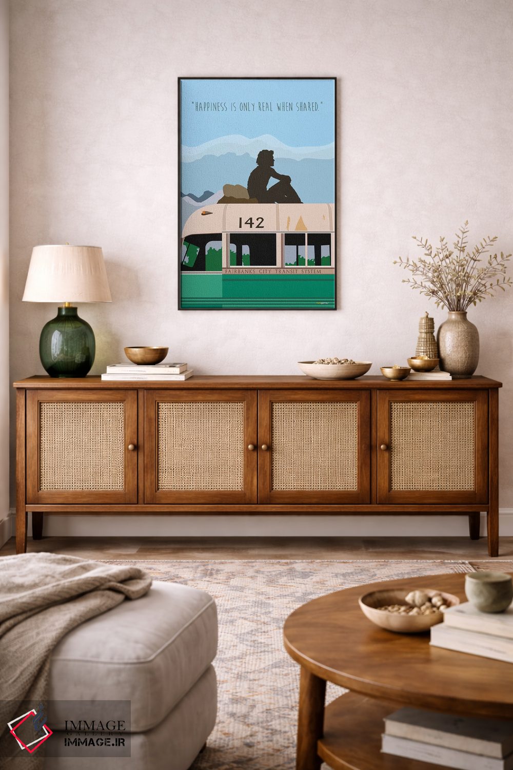 بوم گالری ایماژ طوری طراحی شده که اثر روی دیوار «پرداختشده» و حرفهای دیده شود—نه پرزرقوبرقِ بیپایه؛ بلکه دقیق و خوشپرداخت. بافت ظریف کنواس کمک میکند حس اثر هنری را در نگاه نزدیک نگه میدارد. کنترل تونها کمک میکند از تند شدن ناخواستهی رنگها جلوگیری میکند. حاصل کار، یک تابلو خوشنشین است که هم از دور اثرگذار است و هم از نزدیک خوشخوان؛ در کنار نورپردازی درست، جلوهی گالریوار بیشتری حس میشود. در کنار چوب و متریالهای طبیعی، بافت کنواس دلنشینتر دیده میشود.