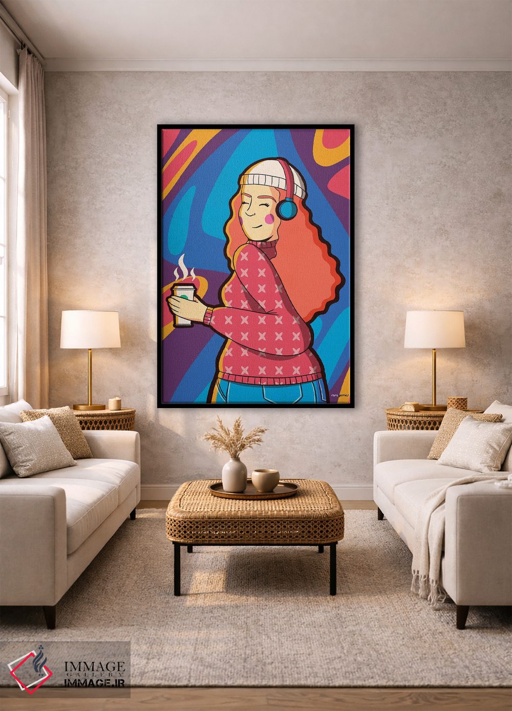 بوم گالری ایماژ نسخهی چیدماناتیوِ حرفهای از یک اثر هنری است. روی کنواس بدون اسید با بافت ظریف و یکنواخت با چاپ هنری به استاندارد جیکلی (Giclée) و جوهرهای آرشیوی Epson UltraChrome HDR برای بازنمایی بهتر تونهای حساس؛ رنگها روی دیوار متعادلتر و سایهها جزئیتر دیده میشوند. کلافکشی مرتب و یراق نصب استاندارد، تجربهی نصب را ساده میکند.