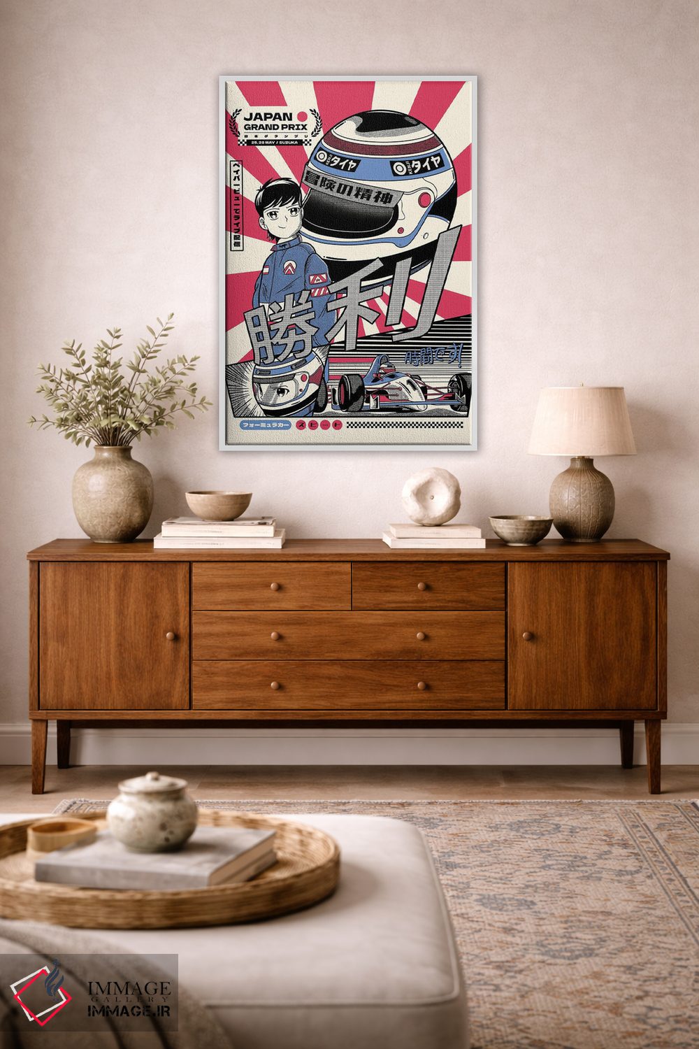 برای فضاهای خلاق و جوان، هنری در «جایزه بزرگ ژاپن—مسابقه ۱» اثرِ «رافائل گومز» انتخابی جذاب و بهروز است.