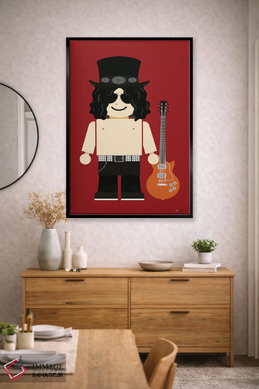 برای ستکردن هوشمندانه، یک رگه از قرمز را در قاب تصویرهای کناری بهکار ببرید تا هماهنگی بیشتر به چشم بیاید. انتخاب قاب هم میتواند بهخوبی این اکسنت را تقویت کند.