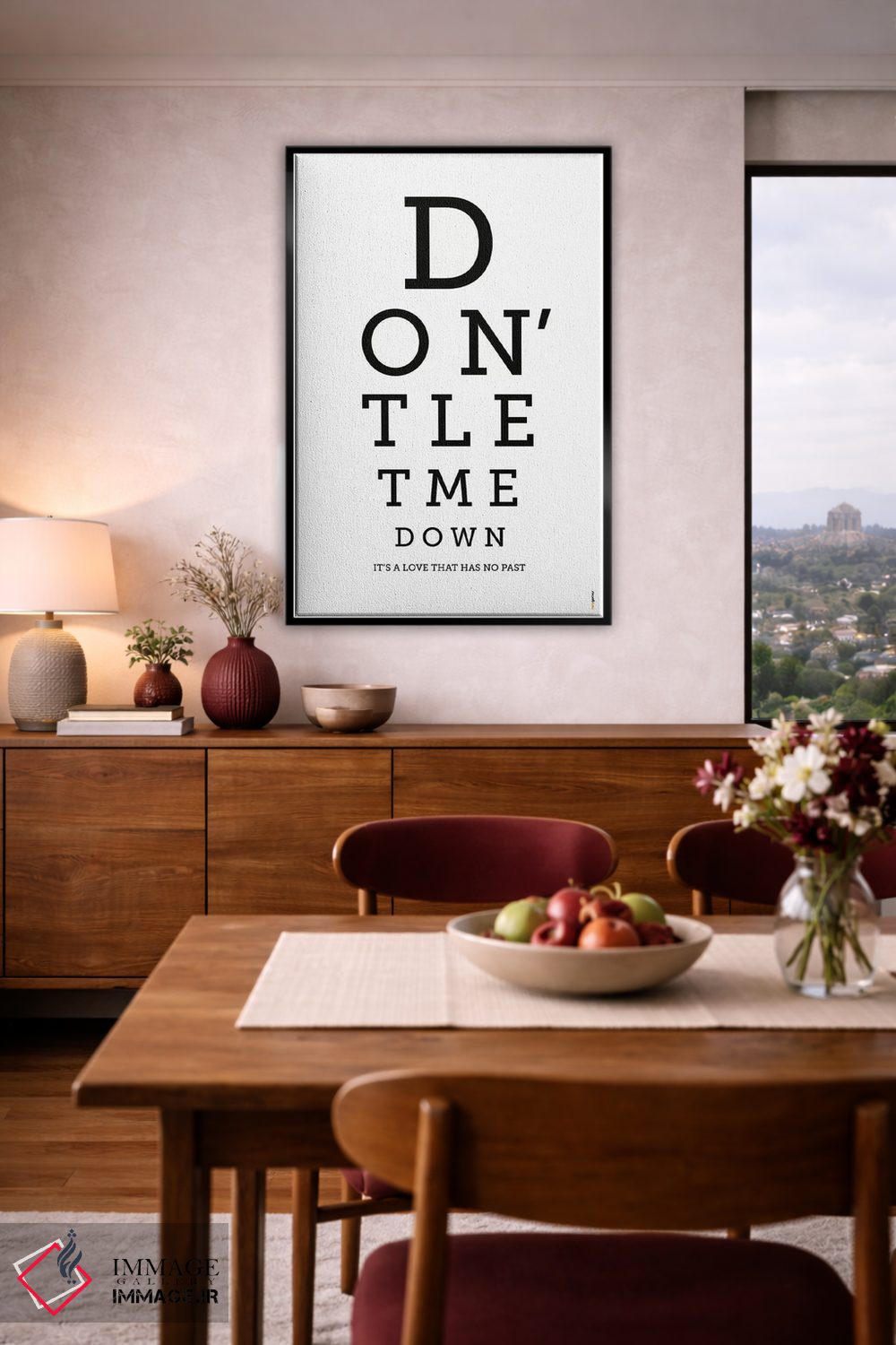 براساس پالت خنثی اثر، قاب مشکی مات (فریم باریک) پیشنهاد اول است و سفید مات (فریم باریک) مکمل. برای سفارشهای پروژهای با ابعاد و قابهای اختصاصی با ایماژ در تماس باشید.