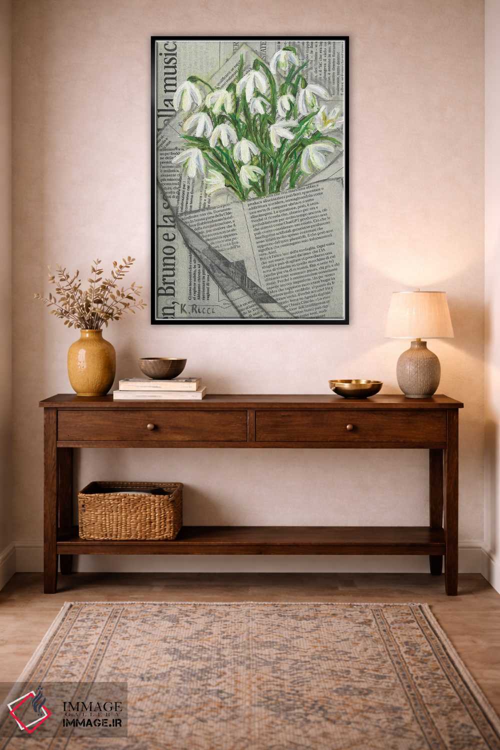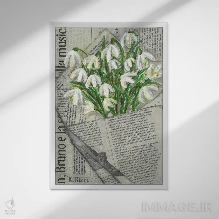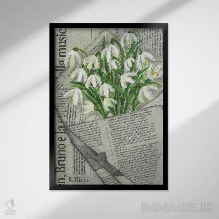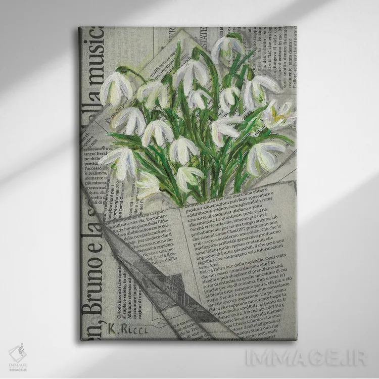 تابلو دکوراتیو گل سوسن برفی در کیسه روزنامه ای اثر کاتیا ریچی