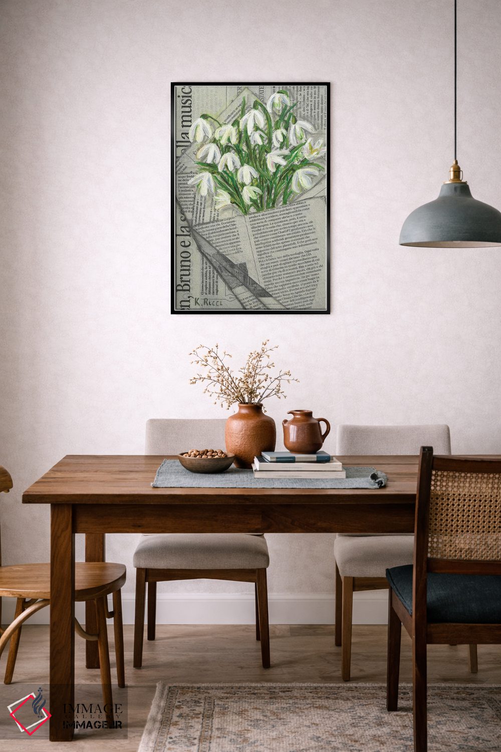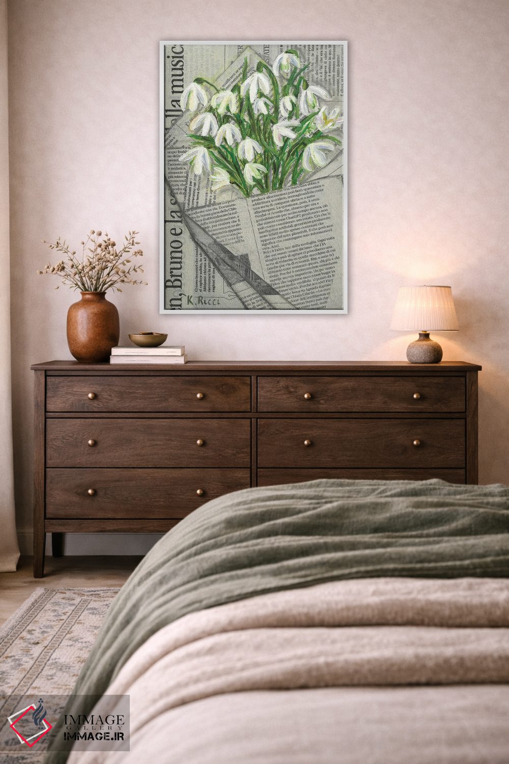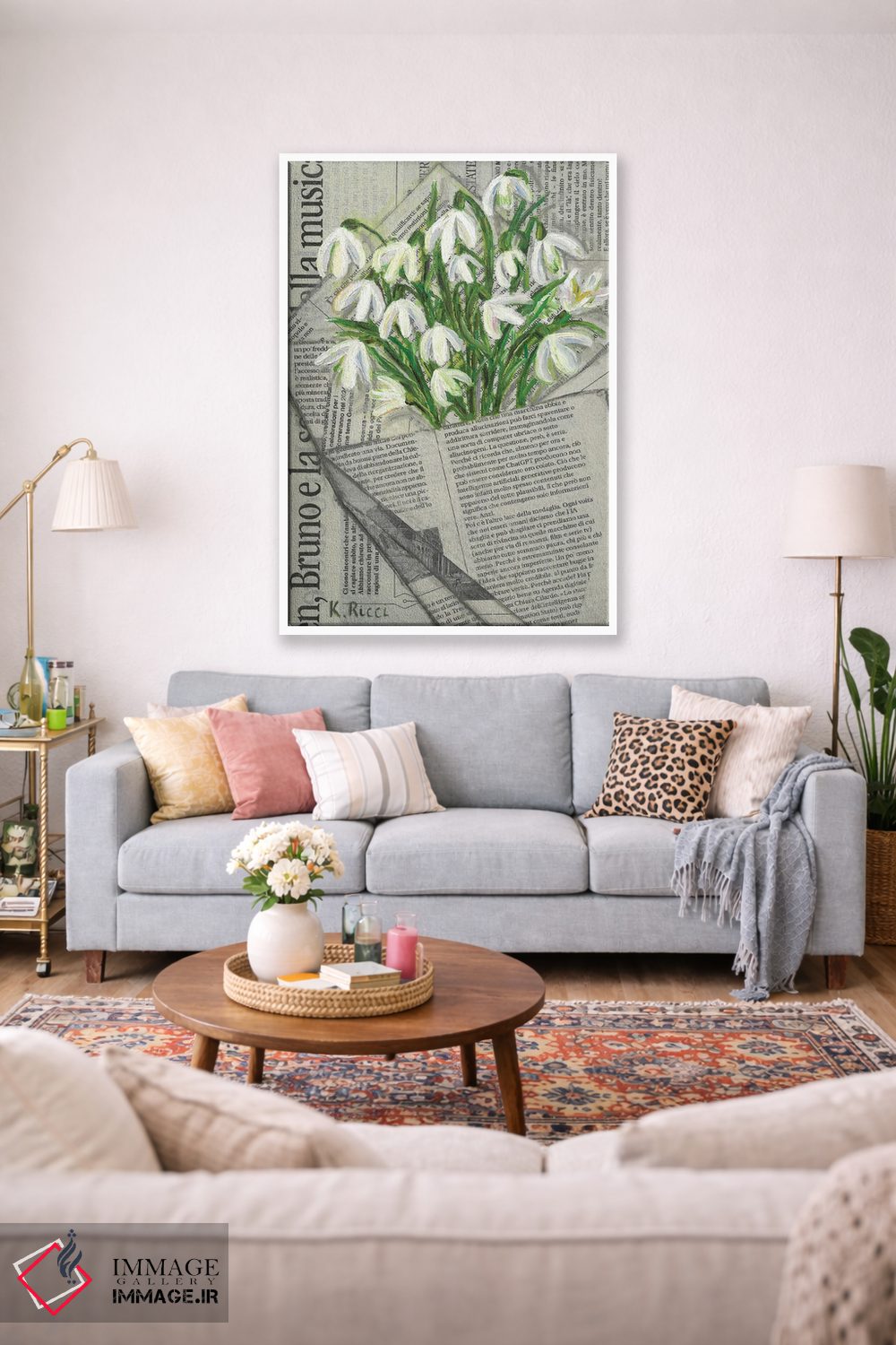 تابلو دکوراتیو گل سوسن برفی در کیسه روزنامه ای اثر کاتیا ریچی
