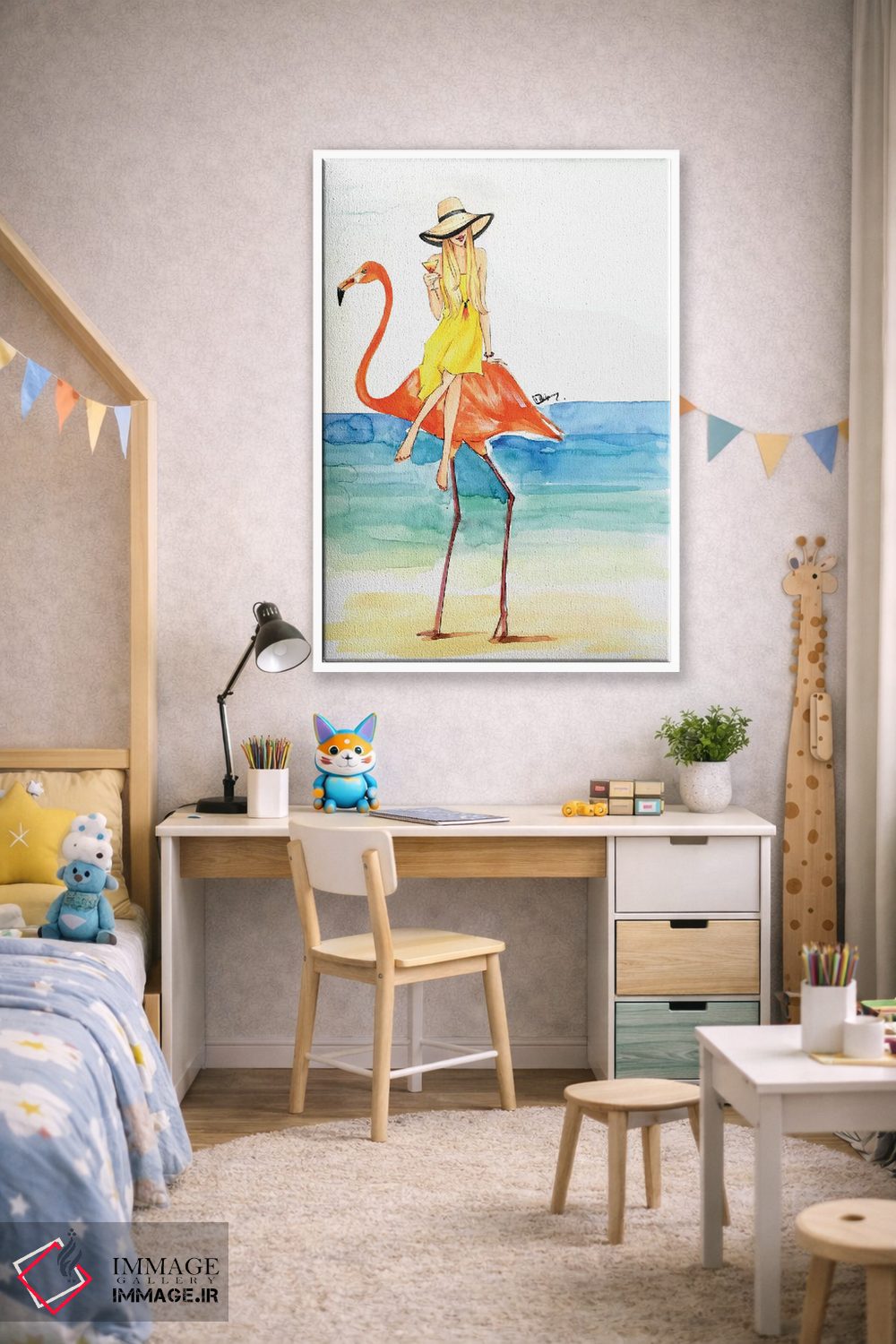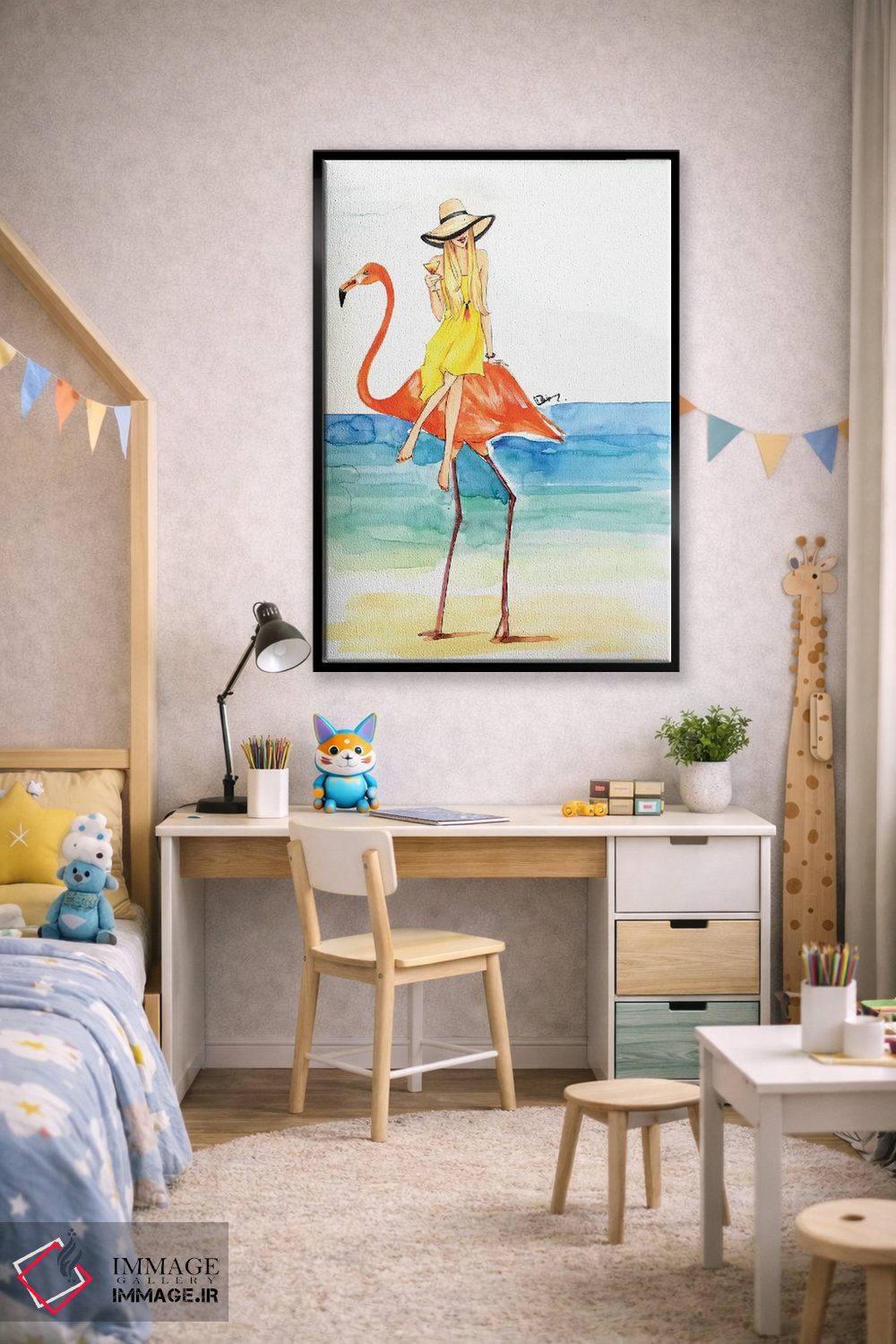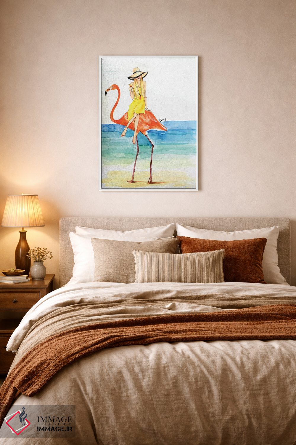 وقتی چیدمان را با دقت میچینید، «سواری فلامینگو (شکل فانتزی)» اثرِ «رونگرونگ دووُ» به فضا، روایت ملایم و قابل لمس میدهد؛ برای دیوارهای گالریوار و ترکیب چند اثر پیشنهاد میشود. برای ترکیب با چوب، سنگ یا فلز، انتخابی دقیق است.