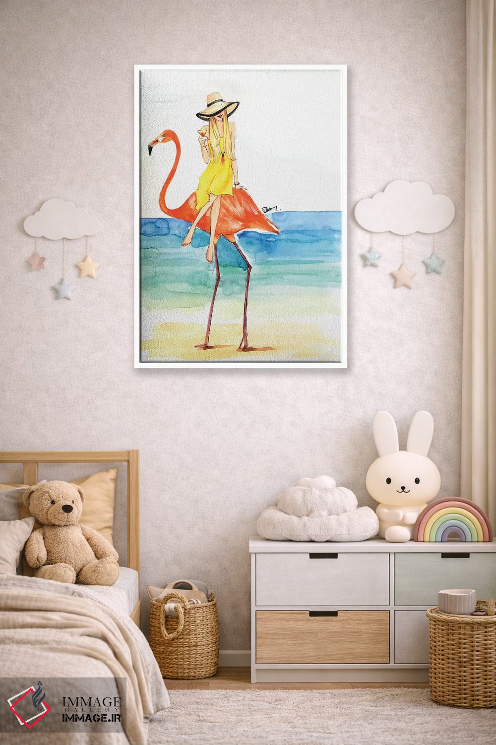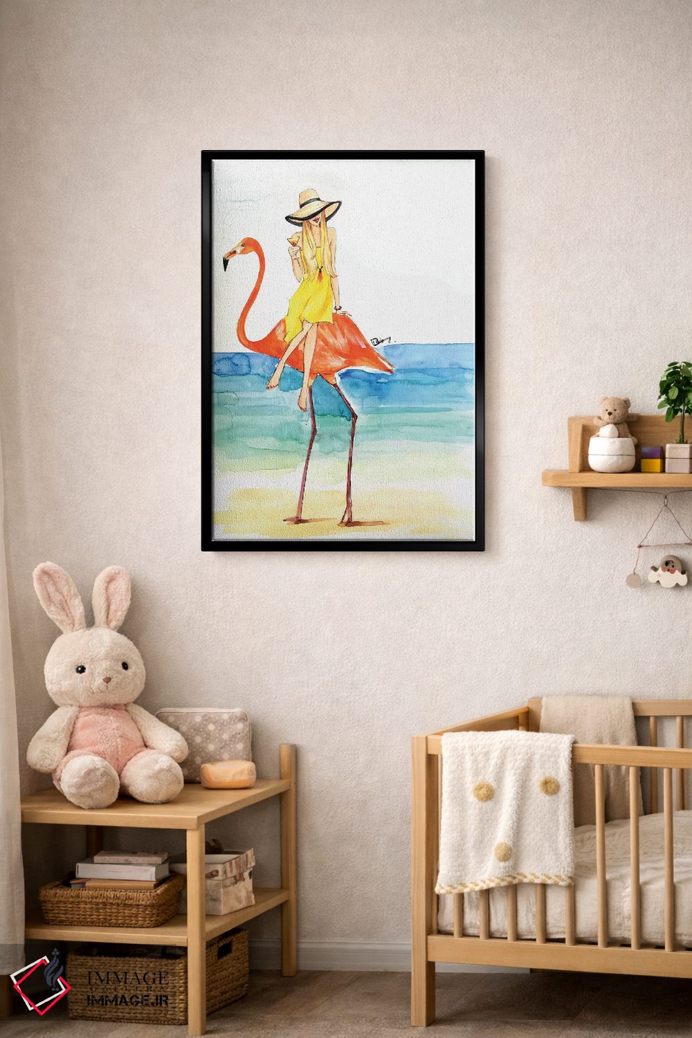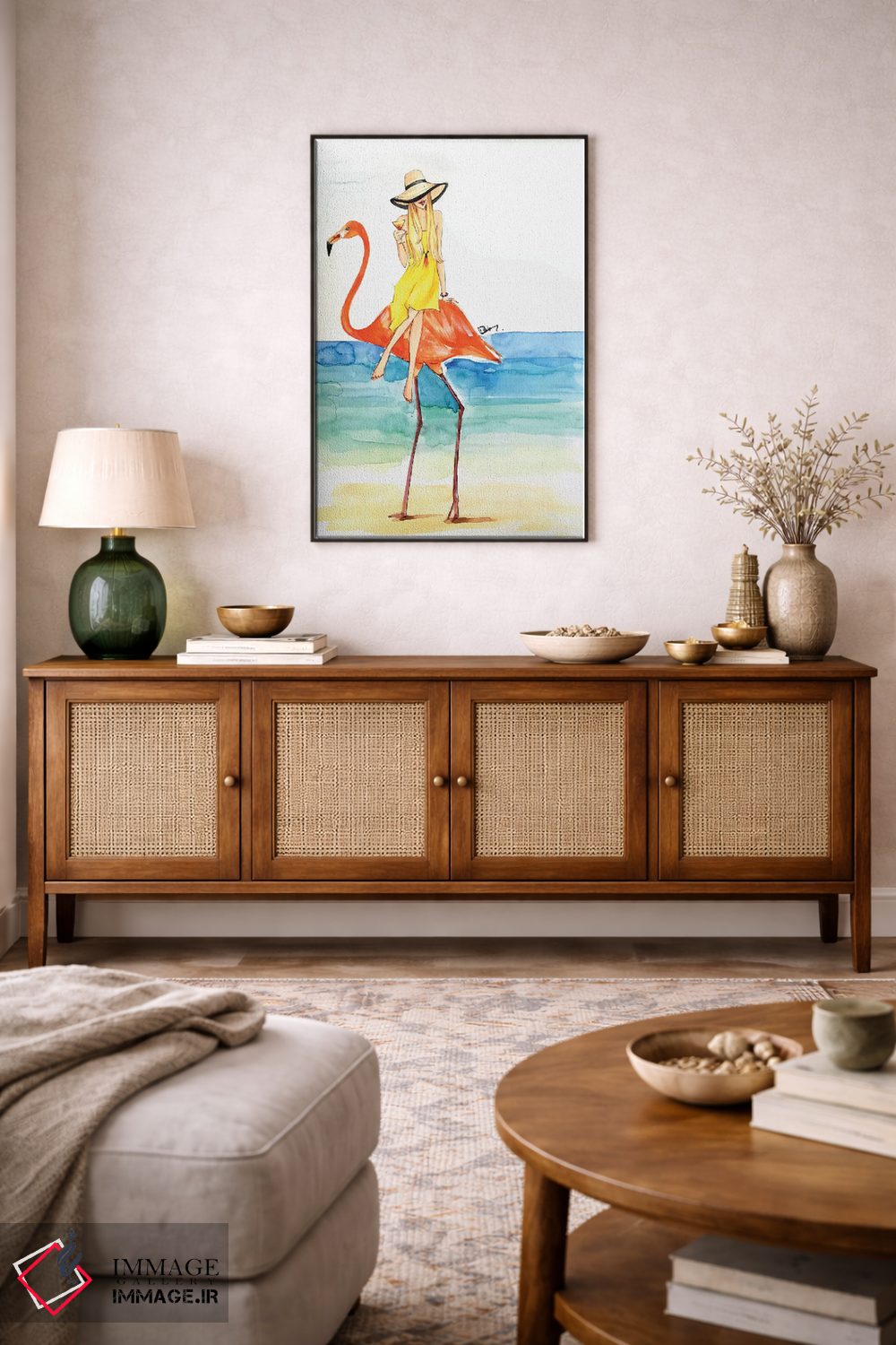 وقتی چیدمان را با دقت میچینید، «سواری فلامینگو (شکل فانتزی)» اثرِ «رونگرونگ دووُ» به فضا، روایت ملایم و قابل لمس میدهد؛ برای دیوارهای گالریوار و ترکیب چند اثر پیشنهاد میشود. برای ترکیب با چوب، سنگ یا فلز، انتخابی دقیق است.