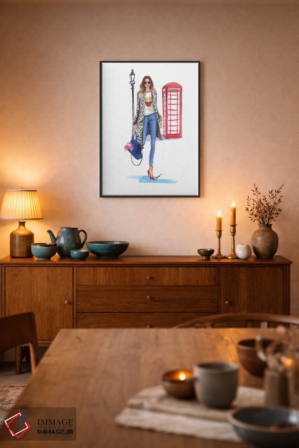 براساس پالت ترکیبی اثر، قاب تیک گرم (چوبی) پیشنهاد اول است و مشکی مات (فریم متوسط) مکمل. برای سفارشهای پروژهای با ابعاد و قابهای اختصاصی با ایماژ در تماس باشید.