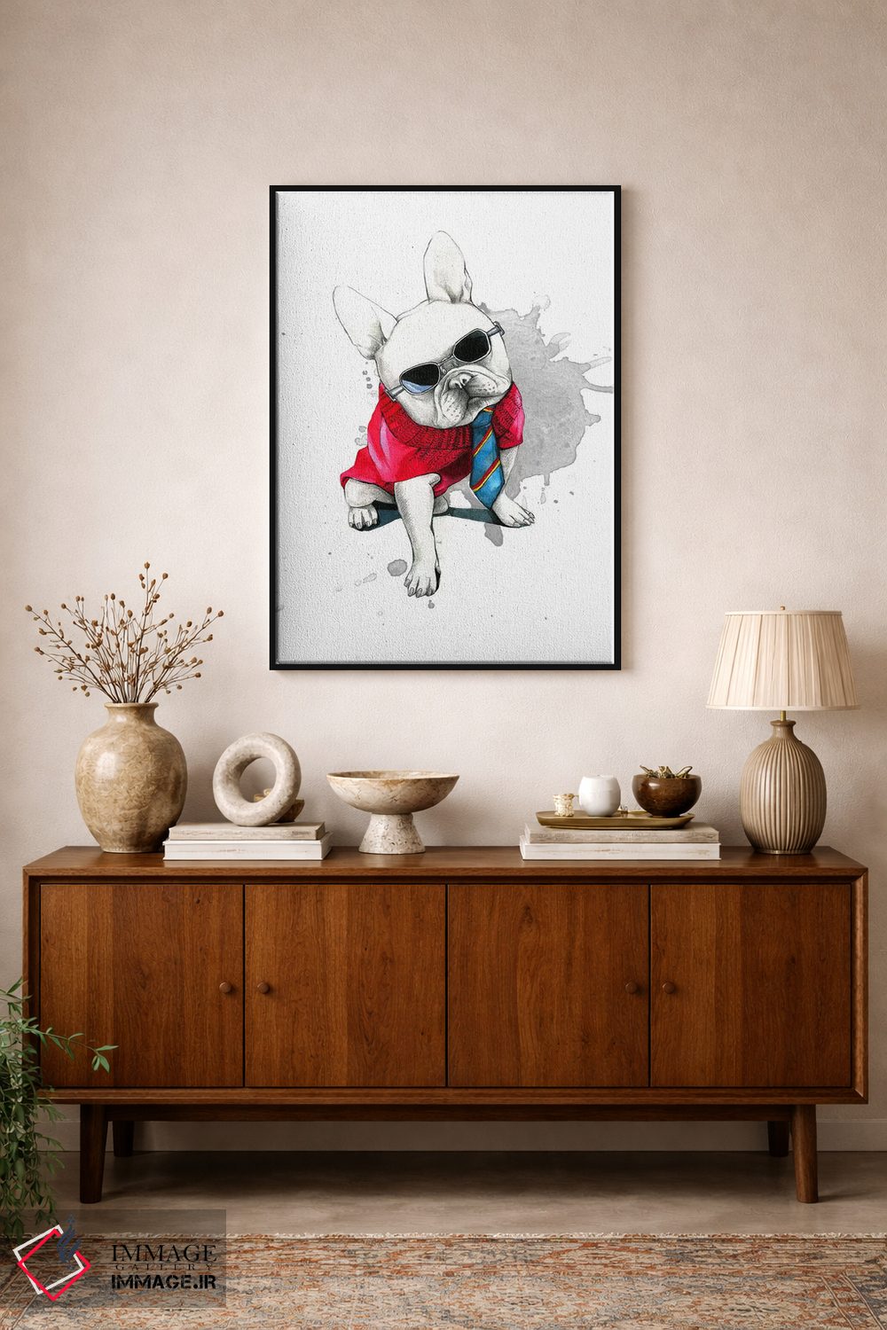 اگر به آثار حیوانات علاقه دارید، «بولداگ (نوع سگ)» اثرِ «رونگرونگ دووُ» یک لبخند ریز به چیدمان میدهد، برای راهروها و ورودیهای گرم گزینهٔ مناسبیست. برای دیوار گالریوار هم گزینهٔ خوبیست.