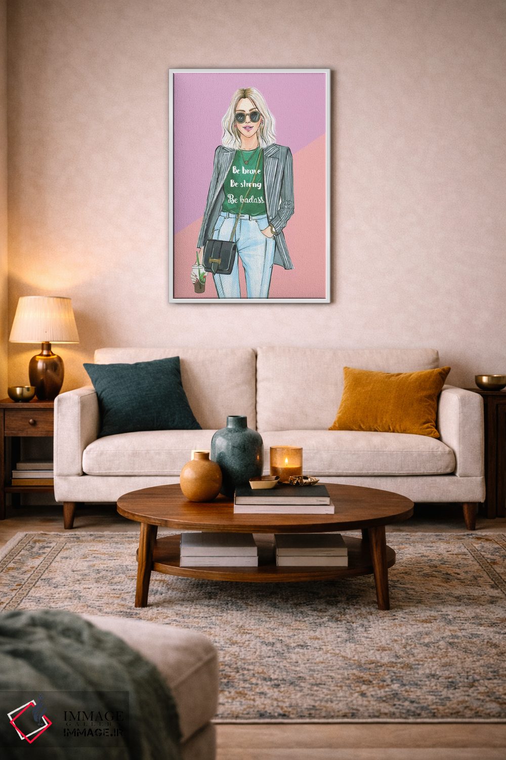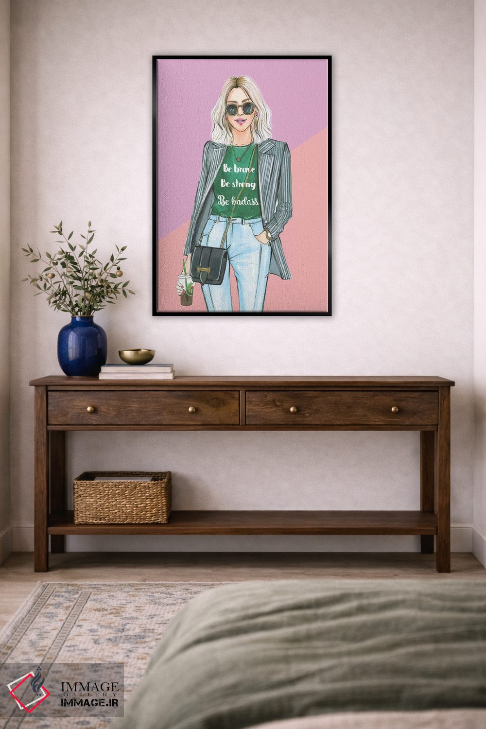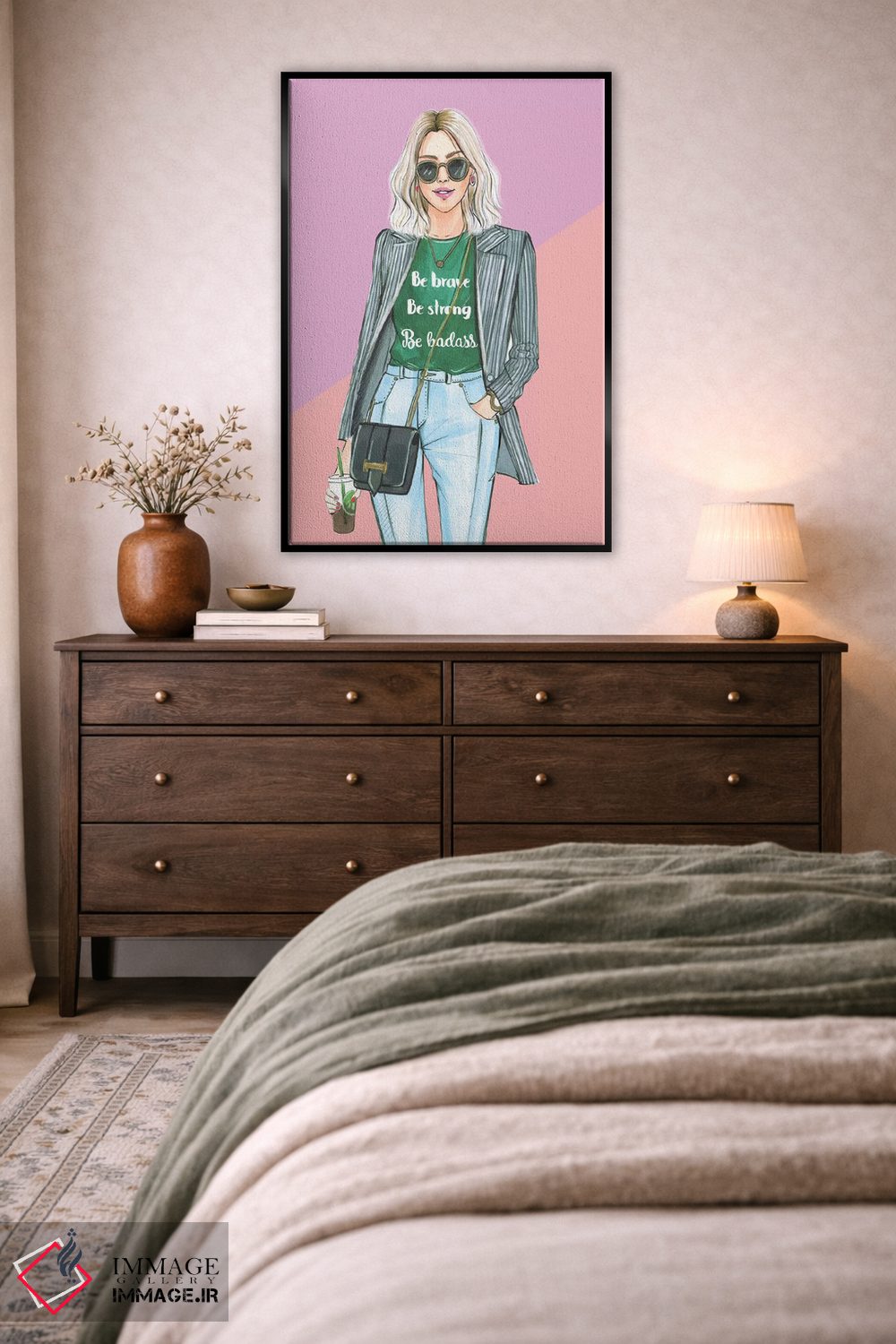 بوم گالری ایماژ طوری طراحی شده که اثر روی دیوار «پرداختشده» و حرفهای دیده شود—نه پرزرقوبرقِ بیپایه؛ بلکه دقیق و خوشپرداخت. بافت ظریف کنواس کمک میکند حس اثر هنری را در نگاه نزدیک نگه میدارد و همین «پرداخت» تفاوت را میسازد. چاپ جیکلی (Giclée) کمک میکند برای آرتپرینتهای جدی استاندارد رایج است و برای فضاهای رسمیتر هم انتخاب مطمئنی است. در نهایت، نتیجه چیزی شبیه تفاوت نسخهی معمولی با نسخهی باکیفیتتر است: نه رنگِ بیشتر، بلکه پرداخت بهتر؛ و اگر بخواهید، میتوان چیدمان را برای گالریوال هم پیشنهاد داد.