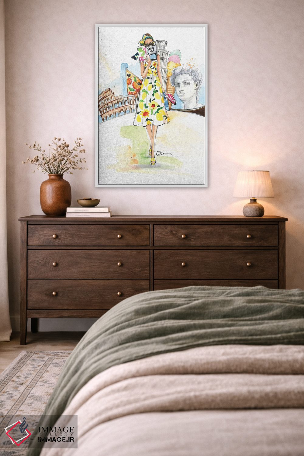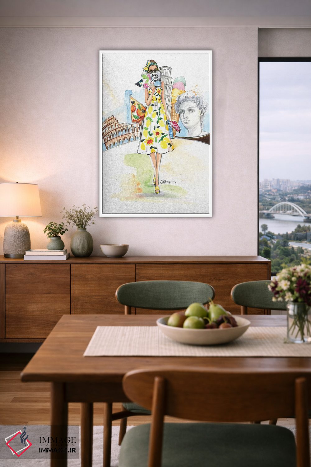 بوم گالری ایماژ نسخهی چیدماناتیوِ سطحبالا از یک اثر هنری است؛ روی کنواس بدون اسید با بافت ظریف و یکنواخت با چاپ هنریِ دقیق (Giclée) برای گذارهای نرمتر و وضوح بالاتر با رنگهای آرشیوی UltraChrome HDR برای طبیعیتر دیده شدن رنگها روی دیوار، خروجی، عمق رنگ و پرداختی است که «با چشم» دیده میشود. کلافکشی مرتب و یراق نصب استاندارد، تجربهی نصب را ساده میکند.
