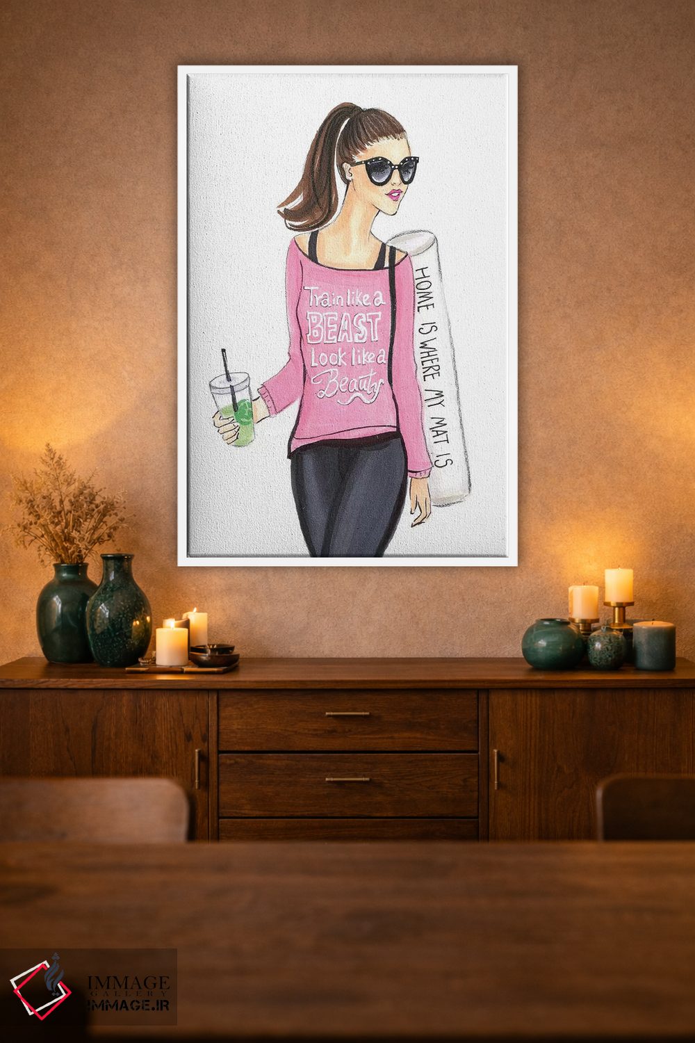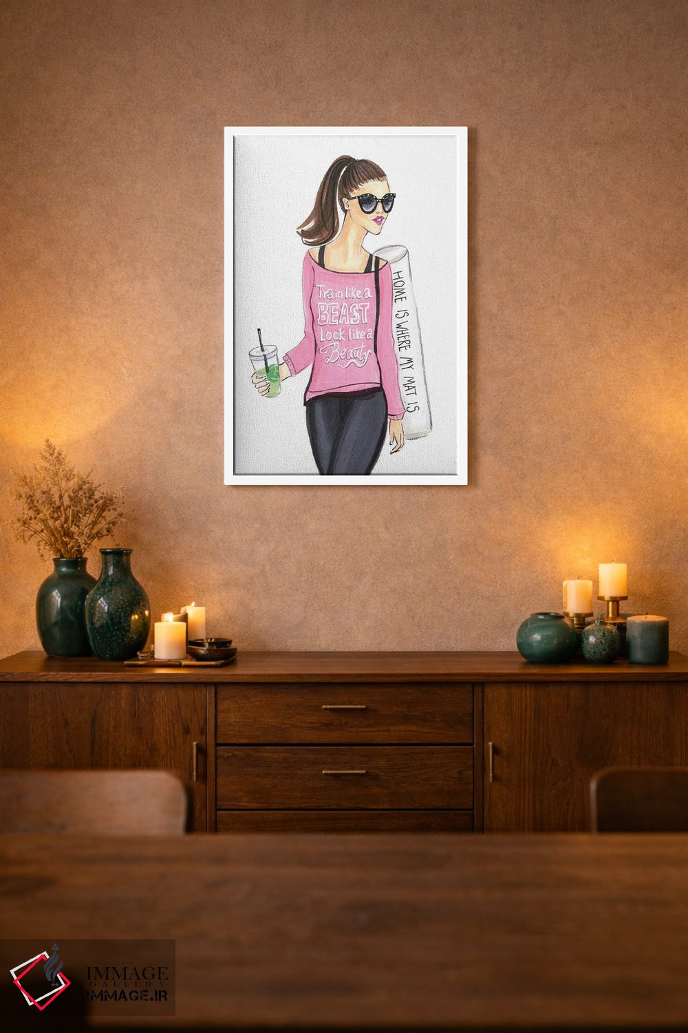براساس پالت گرم اثر، قاب تیک گرم (چوبی) پیشنهاد اول است و مشکی مات (فریم متوسط) مکمل. برای سفارشهای پروژهای با ابعاد و قابهای اختصاصی با ایماژ در تماس باشید.