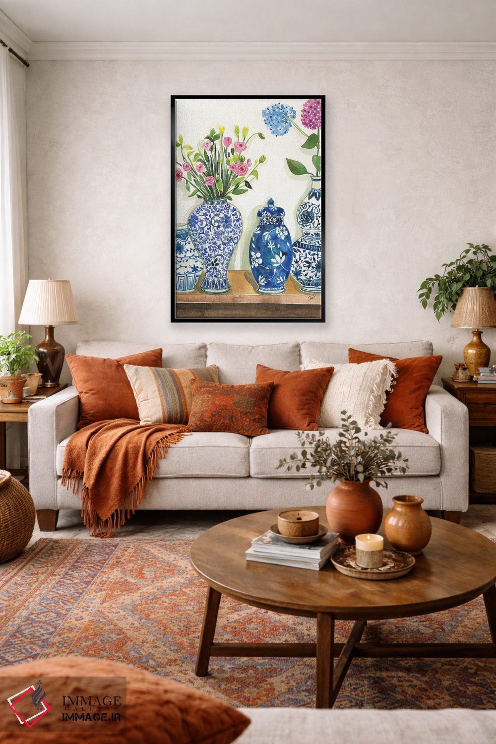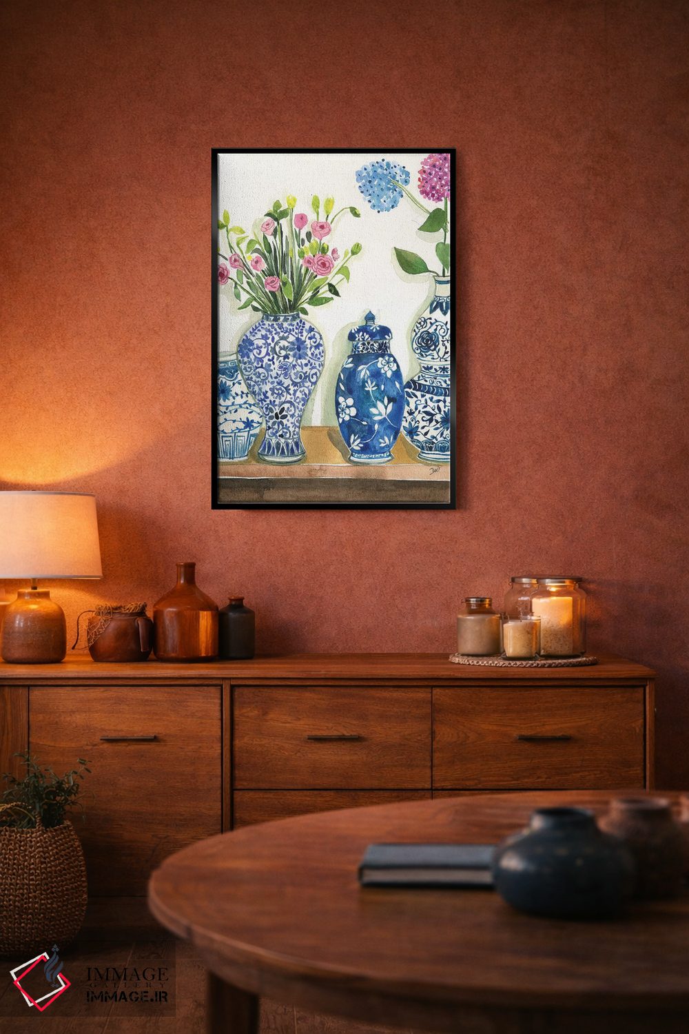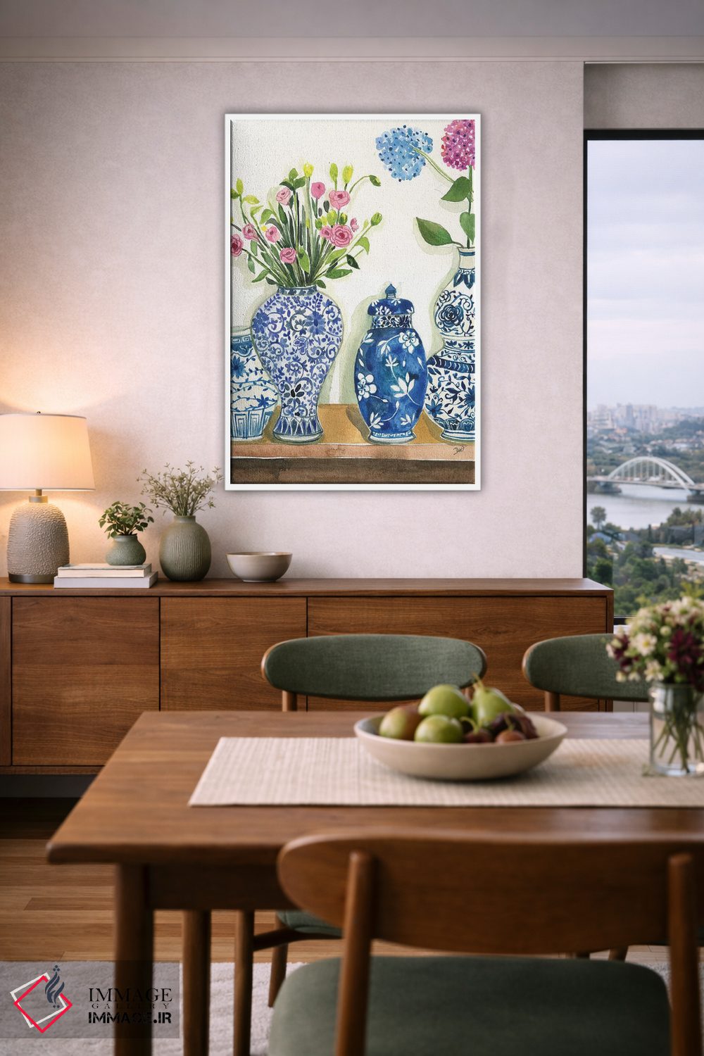 اگر دوست دارید دیوار روشنتر و آرامتر دیده شود، «مجموعه ظروف زنجبیلی» اثرِ «رونگرونگ دووُ» حس فصل را آرام وارد فضا میکند، برای خانههایی با نور طبیعی گزینهٔ مناسبیست. فضا را شلوغ نمیکند؛ فقط لطیفترش میکند.