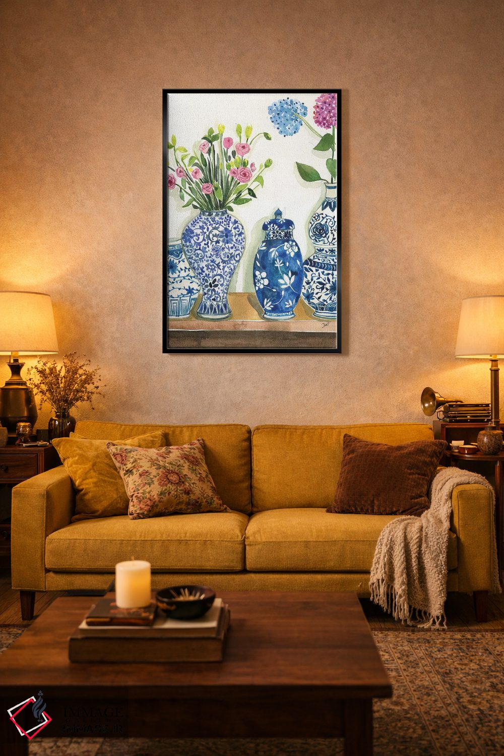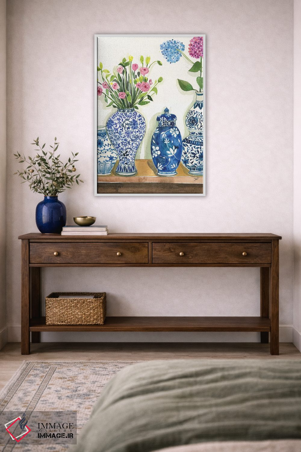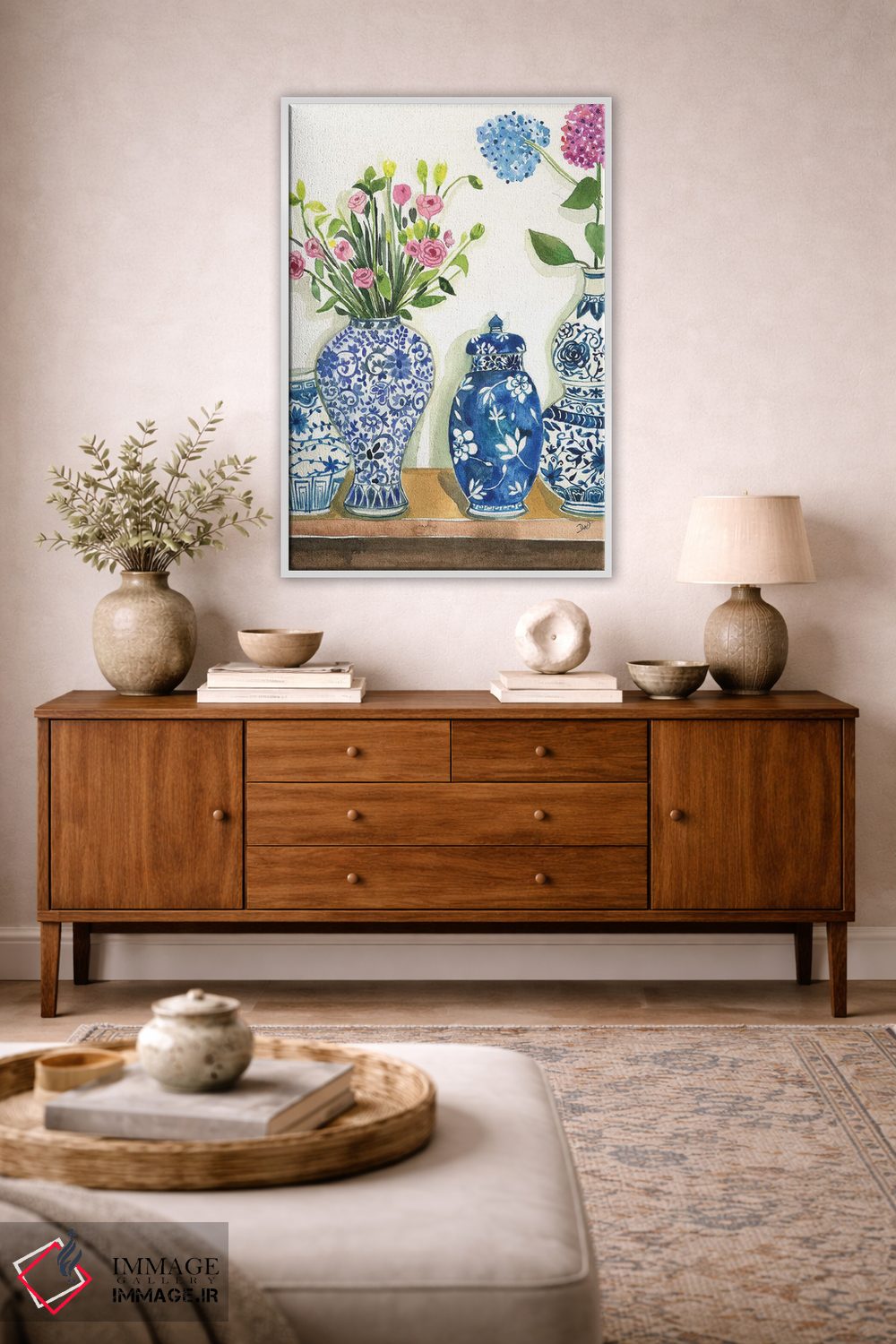 اگر دوست دارید دیوار روشنتر و آرامتر دیده شود، «مجموعه ظروف زنجبیلی» اثرِ «رونگرونگ دووُ» حس فصل را آرام وارد فضا میکند، برای خانههایی با نور طبیعی گزینهٔ مناسبیست. فضا را شلوغ نمیکند؛ فقط لطیفترش میکند.