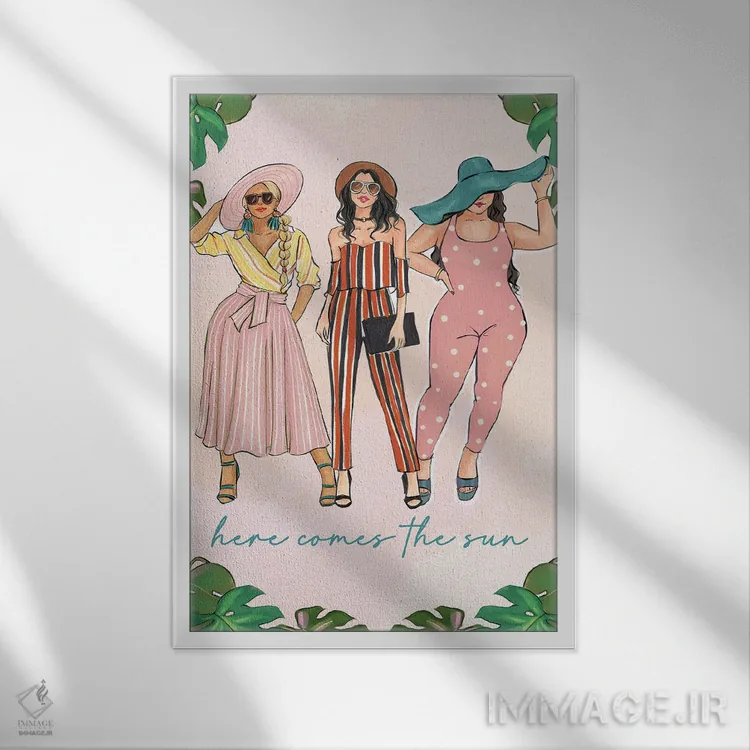 براساس پالت ترکیبی اثر، قاب تیک گرم (چوبی) پیشنهاد اول است و مشکی مات (فریم متوسط) مکمل.