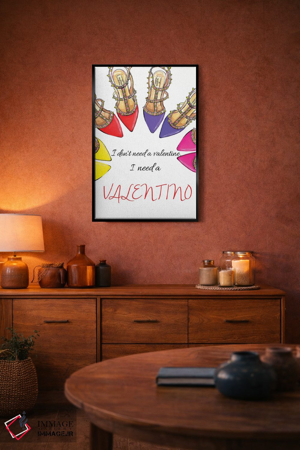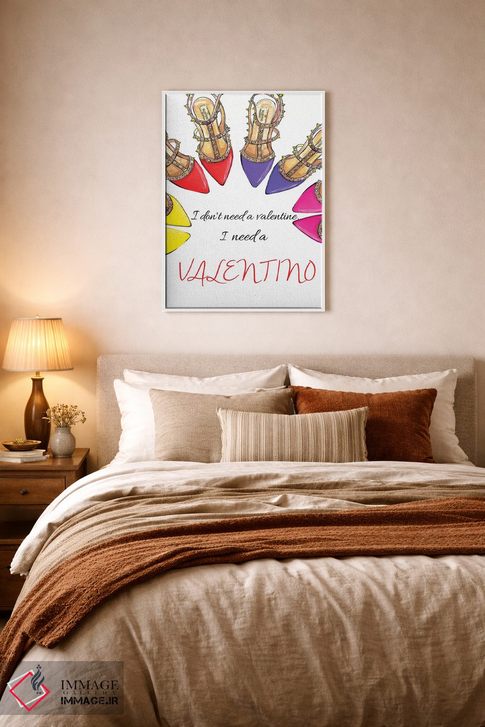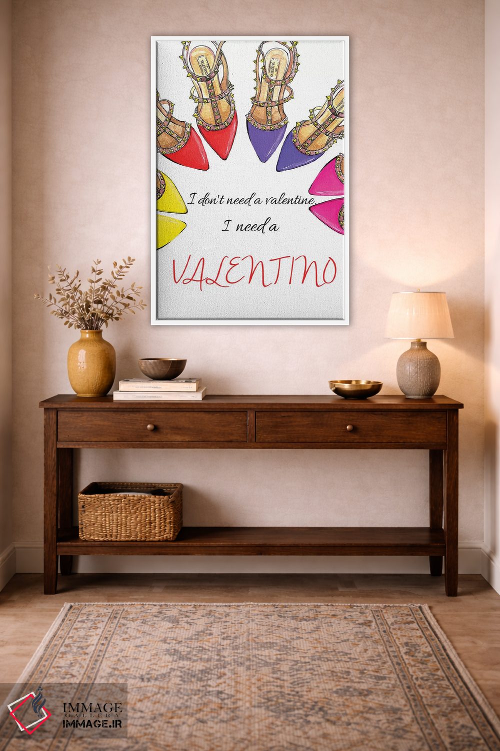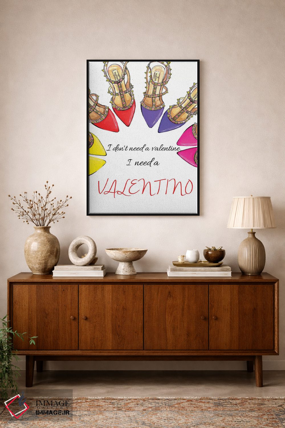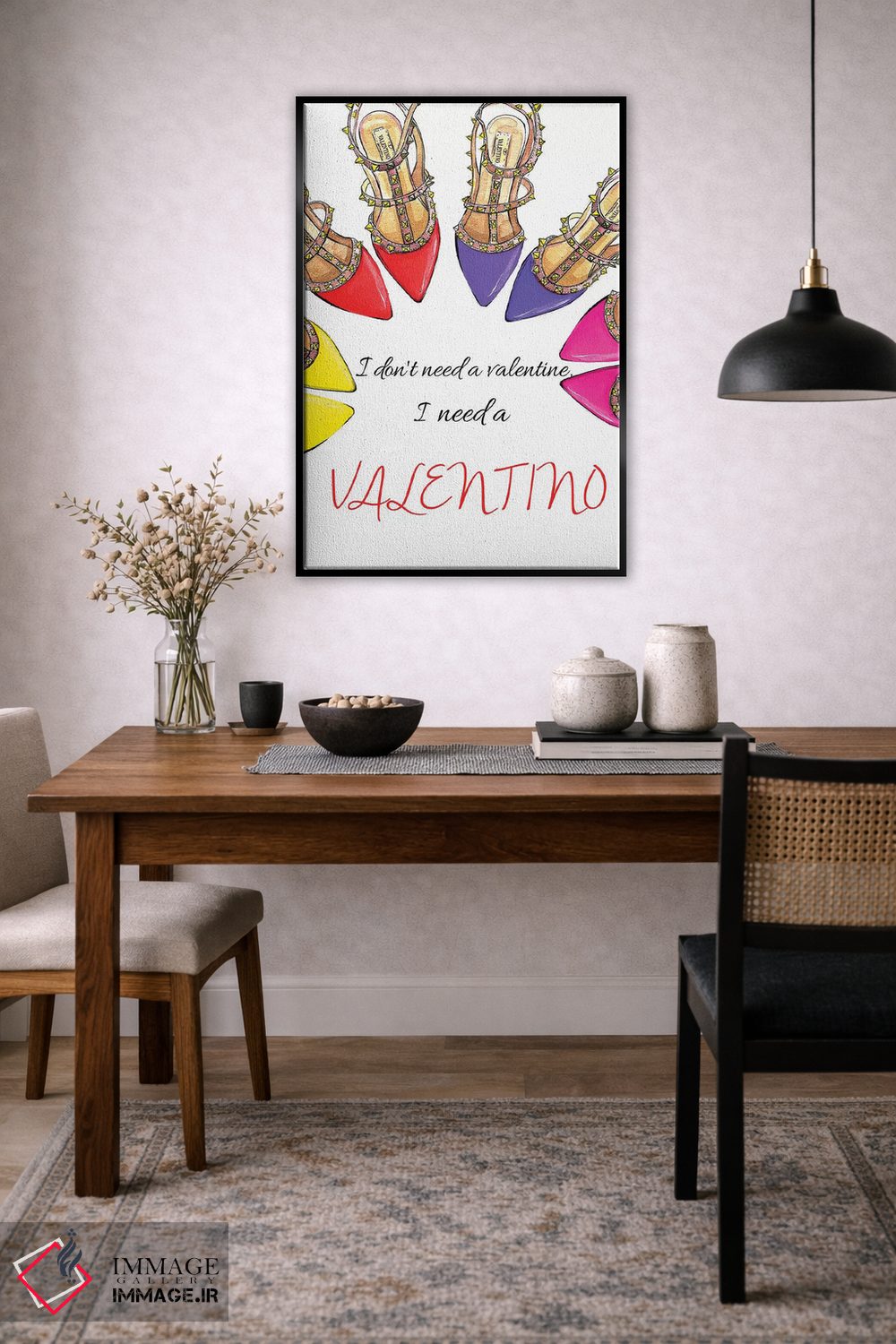 «من یک والنتینو لازم دارم» اثرِ «رونگرونگ دووُ» یک تکهی هنریِ خوشاستایل برای دیوارهای ساده است.