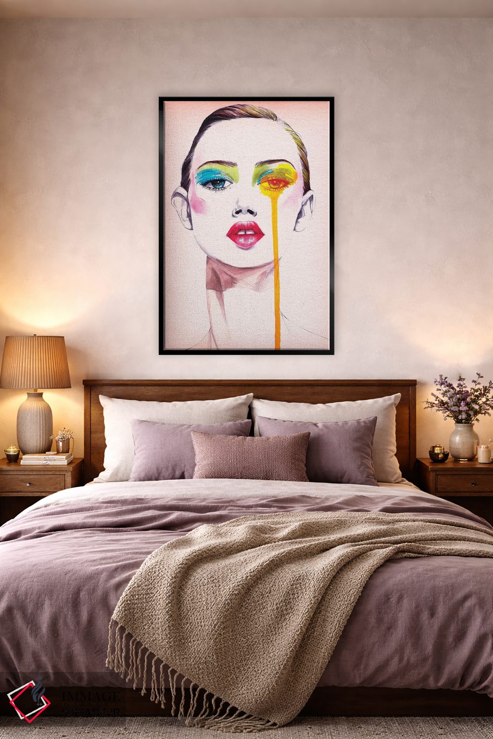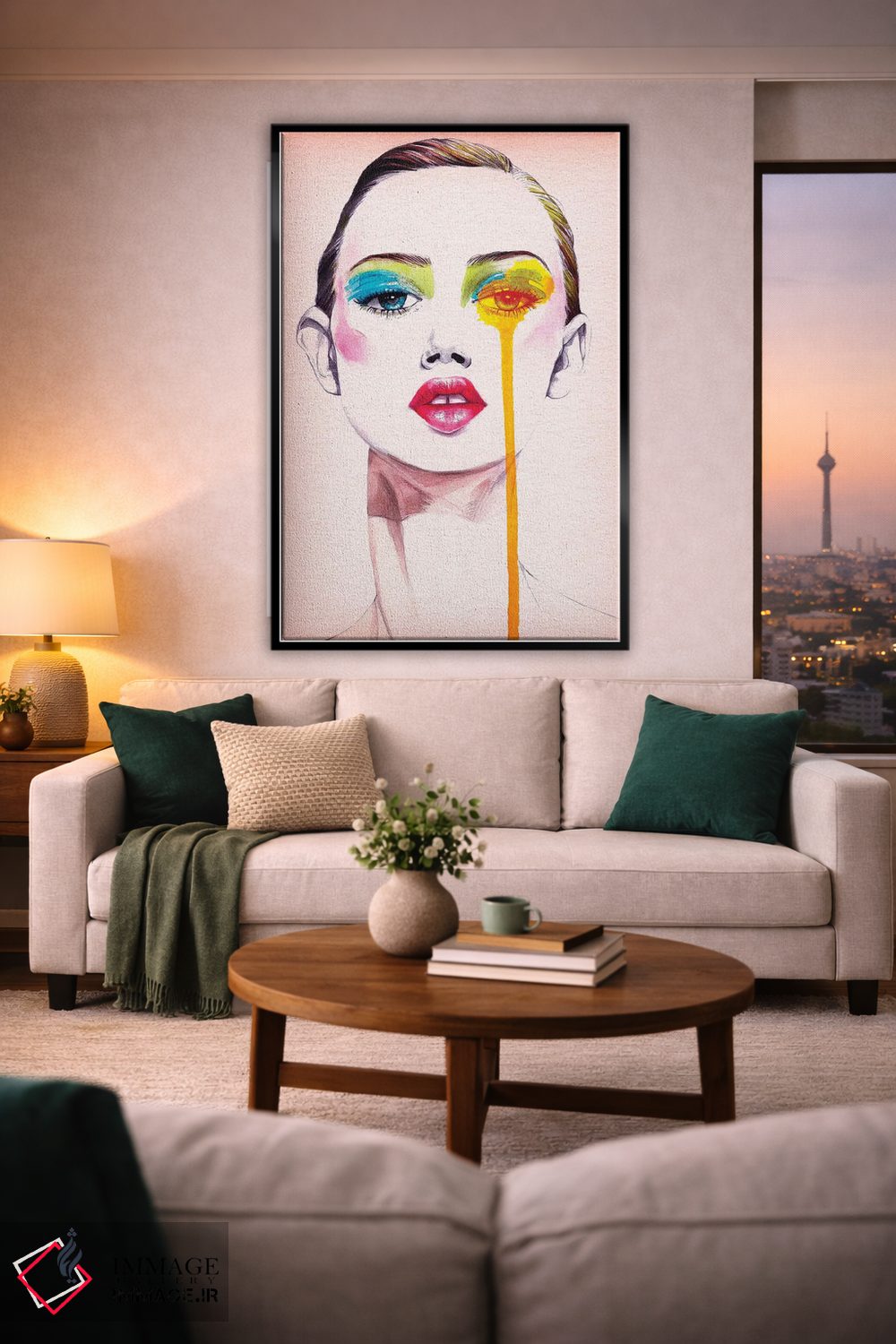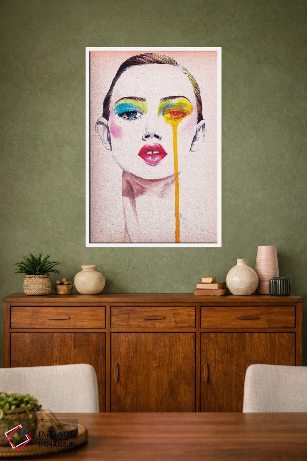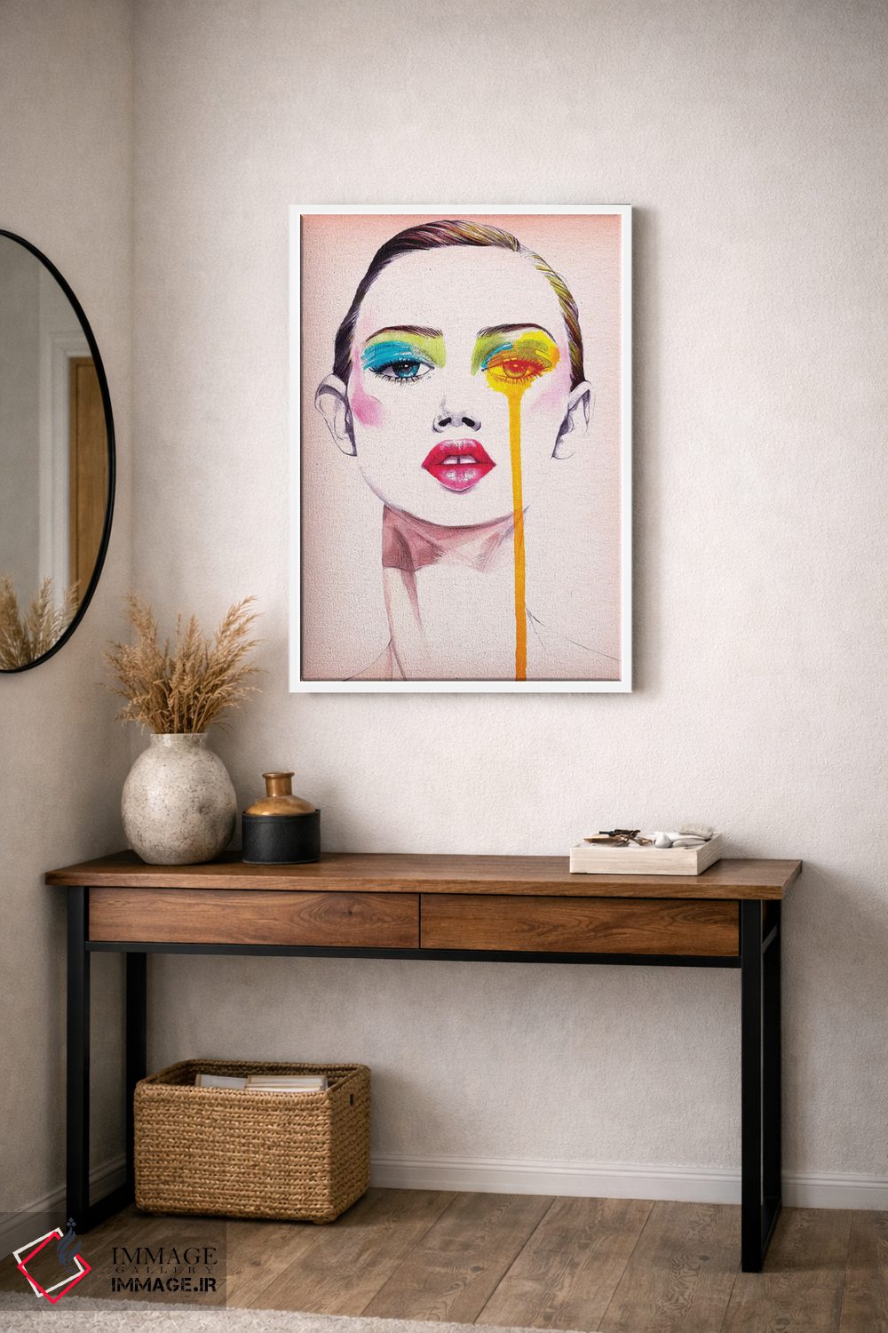 براساس پالت گرم اثر، قاب تیک گرم (چوبی) پیشنهاد اول است و مشکی مات (فریم متوسط) مکمل. برای سفارشهای پروژهای با ابعاد و قابهای اختصاصی با ایماژ در تماس باشید.