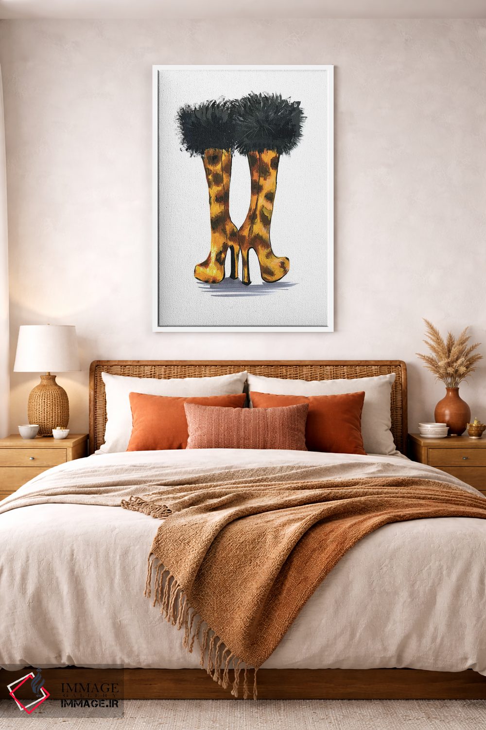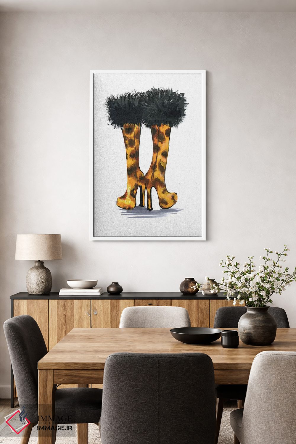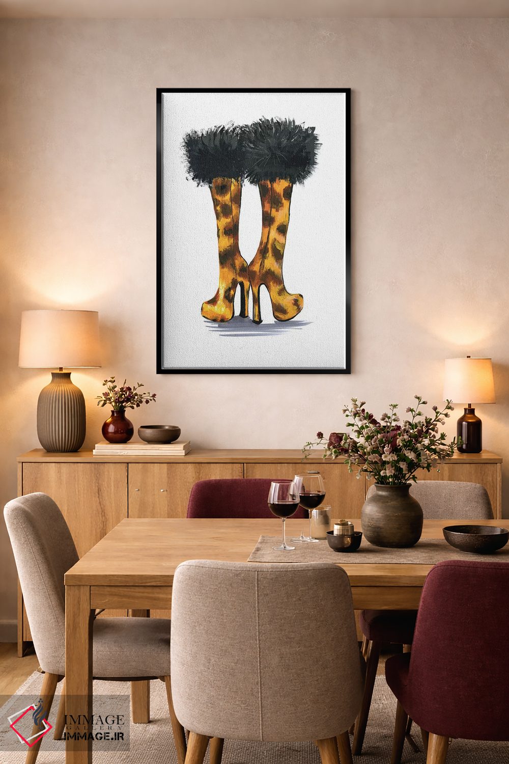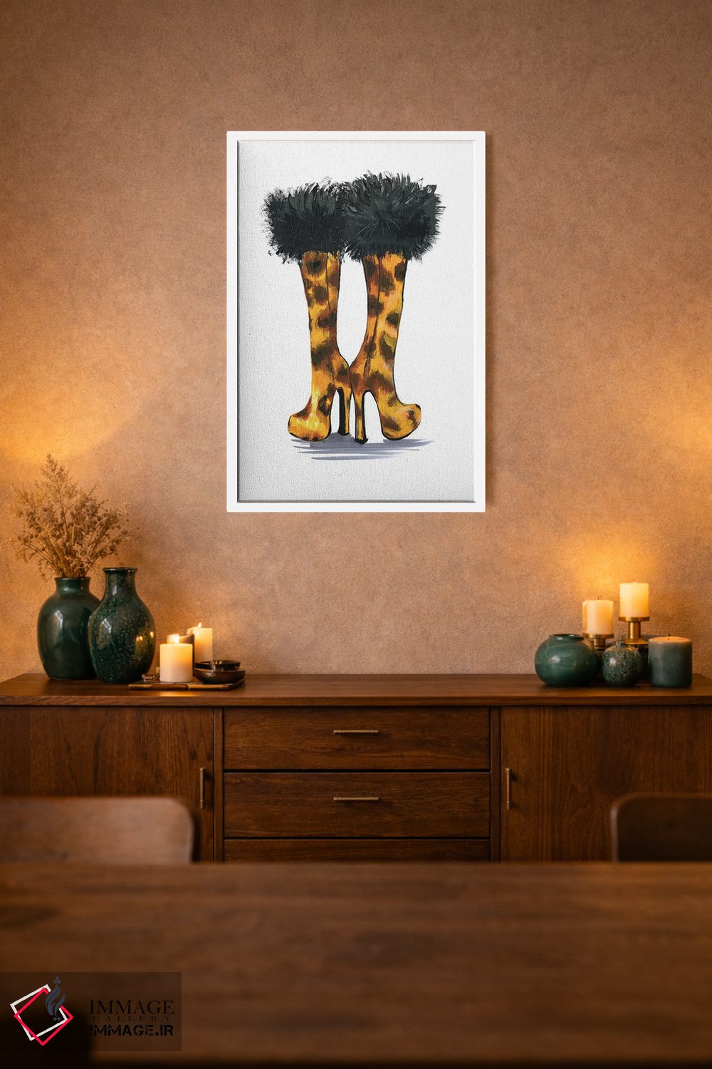براساس پالت گرم اثر، قاب تیک گرم (چوبی) پیشنهاد اول است و مشکی مات (فریم متوسط) مکمل. برای سفارشهای پروژهای با ابعاد و قابهای اختصاصی با ایماژ در تماس باشید.