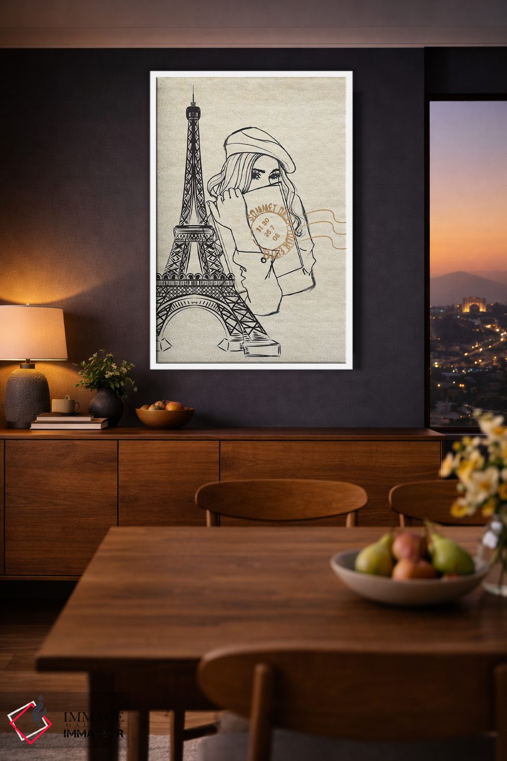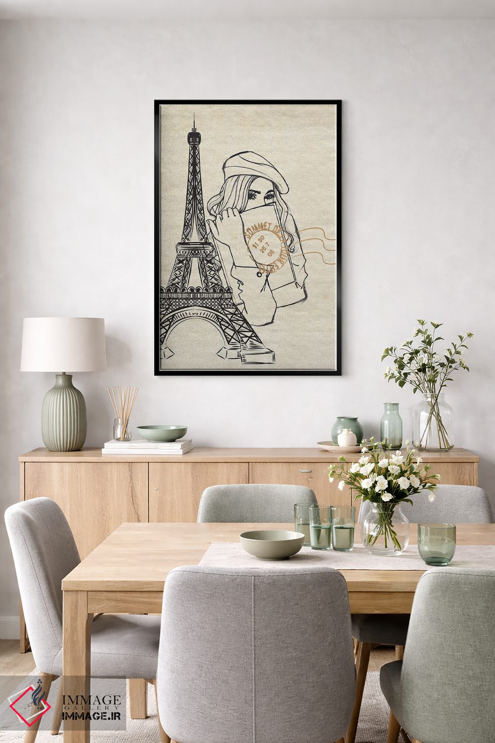 برای سلیقههایی که به جزئیات احترام میگذارند، «دختر در پاریس» اثرِ «رونگرونگ دووُ» سلیقهٔ صاحبخانه را بیاغراق نشان میدهد؛ برای اتاق خوابهای آرام و روشن پیشنهاد میشود. این تابلو میتواند شروعِ خوبی برای یک دیوار گالری باشد.