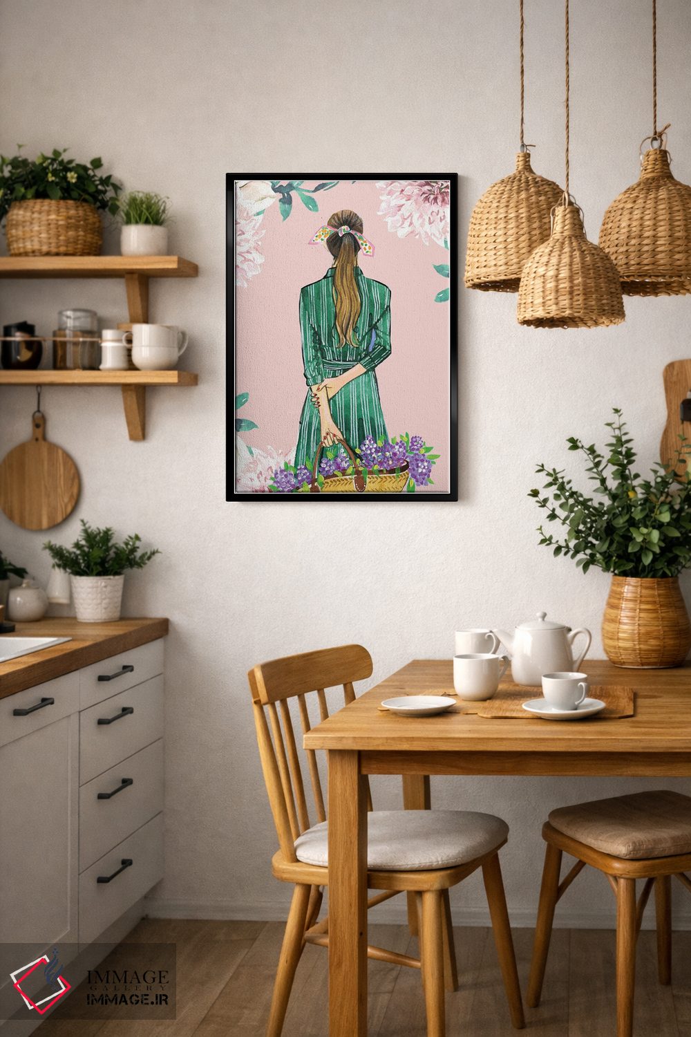 براساس پالت ترکیبی اثر، قاب تیک گرم (چوبی) پیشنهاد اول است و مشکی مات (فریم متوسط) مکمل.