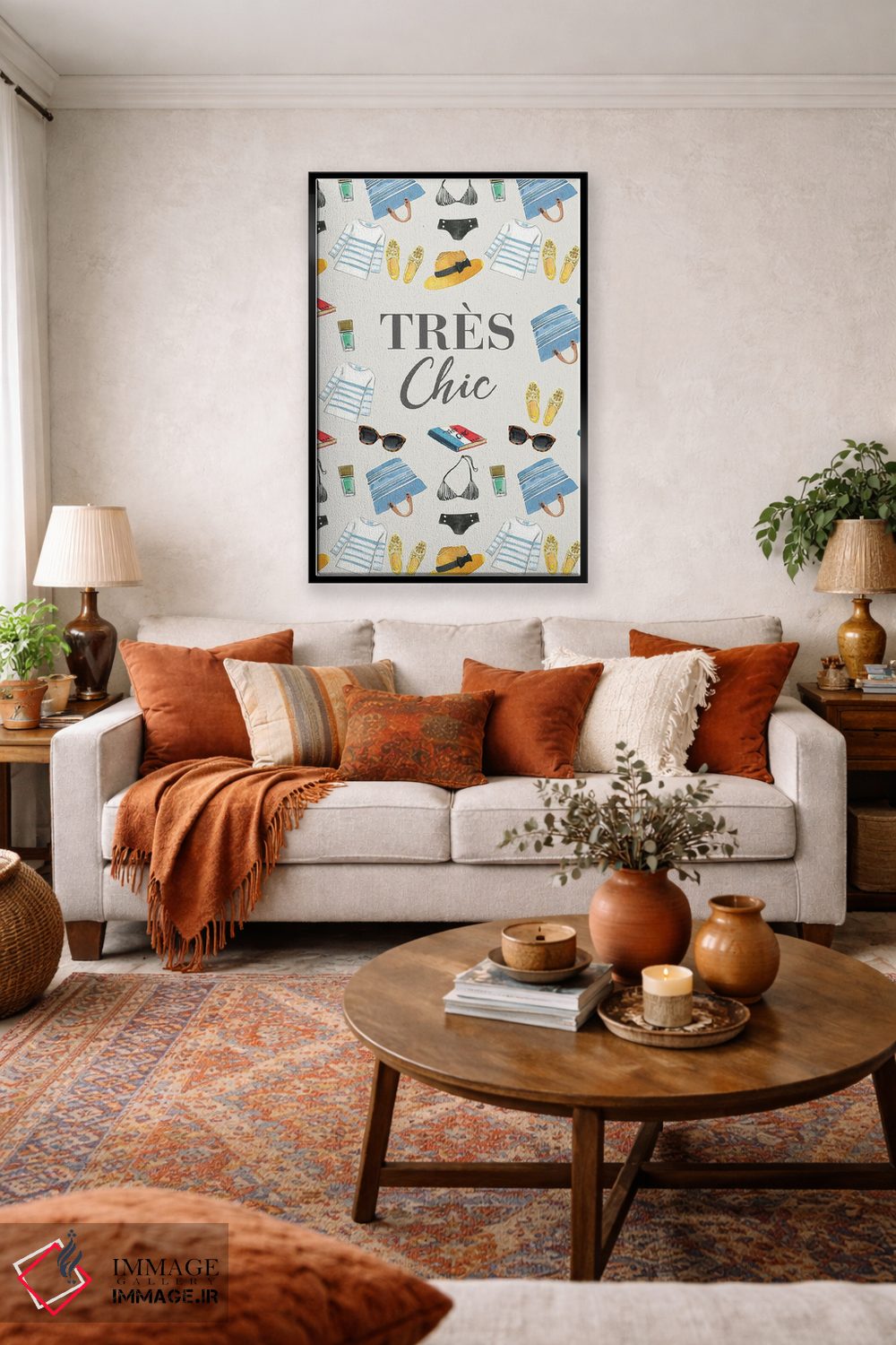 براساس پالت ترکیبی اثر، قاب تیک گرم (چوبی) پیشنهاد اول است و مشکی مات (فریم متوسط) مکمل. برای سفارشهای پروژهای با ابعاد و قابهای اختصاصی با ایماژ در تماس باشید.