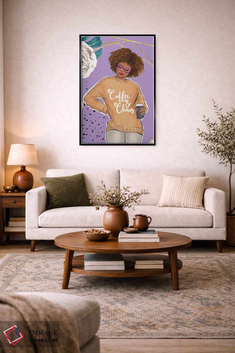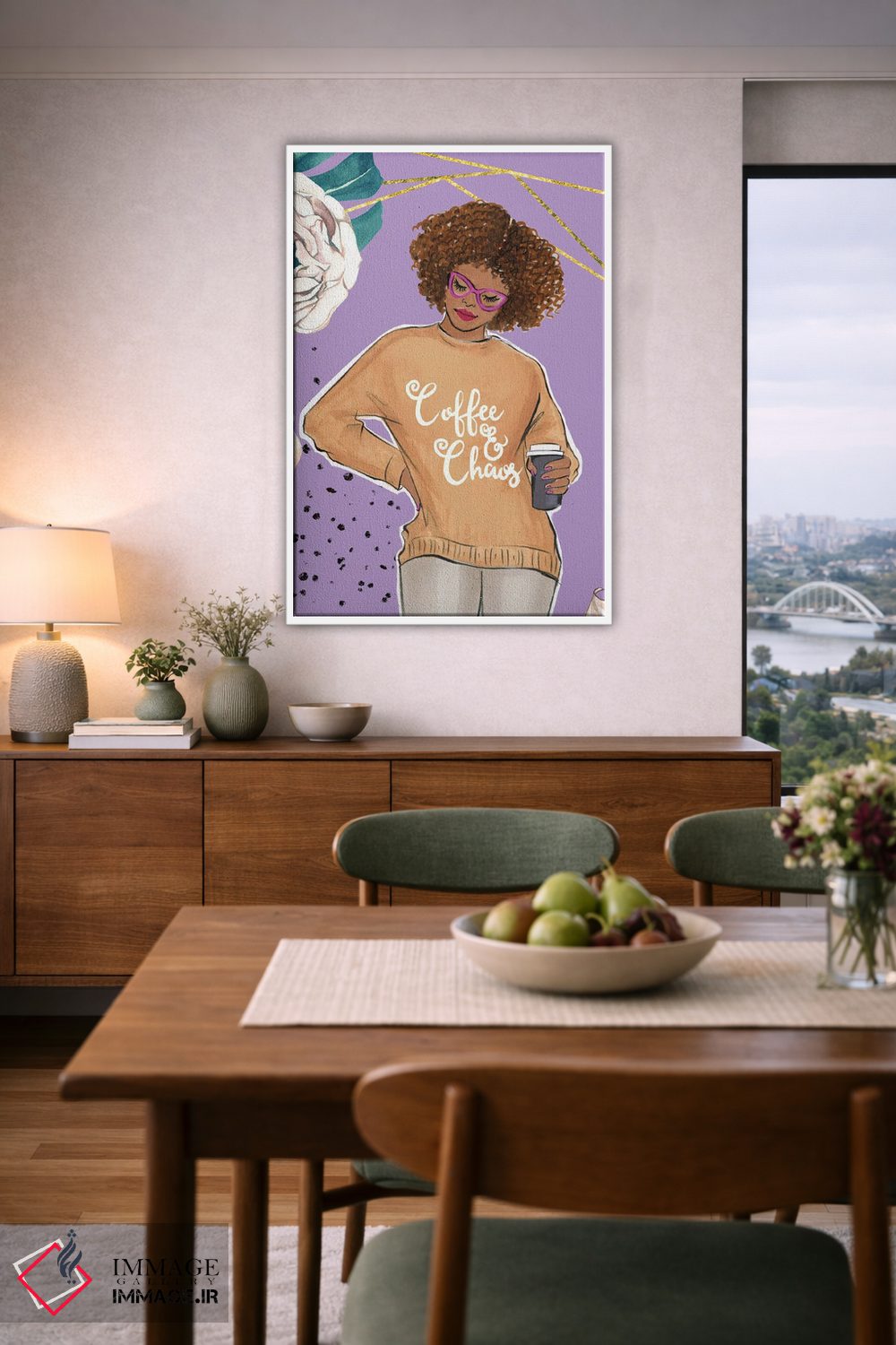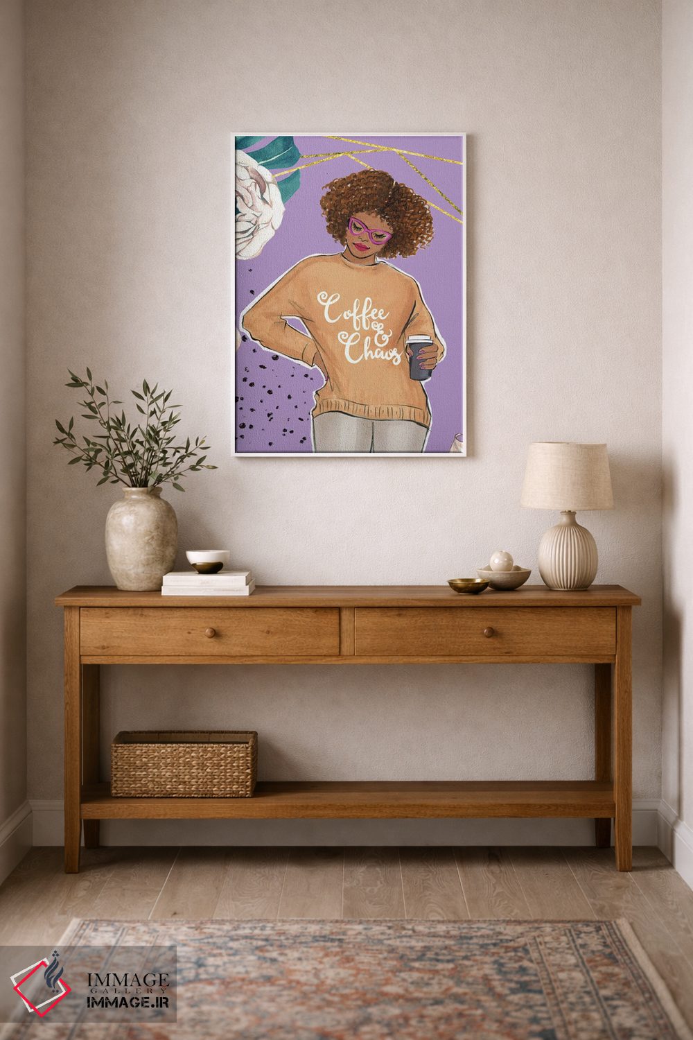 طراحی بوم گالری ایماژ بهگونهای است که اثر روی دیوار «پرداختشده» و حرفهای دیده شود—نه پرزرقوبرقِ بیپایه؛ بلکه دقیق و خوشپرداخت. بافت ظریف کنواس کمک میکند حس اثر هنری را در نگاه نزدیک نگه میدارد و همین «پرداخت» تفاوت را میسازد. با ارائهی آماده نصب، تجربهی نصب را ساده و بیدردسر میکند. این کیفیت برای چیدمانهای دقیقتر و پروژههای حرفهای خودش را بهتر نشان میدهد؛ و اگر بخواهید، میتوان چیدمان را برای گالریوال هم پیشنهاد داد. اگر یک اکسنت رنگی کوچک در اکسسوریها تکرار شود، هماهنگی محیط کاملتر میشود.
