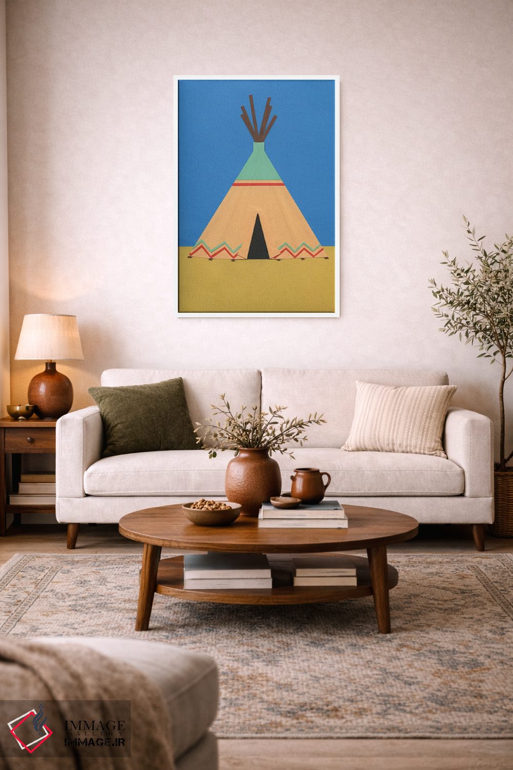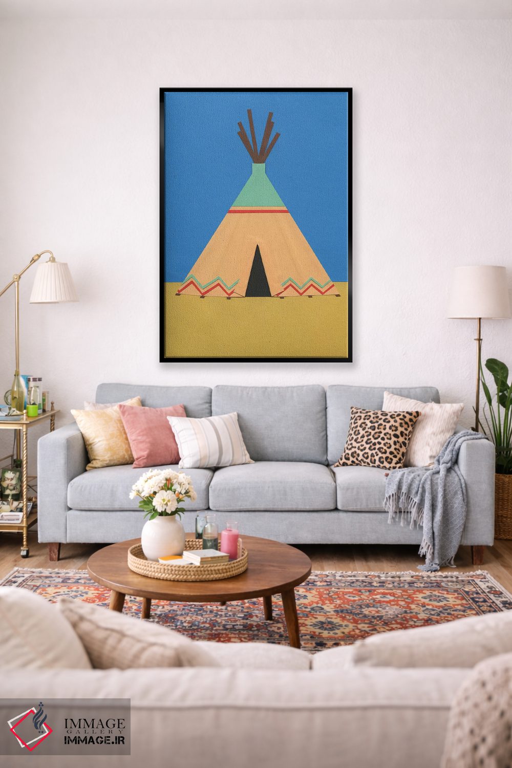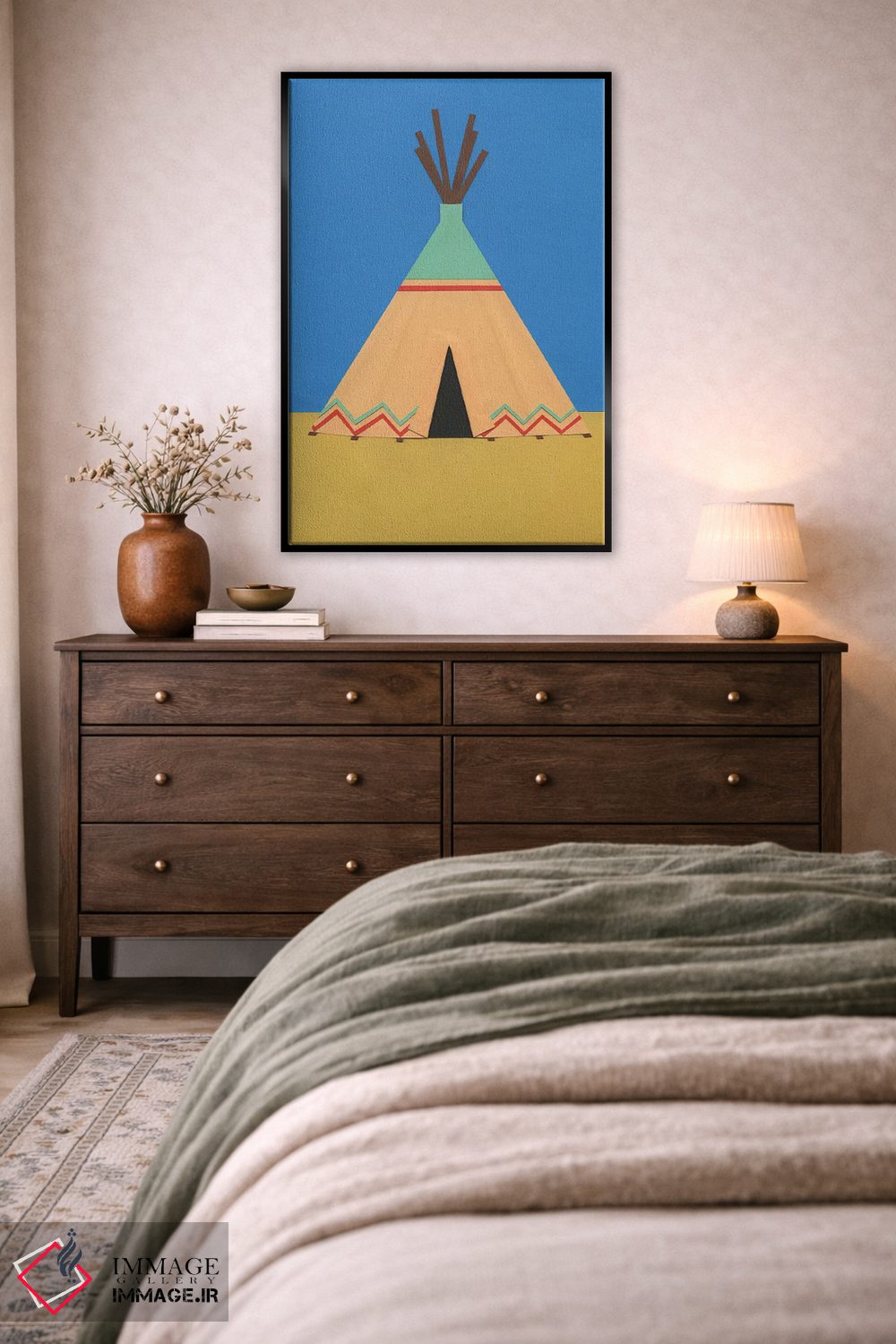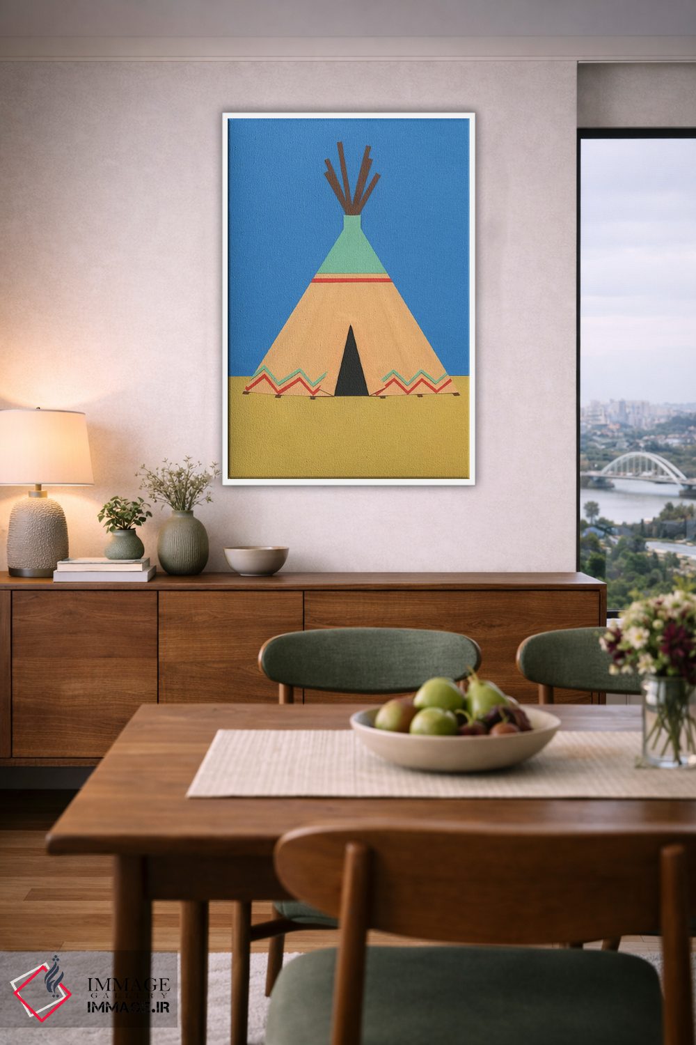 «تیپی سبز قرمز» اثرِ «روزی فایست» با حالوهوای دکور معاصر و موضوعِ این اثر، برای نشیمنهای امروزی و چیدمانهای ساده انتخابی دقیق است.