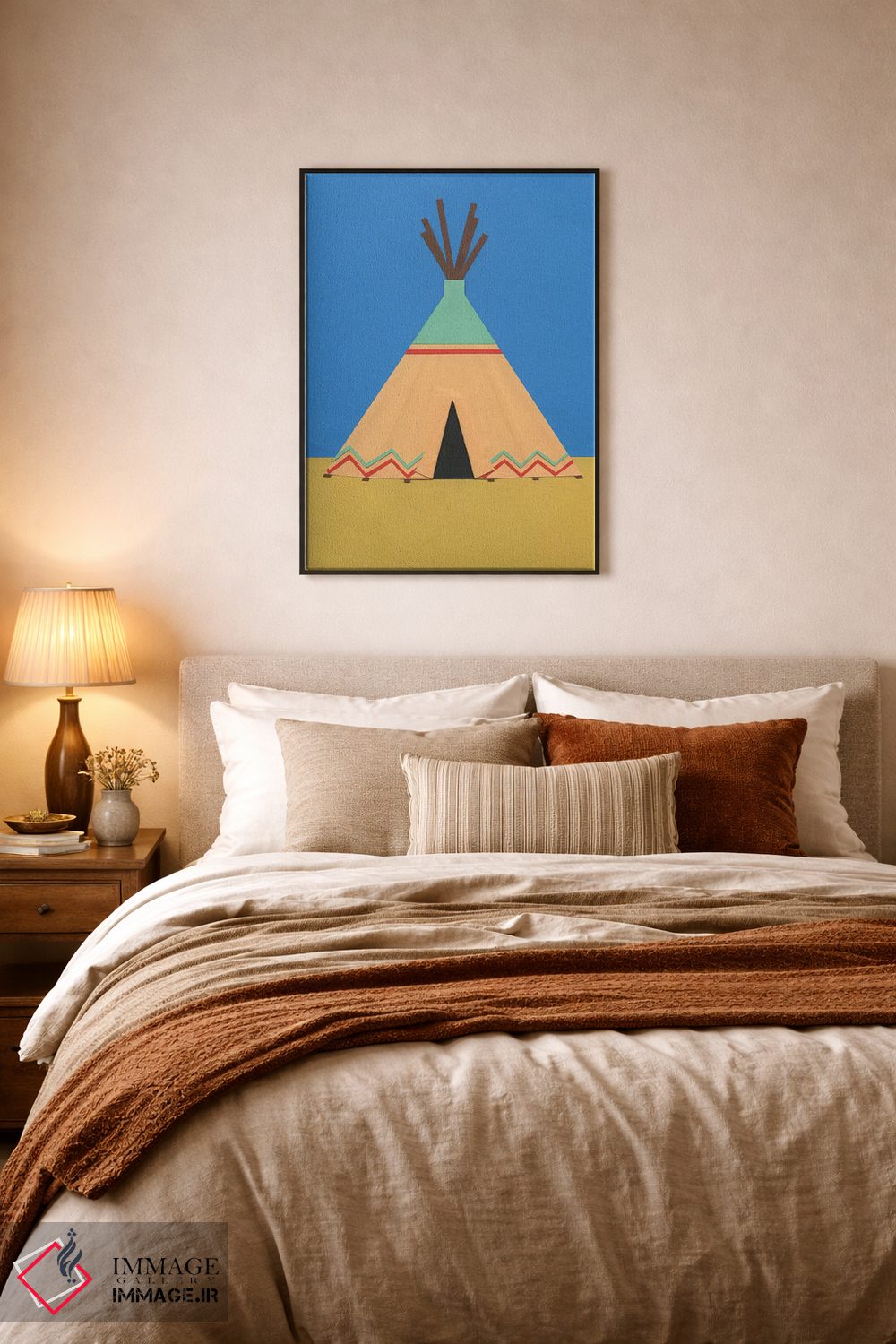 براساس پالت ترکیبی اثر، قاب تیک گرم (چوبی) پیشنهاد اول است و مشکی مات (فریم متوسط) مکمل. برای سفارشهای پروژهای با ابعاد و قابهای اختصاصی با ایماژ در تماس باشید.