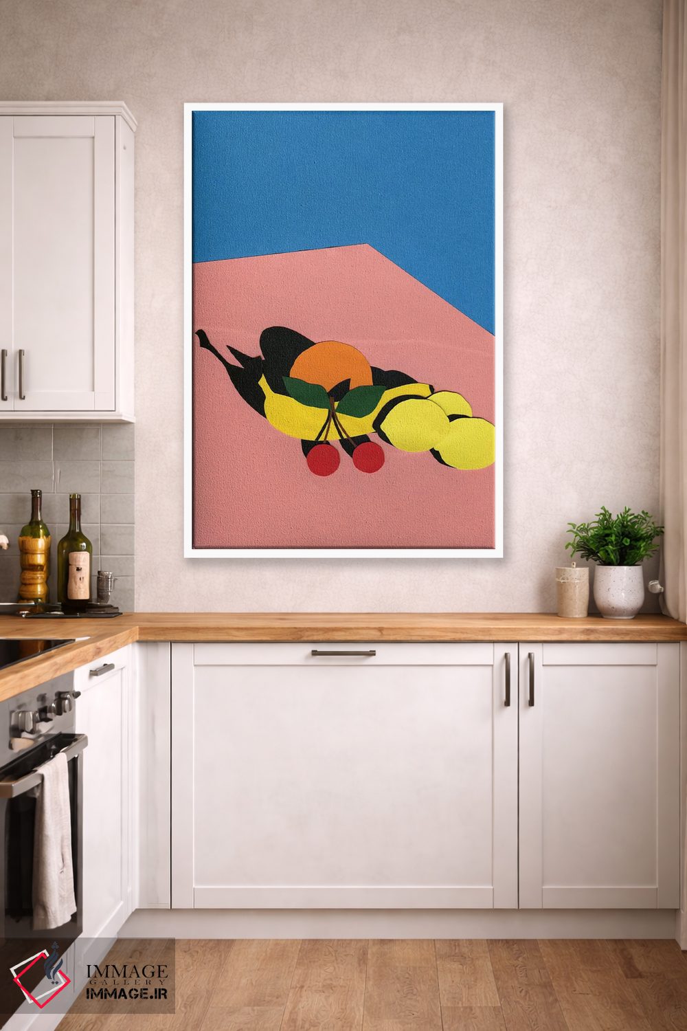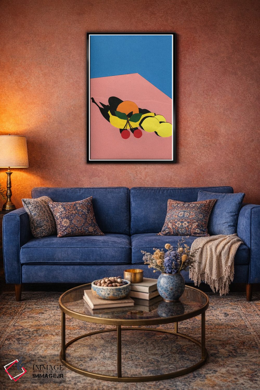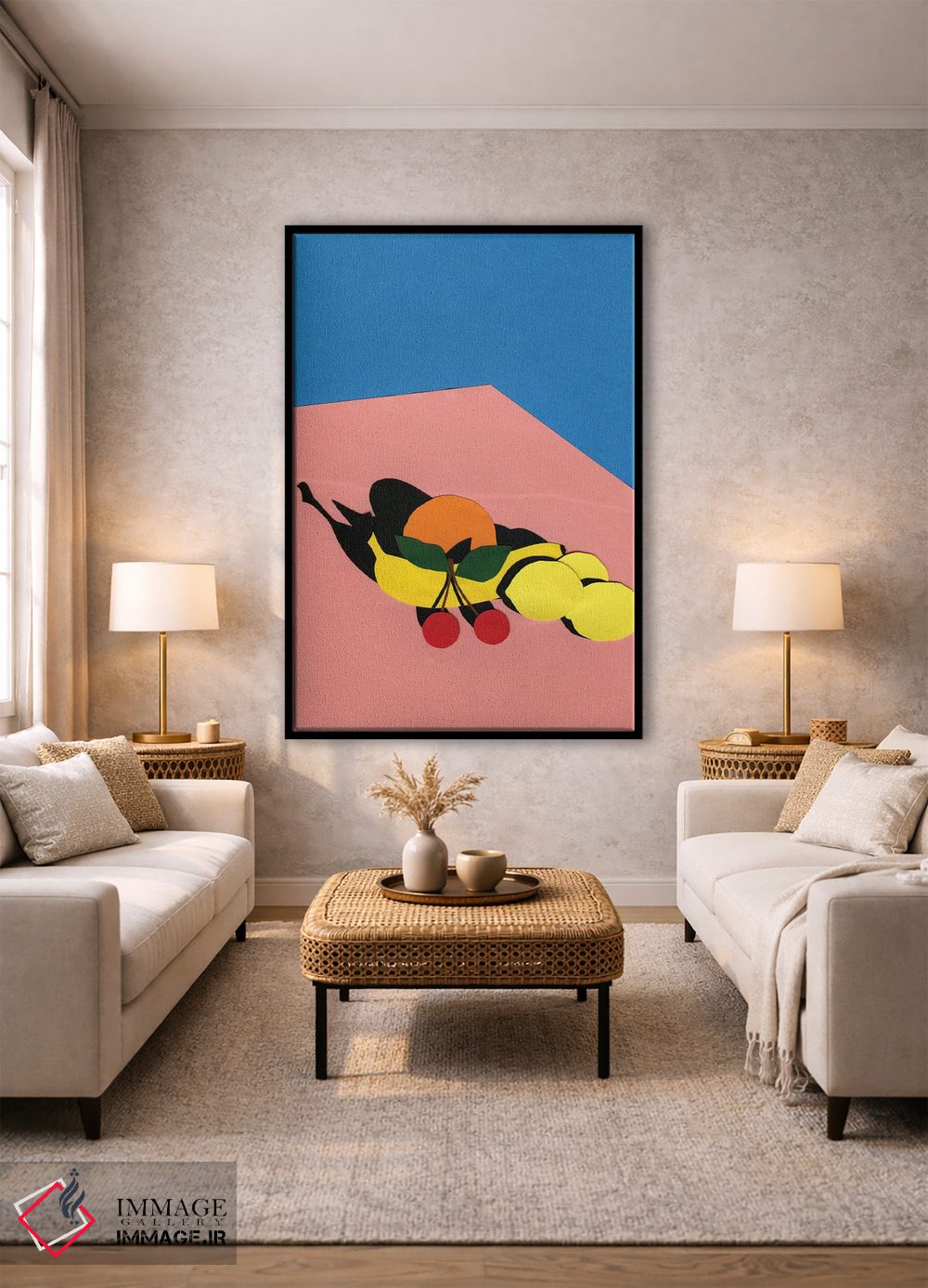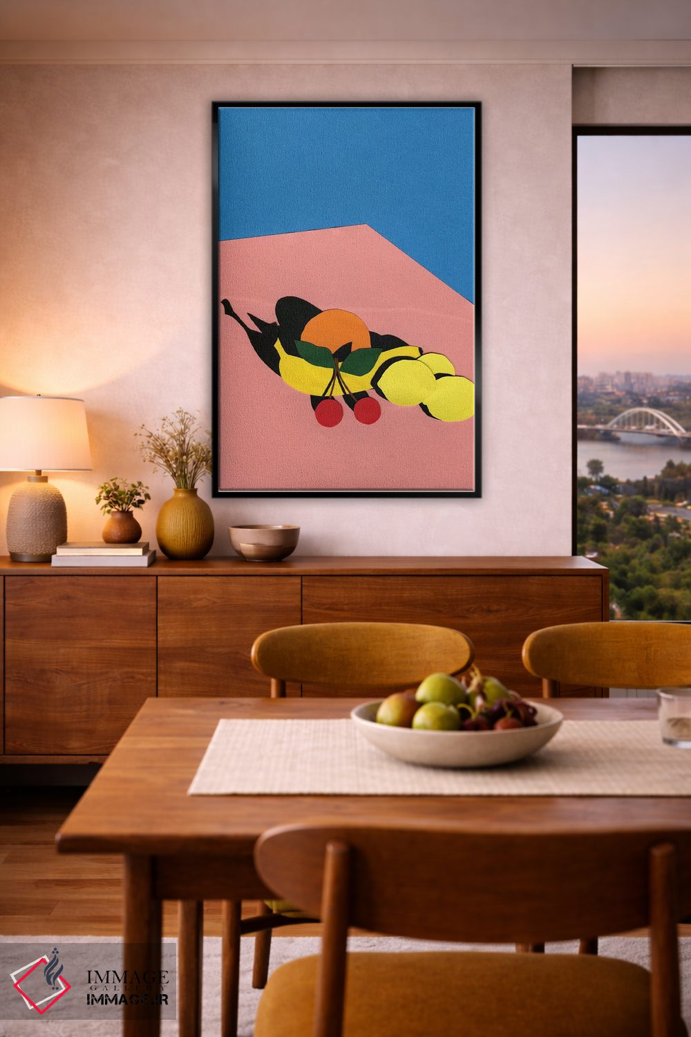 براساس پالت ترکیبی اثر، قاب تیک گرم (چوبی) پیشنهاد اول است و مشکی مات (فریم متوسط) مکمل. برای سفارشهای پروژهای با ابعاد و قابهای اختصاصی با ایماژ در تماس باشید.