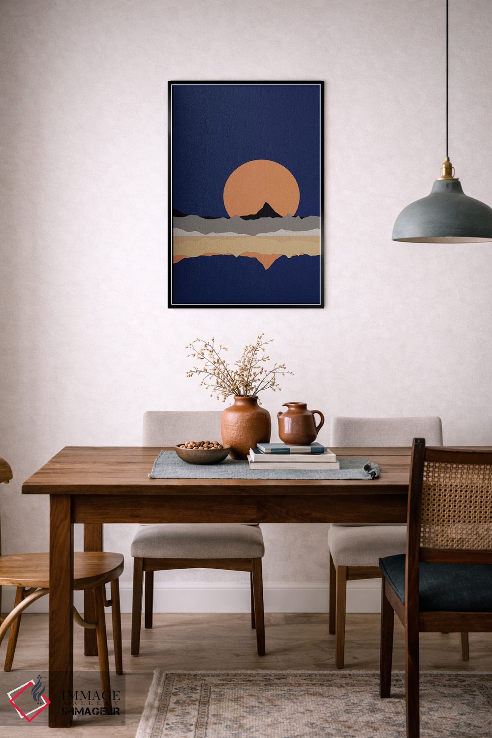 براساس پالت ترکیبی اثر، قاب تیک گرم (چوبی) پیشنهاد اول است و مشکی مات (فریم متوسط) مکمل. برای سفارشهای پروژهای با ابعاد و قابهای اختصاصی با ایماژ در تماس باشید.