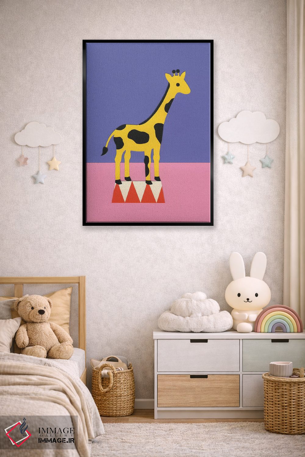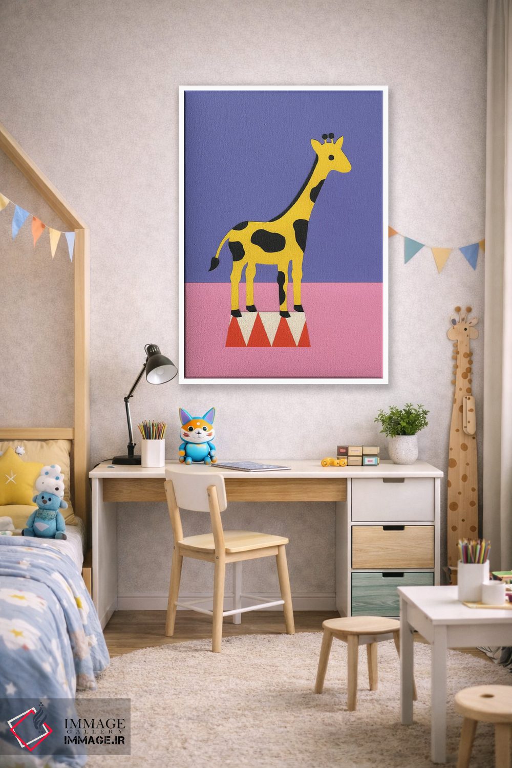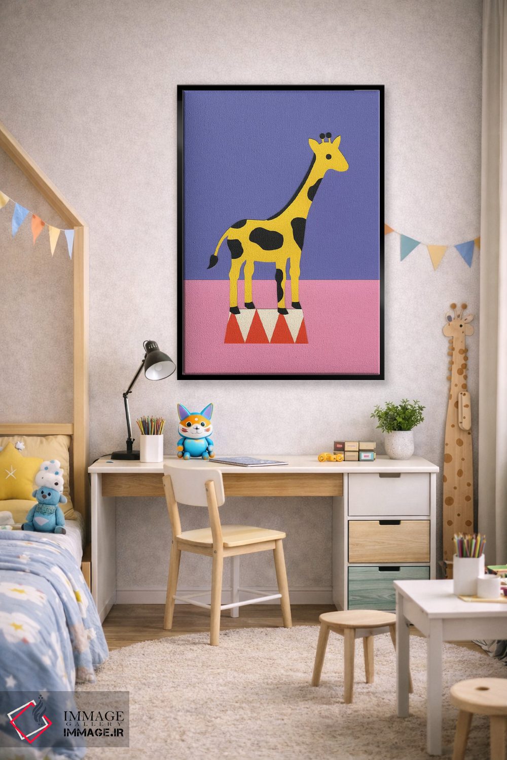 «زرافه آلوپی» اثرِ «روزی فایست» میتواند گرما و شخصیت به فضا اضافه کند؛ برای اتاق بازی یا گوشهٔ مطالعه پیشنهاد میشود. هم فضا را گرم میکند، هم شلوغش نمیکند.