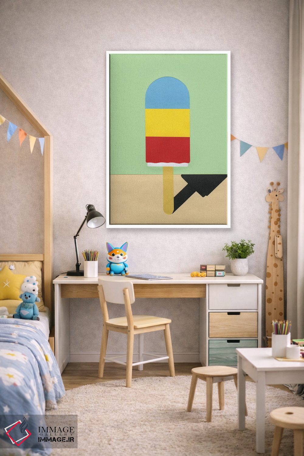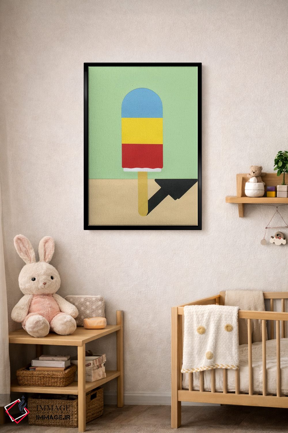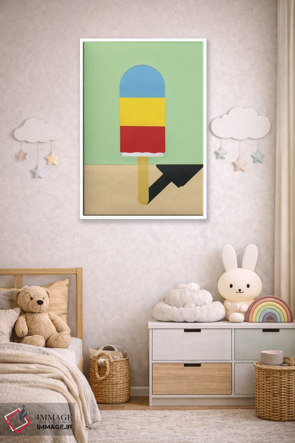 این تابلو با عنوان «هنری یخی» اثرِ «روزی فایست»، حسِ گرم و صمیمی به فضا میدهد.