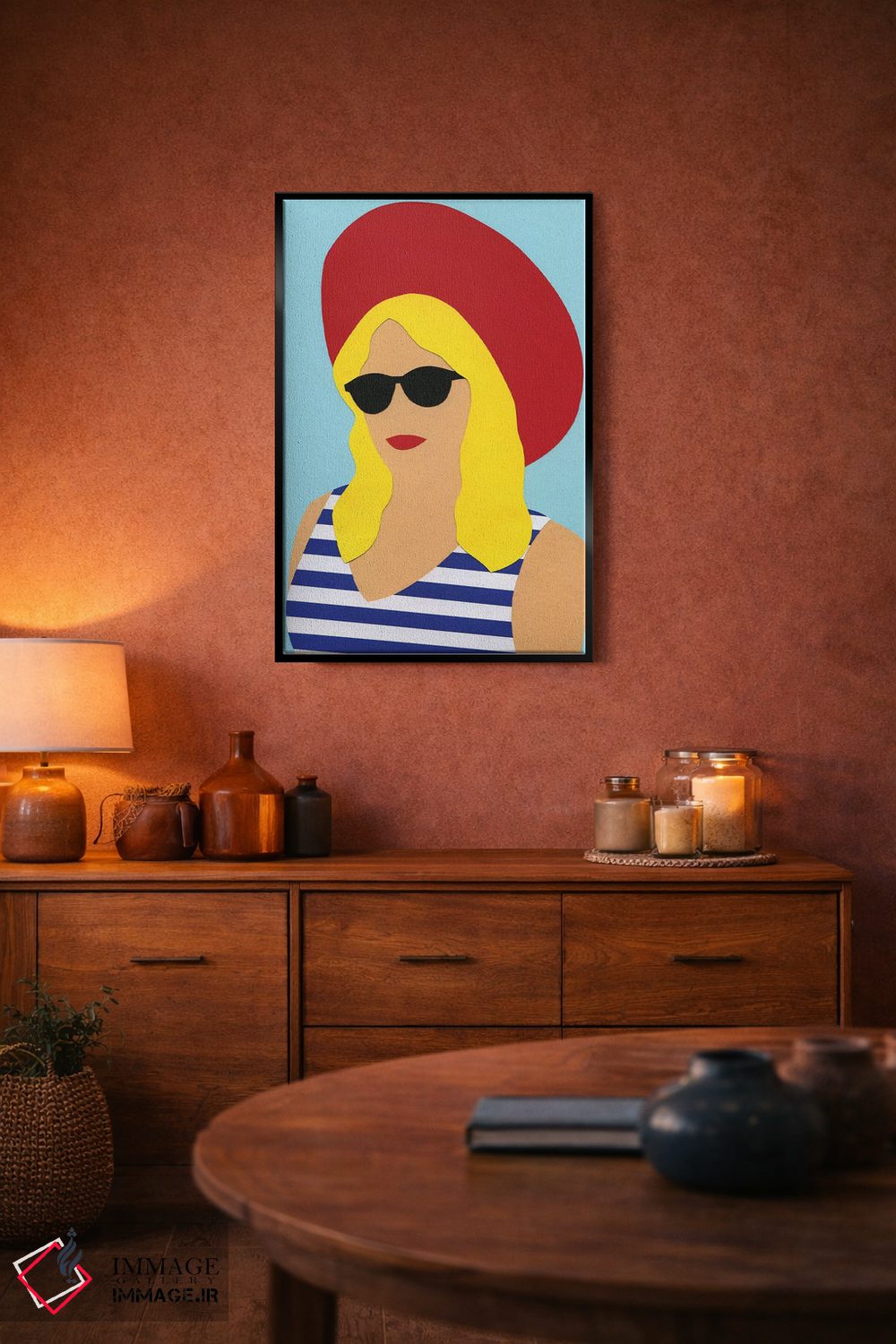 براساس پالت ترکیبی اثر، قاب تیک گرم (چوبی) پیشنهاد اول است و مشکی مات (فریم متوسط) مکمل. برای سفارشهای پروژهای با ابعاد و قابهای اختصاصی با ایماژ در تماس باشید.