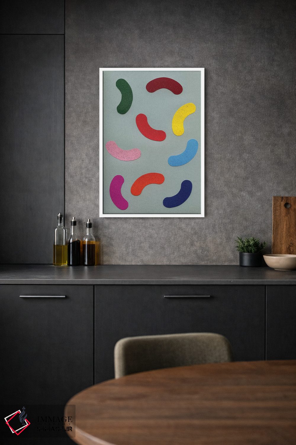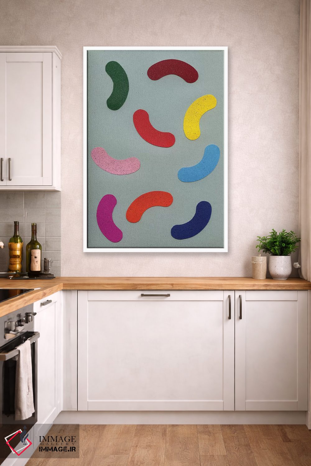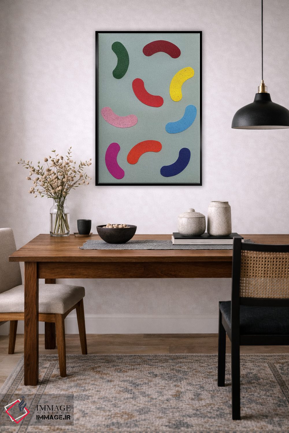 تابلو دکوراتیوِ این دسته با حسی هماهنگ؛ مناسب برای کافهاستایل خانگی و دیوار کنار میز ناهارخوری اثرِ «روزی فایست».