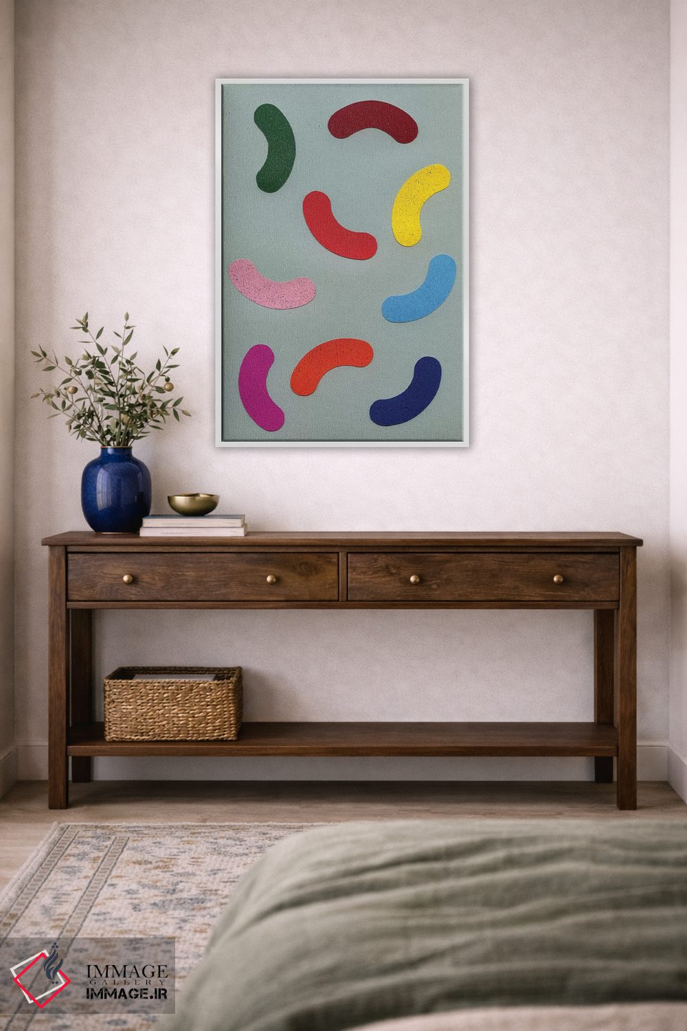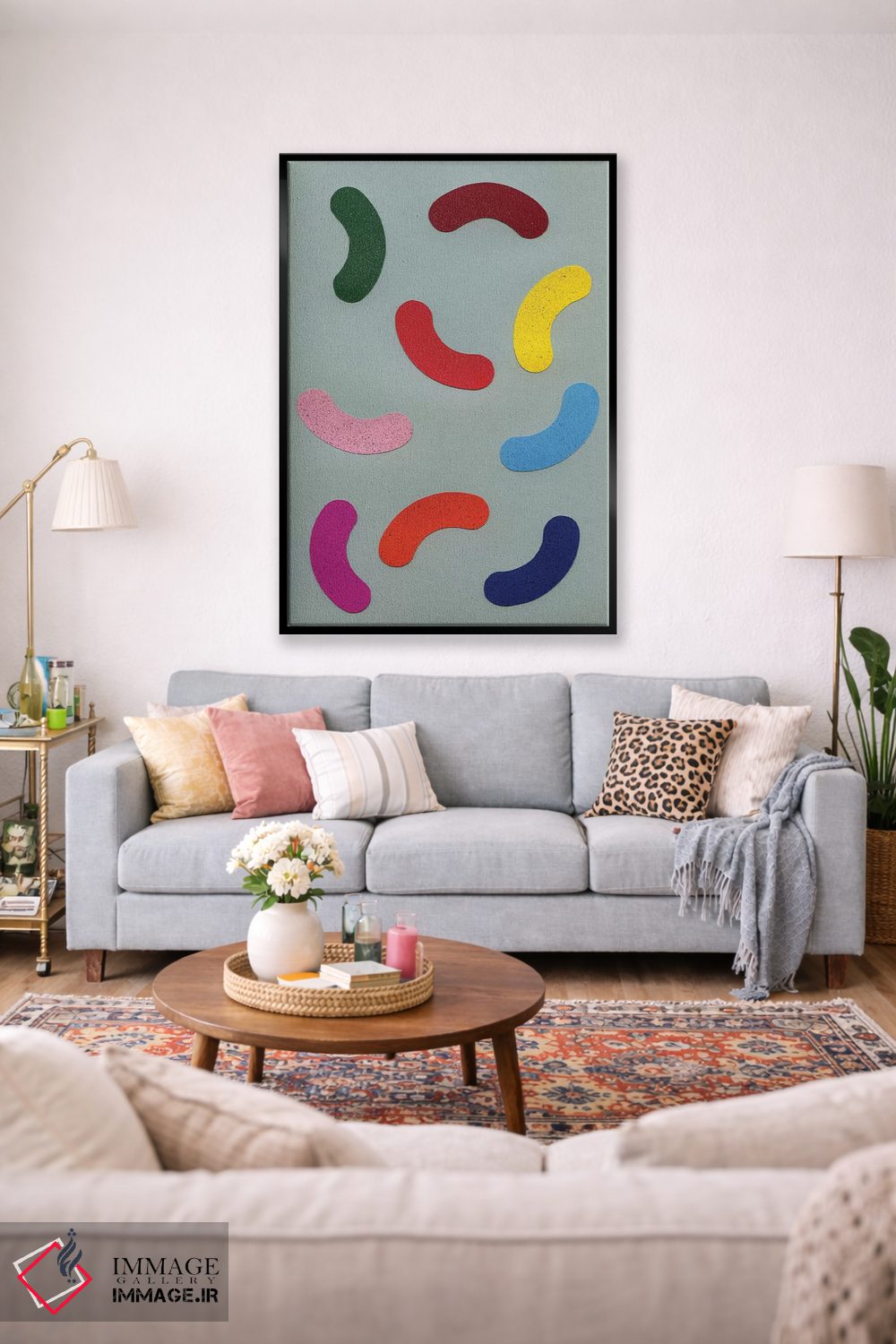 براساس پالت ترکیبی اثر، قاب تیک گرم (چوبی) پیشنهاد اول است و مشکی مات (فریم متوسط) مکمل. برای سفارشهای پروژهای با ابعاد و قابهای اختصاصی با ایماژ در تماس باشید.