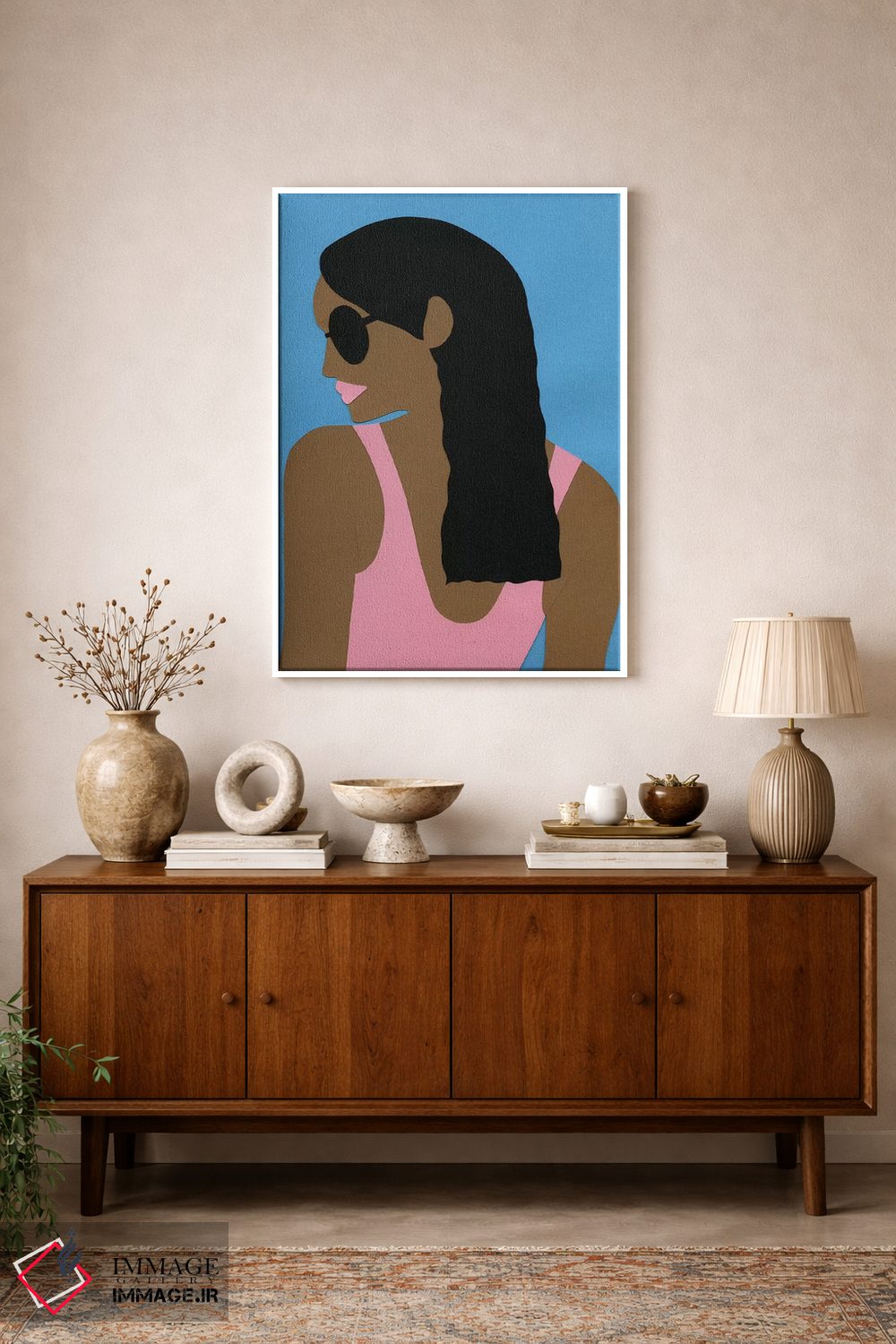 براساس پالت ترکیبی اثر، قاب تیک گرم (چوبی) پیشنهاد اول است و مشکی مات (فریم متوسط) مکمل. برای سفارشهای پروژهای با ابعاد و قابهای اختصاصی با ایماژ در تماس باشید.