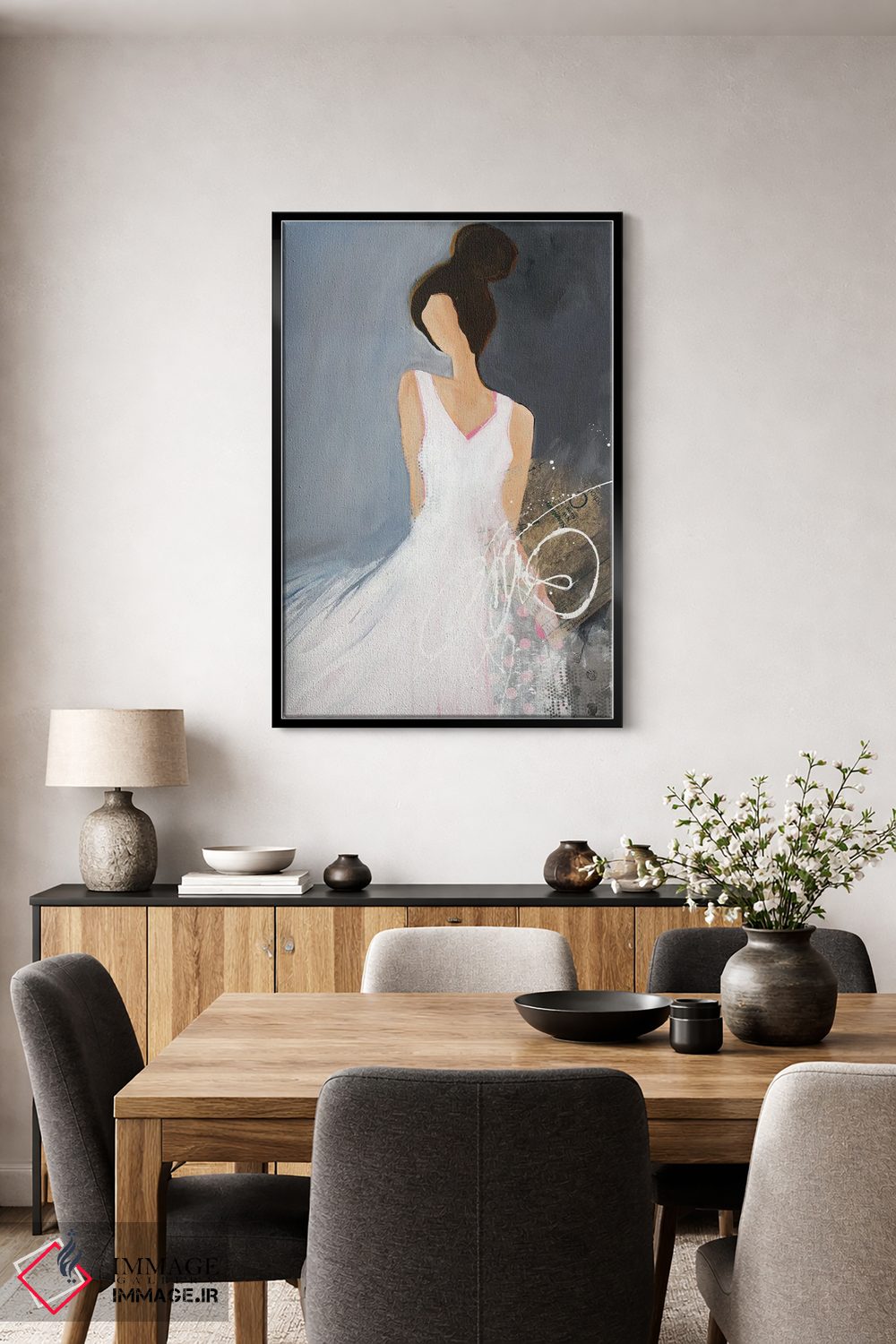 ساختار بوم گالری ایماژ طوری است که اثر روی دیوار «پرداختشده» و حرفهای دیده شود—نه پرزرقوبرقِ بیپایه؛ بلکه دقیق و خوشپرداخت. با بافت ظریف کنواس، حس اثر هنری را در نگاه نزدیک نگه میدارد و برای محیطهای رسمیتر هم انتخاب مطمئنی است. در ارائهی آماده نصب، برای یک ارائهی حرفهای ضروری است بدون اغراق؛ فقط دقیقتر. حاصل کار، یک تابلو خوشنشین است که هم از دور اثرگذار است و هم از نزدیک خوشخوان؛ و اگر بخواهید، میتوان چیدمان را برای گالریوال هم پیشنهاد داد. اگر یک اکسنت رنگی کوچک در اکسسوریها تکرار شود، هماهنگی فضا کاملتر میشود.