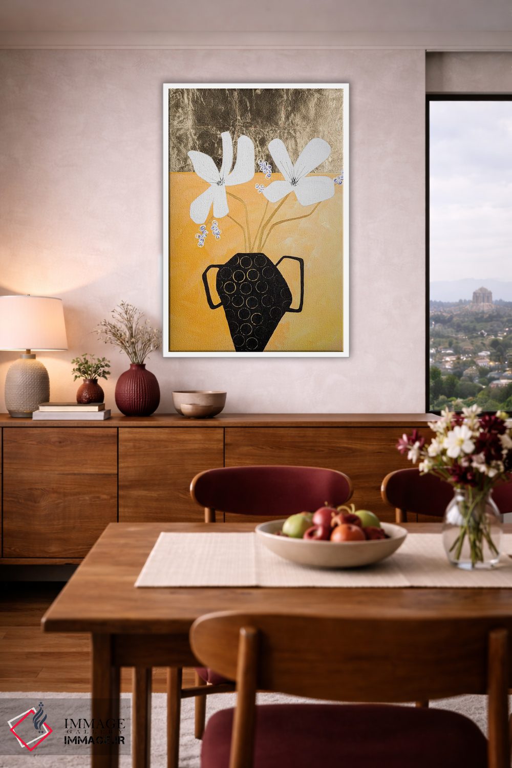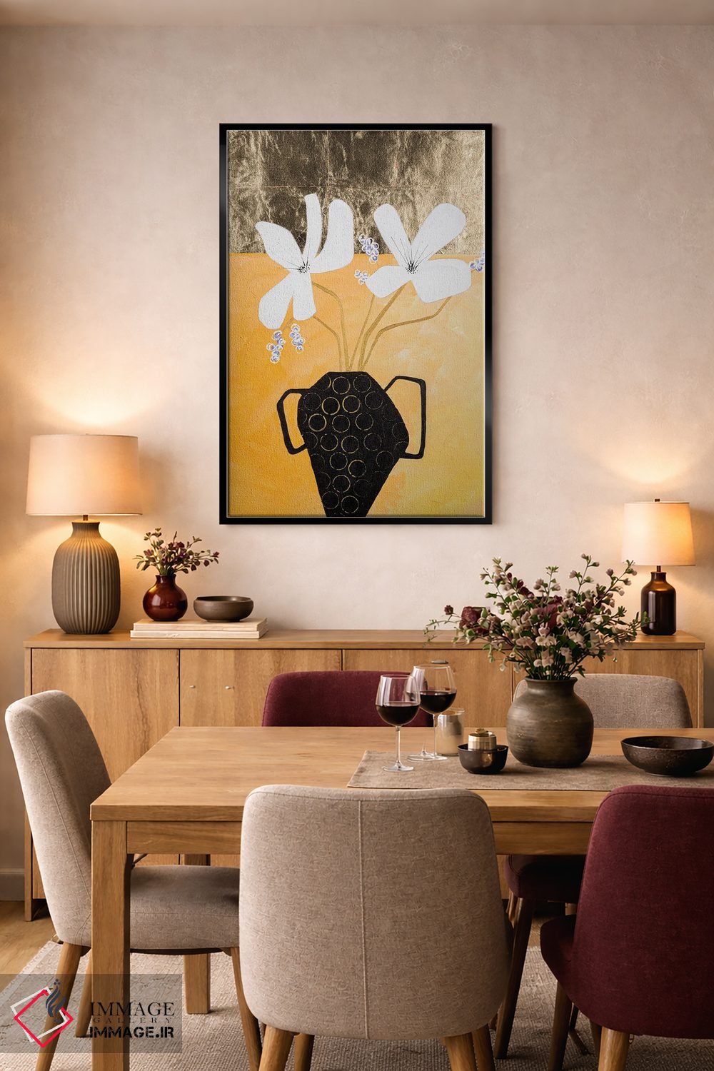 بوم گالری ایماژ نسخهی چیدماناتیوِ حرفهای از یک اثر هنری است؛ روی کنواس بدون اسید با بافت ظریف و یکنواخت با اجرای چاپ هنری جیکلی (Giclée) برای آرتپرینتهای جدی با رنگدانههای آرشیوی و سیستم رنگ دقیق؛ حس نهایی نزدیکتر به ارائهی گالریوار است؛ نه صرفاً یک تصویر.